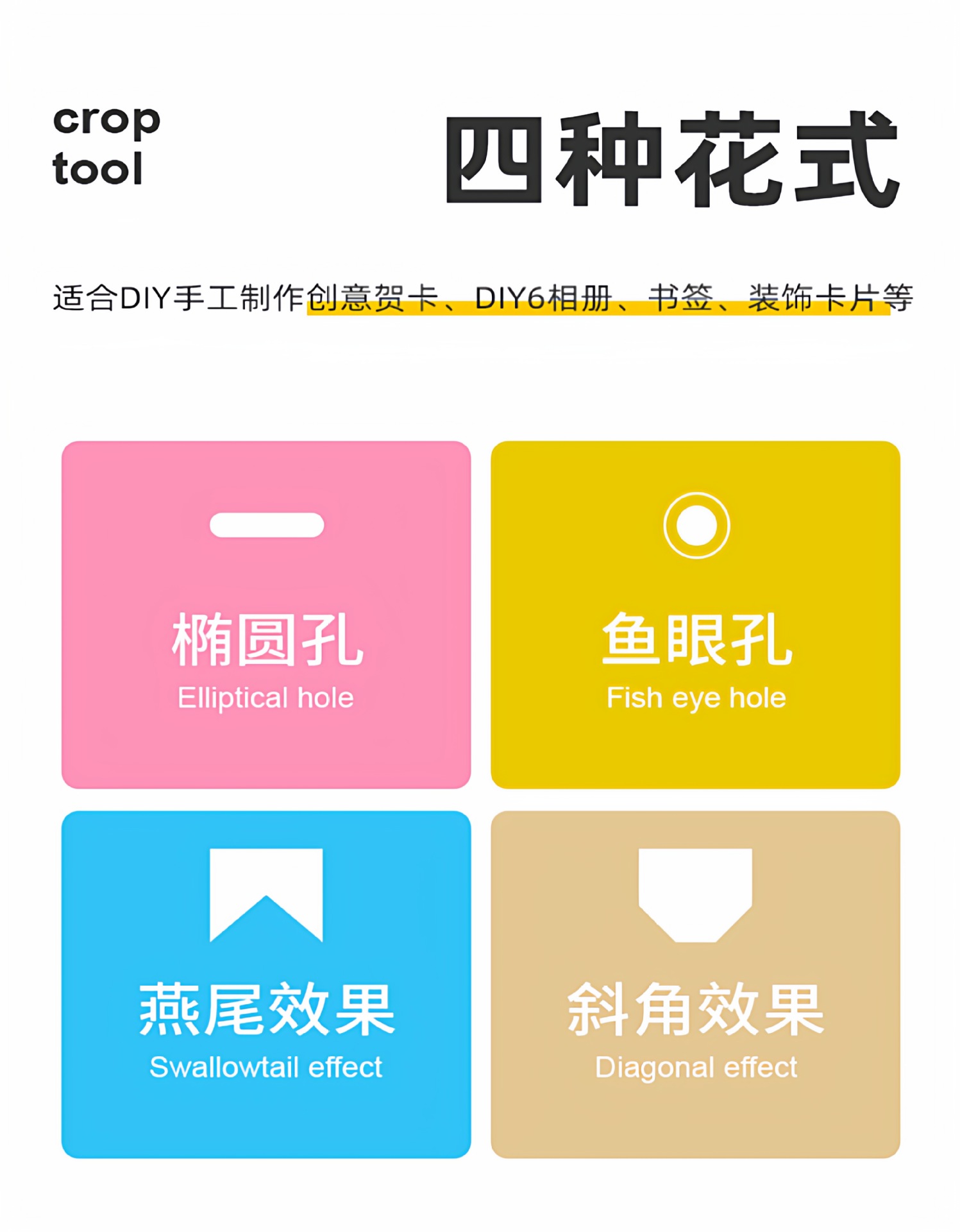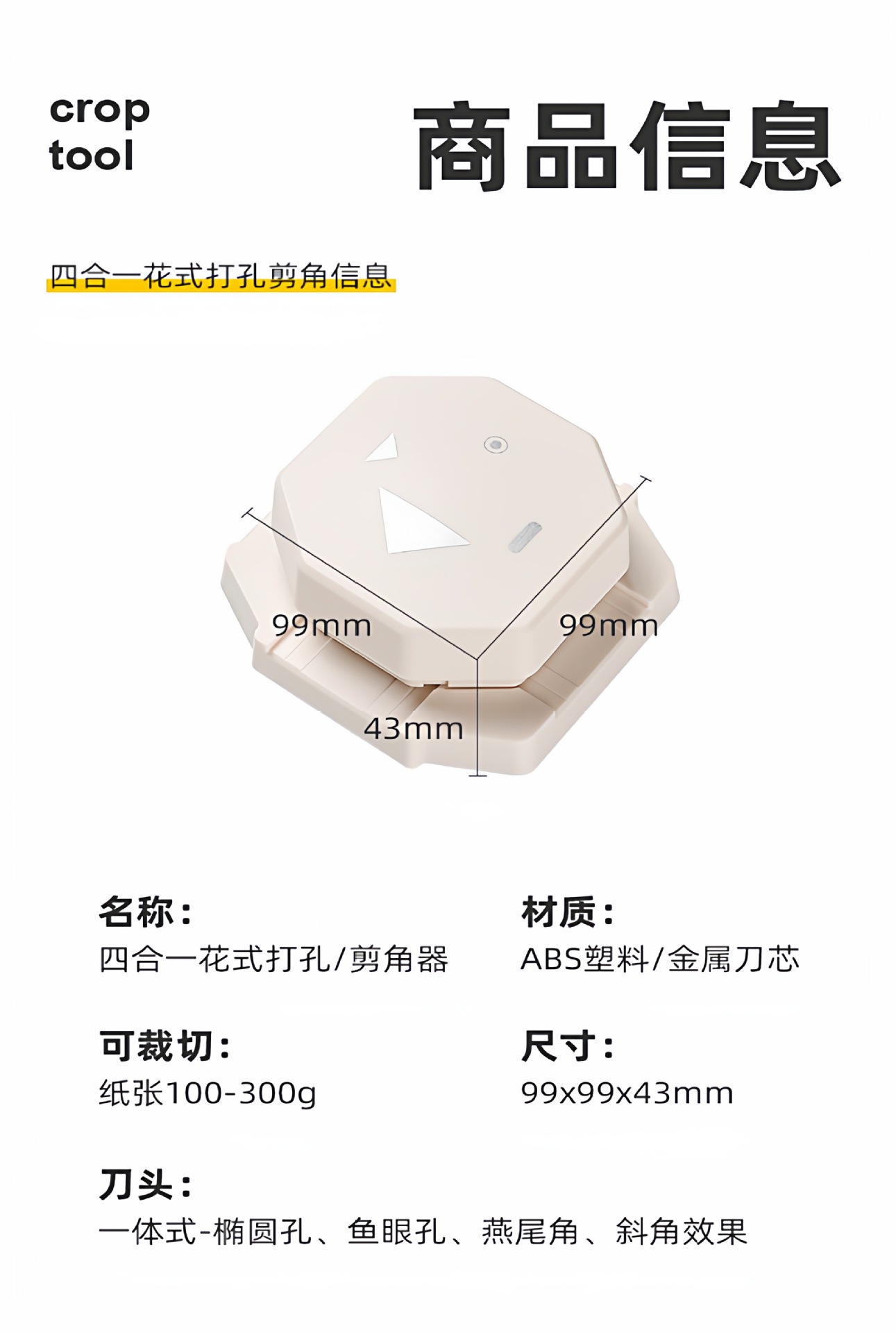 A 4-in-1 hole punch, embossing device, fillet embossing machine, binding label, hang tag DIY manual oval hole