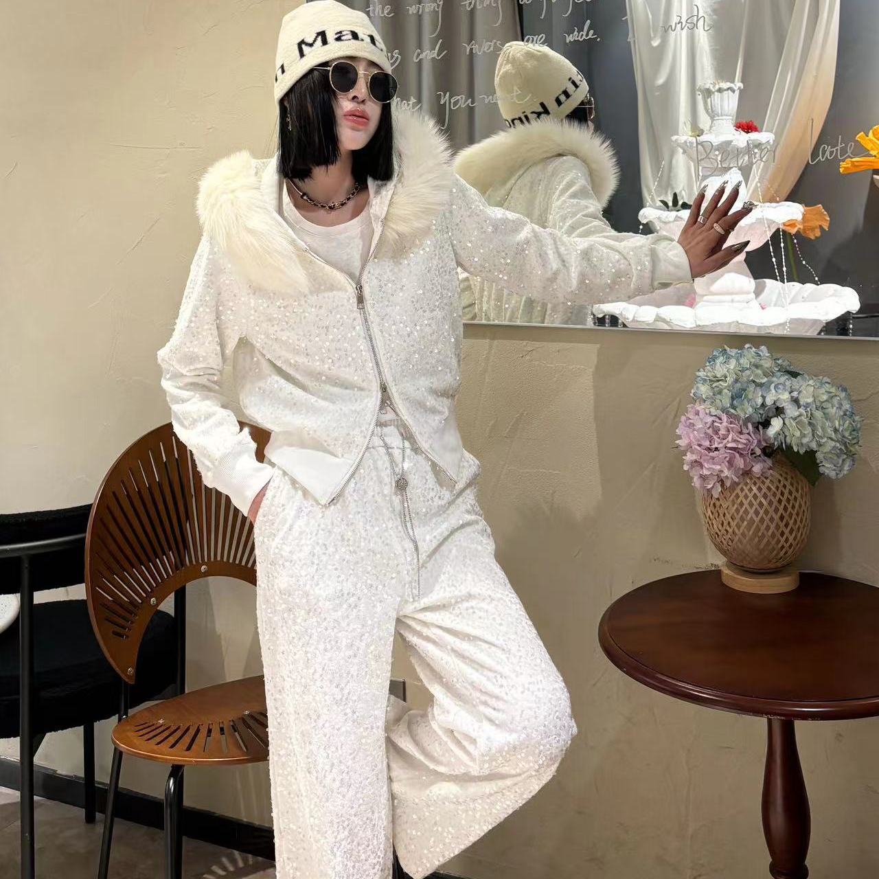 P new thickened autumn and winter casual velvet set heavy industry high waist loose casual sequins shiny and popular sweet and spicy