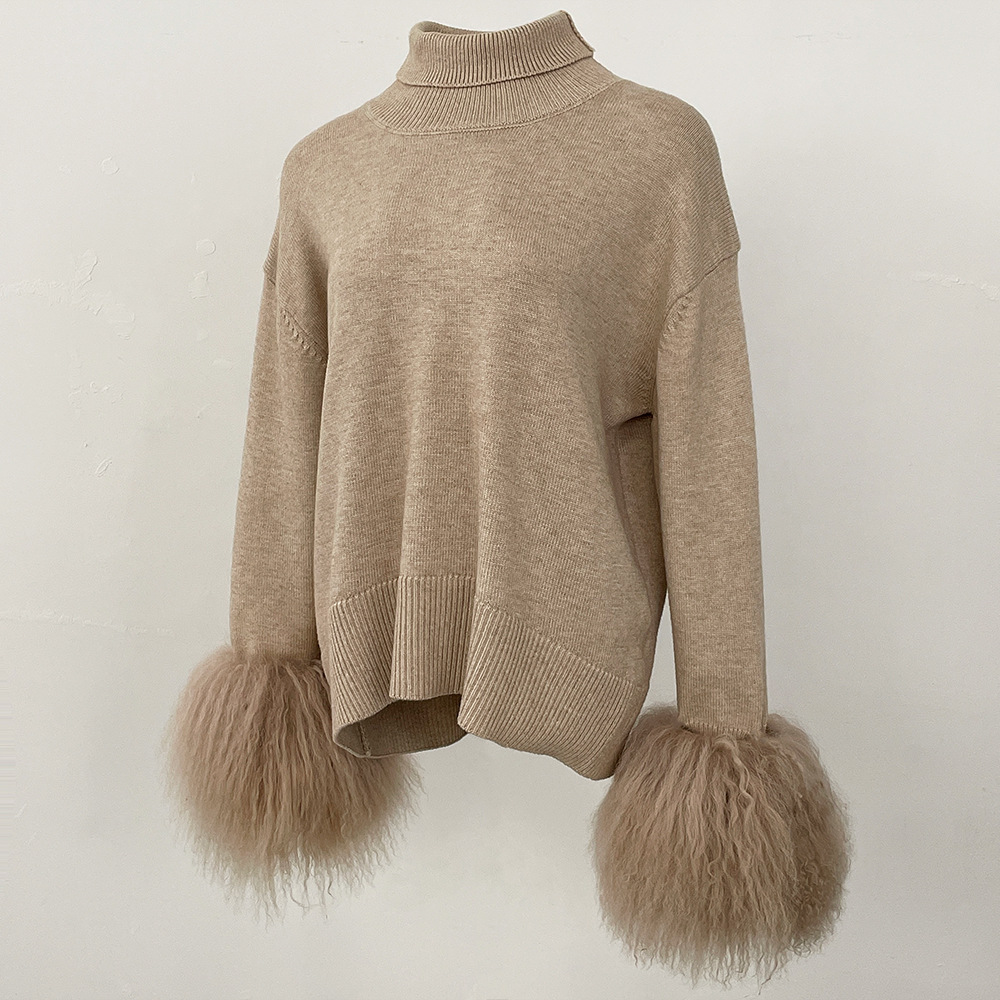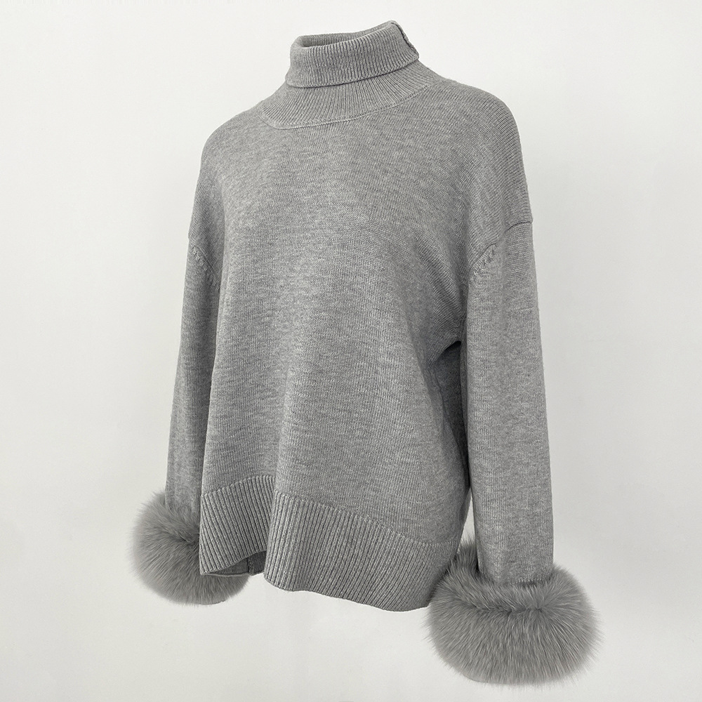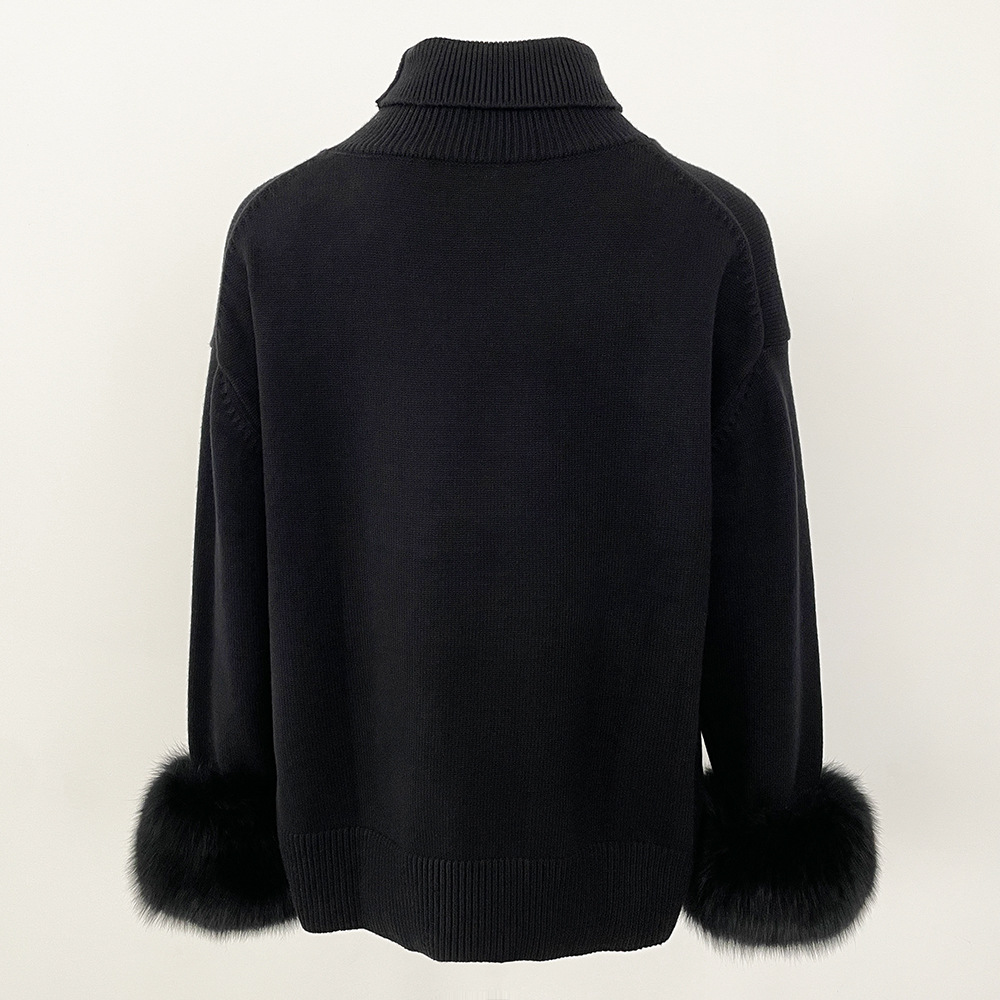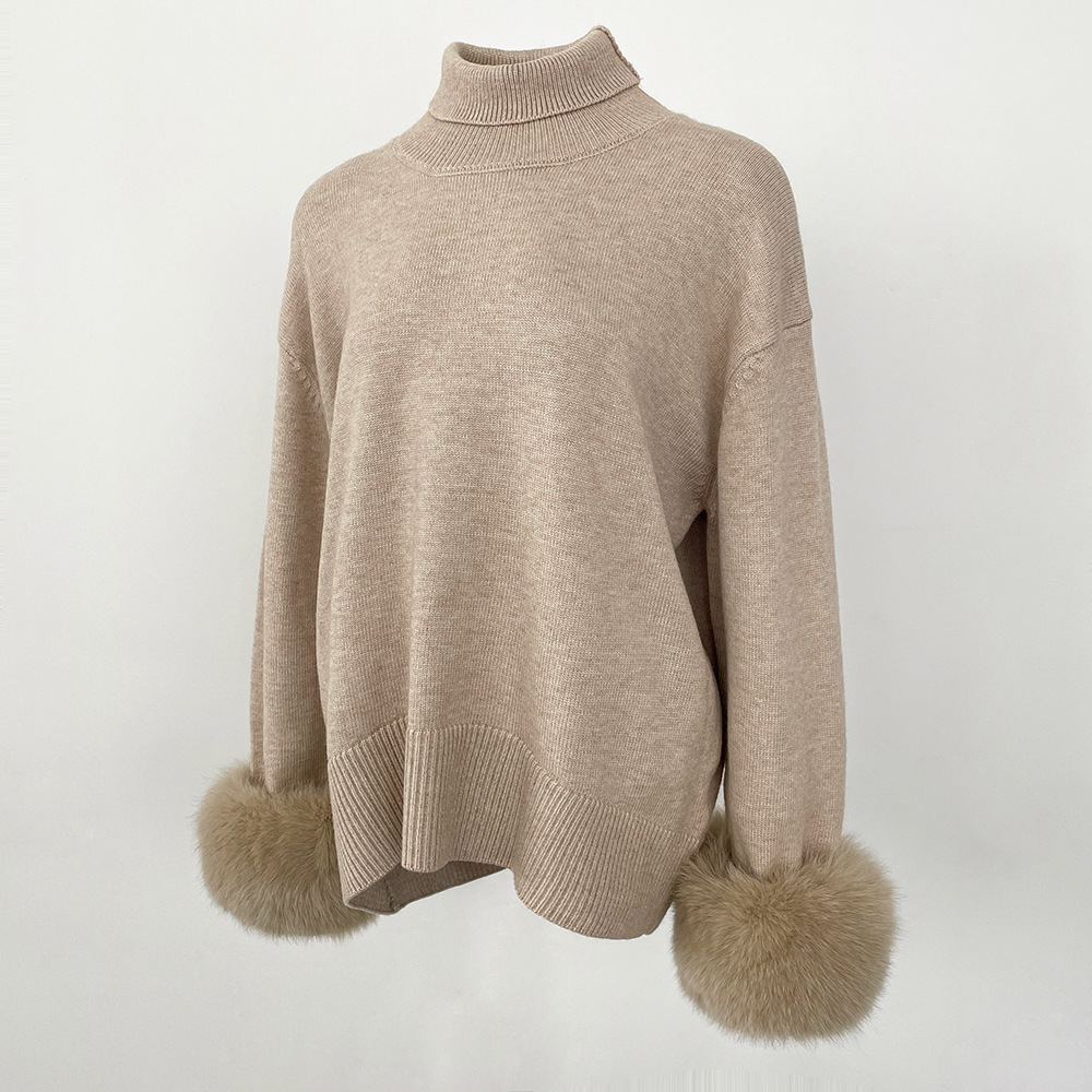 A popular thickened knitted sweater autumn and winter new loose high-necked real fox cuff sweater women