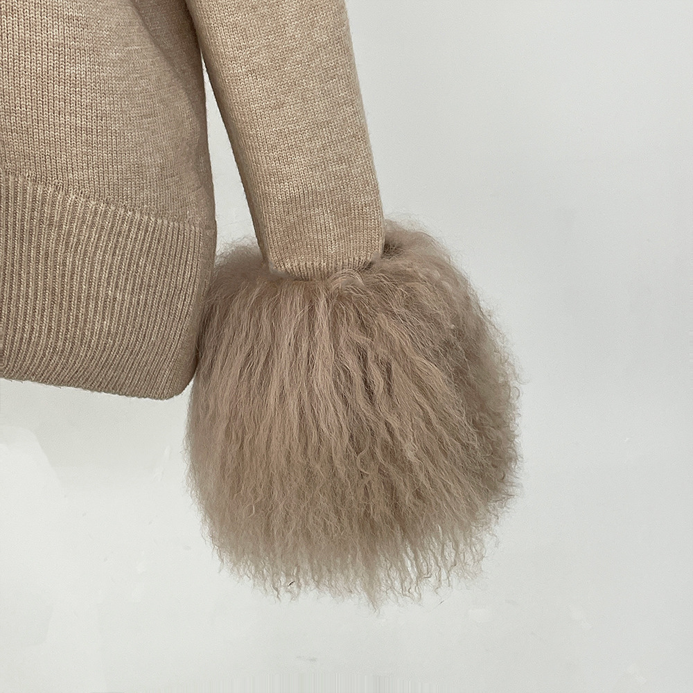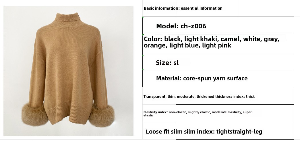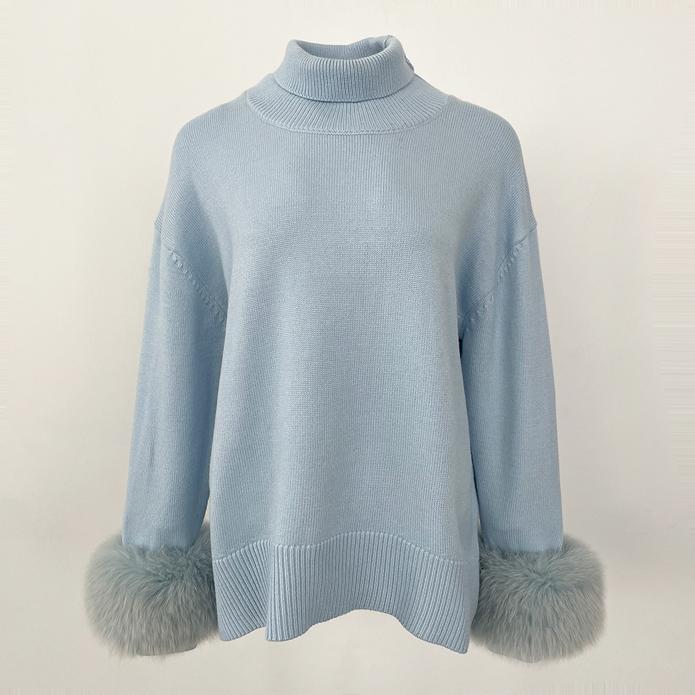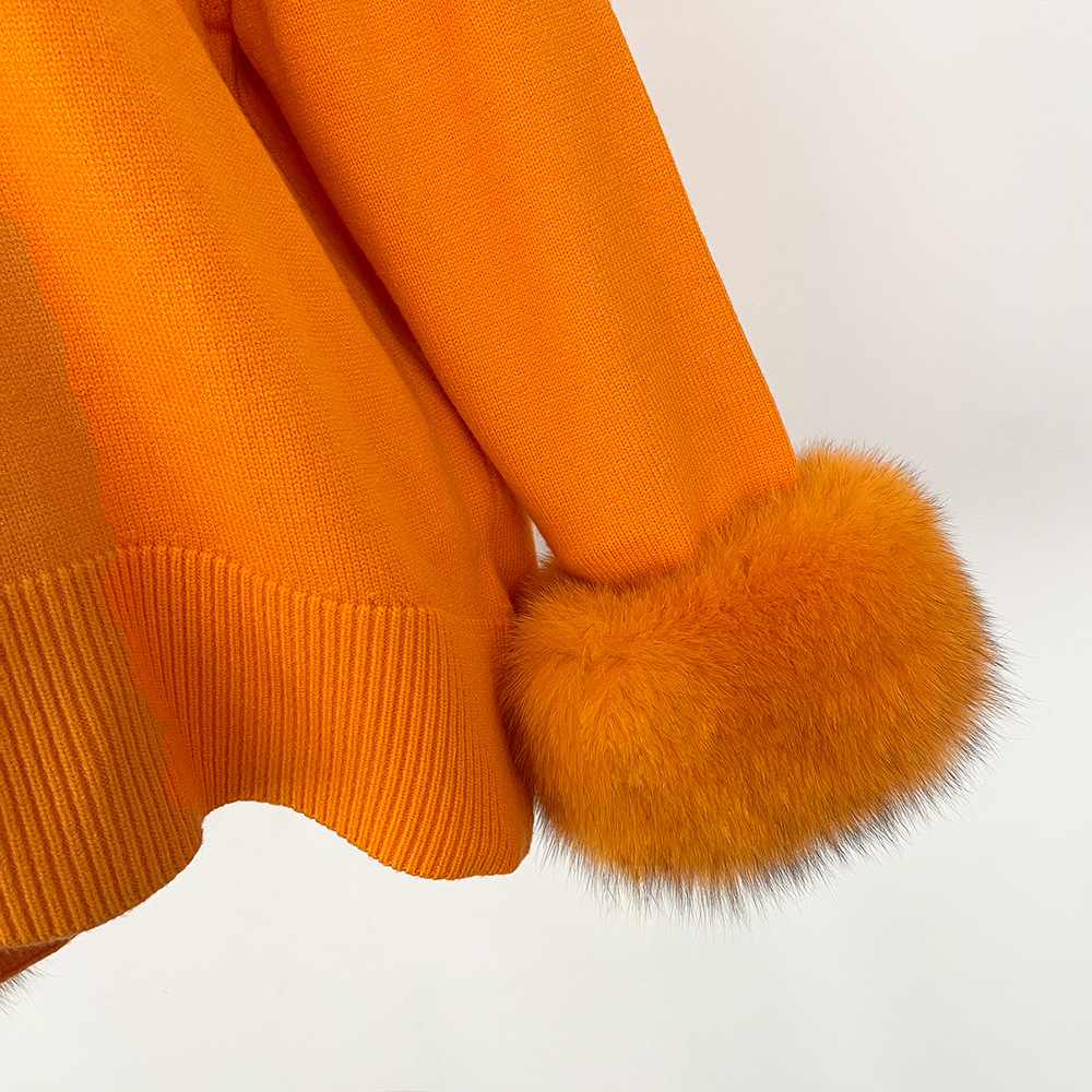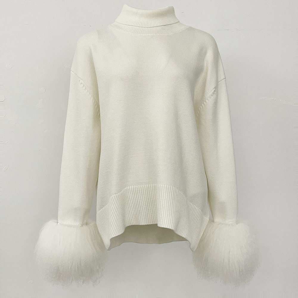 A popular thickened knitted sweater autumn and winter new loose high-necked real fox cuff sweater women