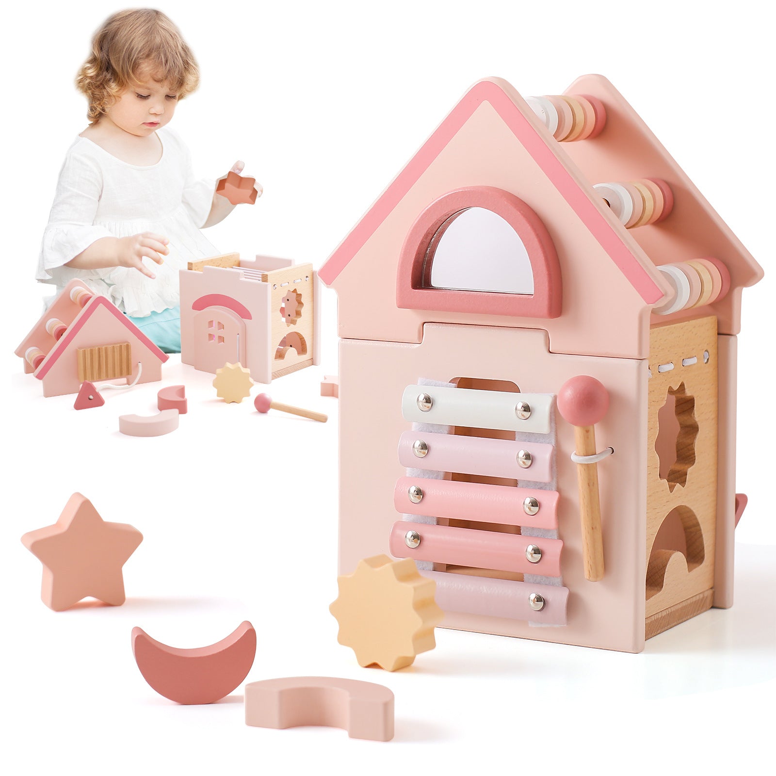 A Early Education Educational Wooden Toys Stacked Rocket Boy Girl House Castle Building Toys