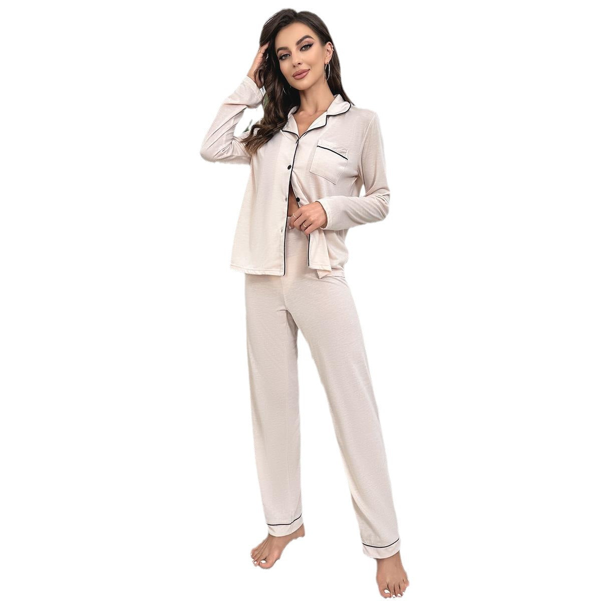 A Amazon foreign trade European and American pajamas women's autumn and winter solid color cardigan long-sleeved loungewear set can be worn outside cross-border TK