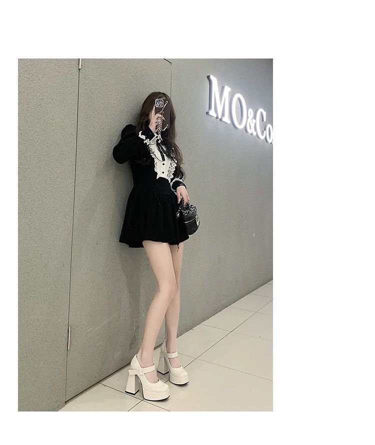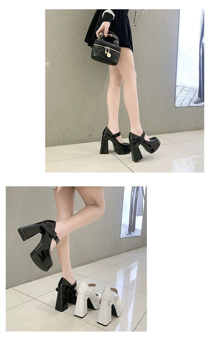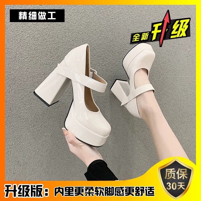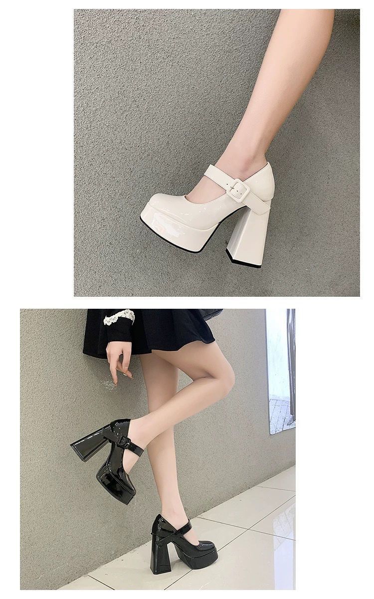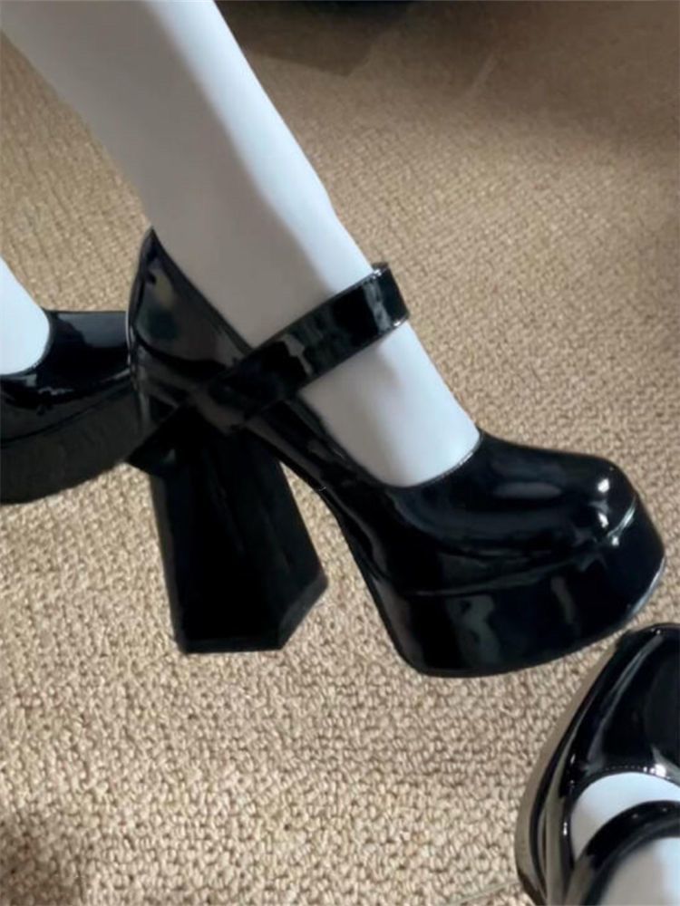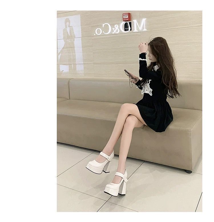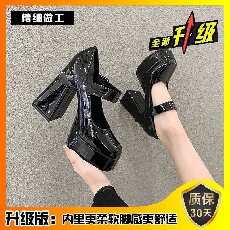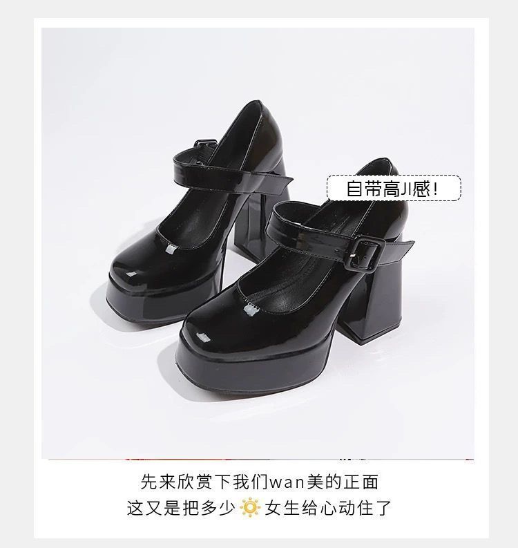 P American high heels new design sense niche French small man hate sky high Mary Jane shoes women's black jk shoes