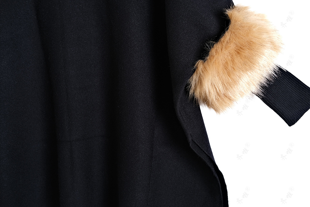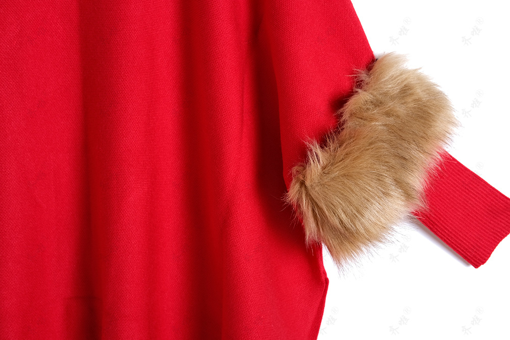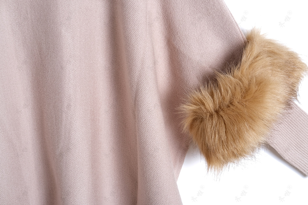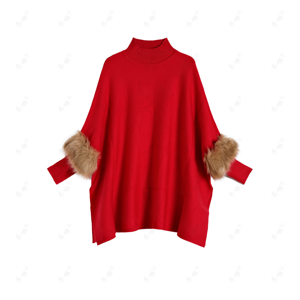 A turtleneck pullover cape knitted sweater simulation fur fur sleeve sweater large size bottoming shirt jacket women