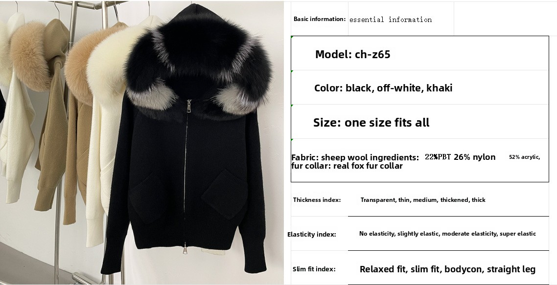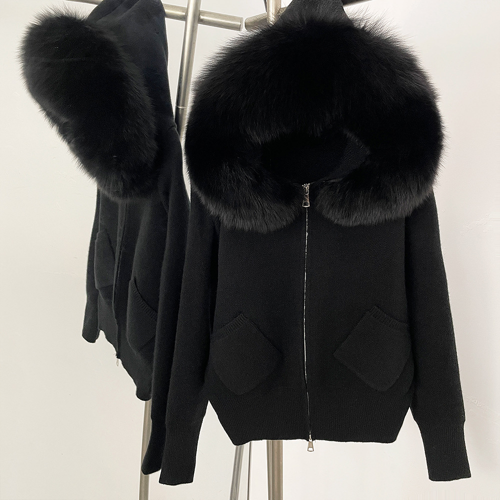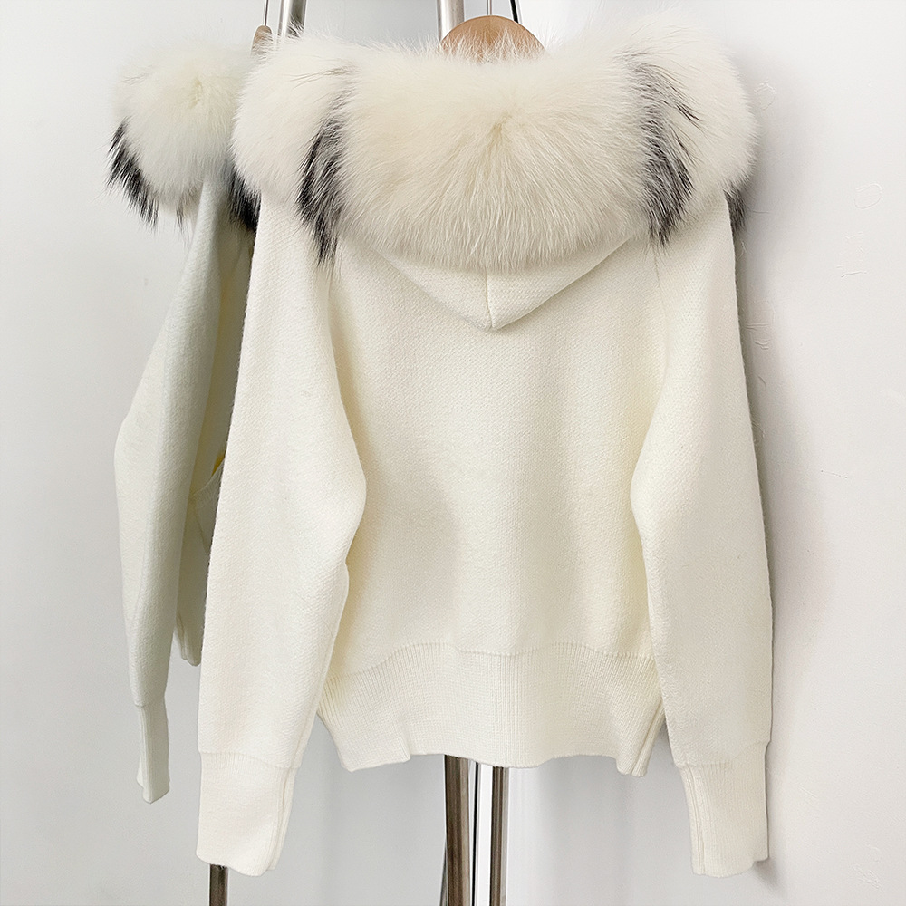 A autumn and winter new knitted sweater women's Korean version removable oversized real fox fur collar hooded knitted cardigan jacket