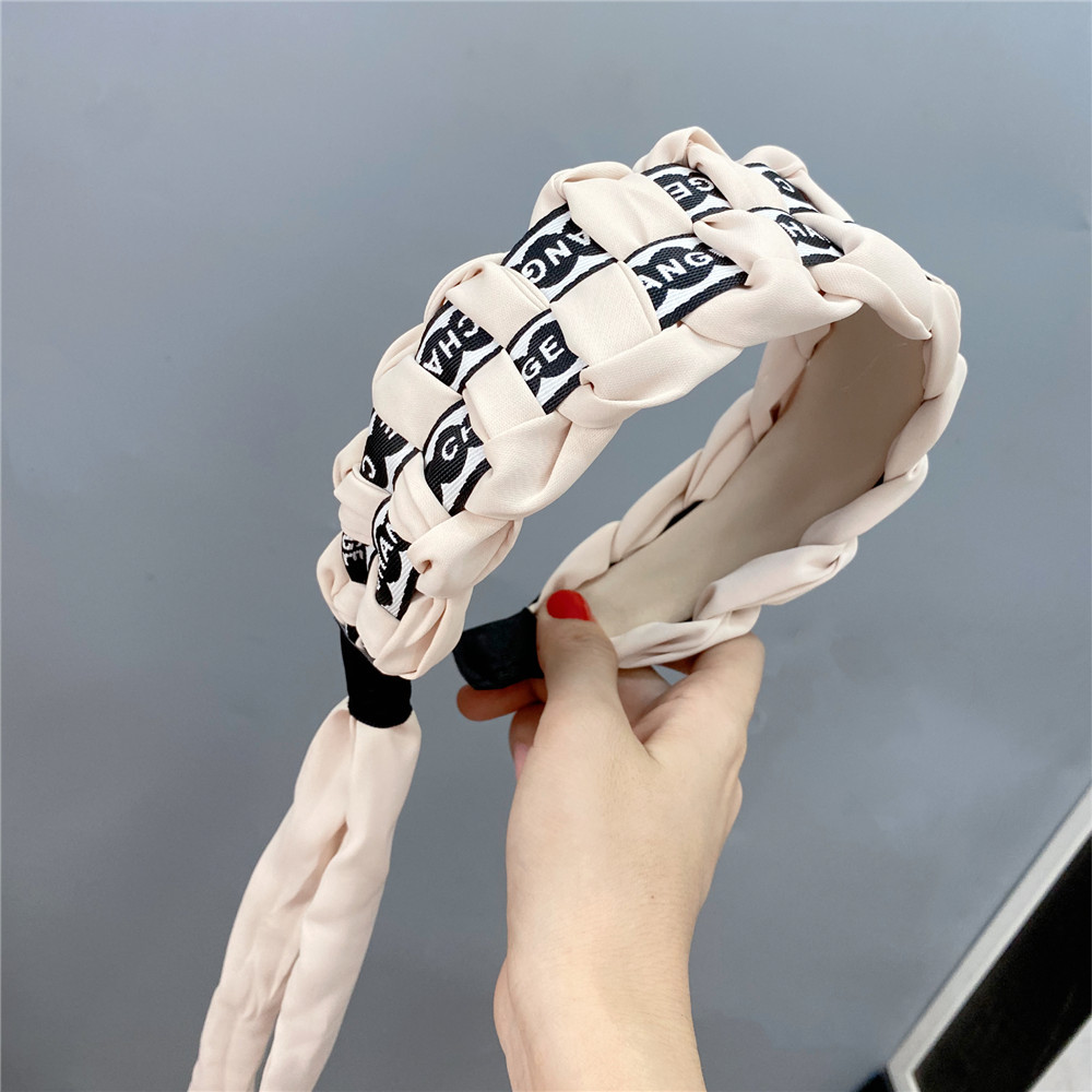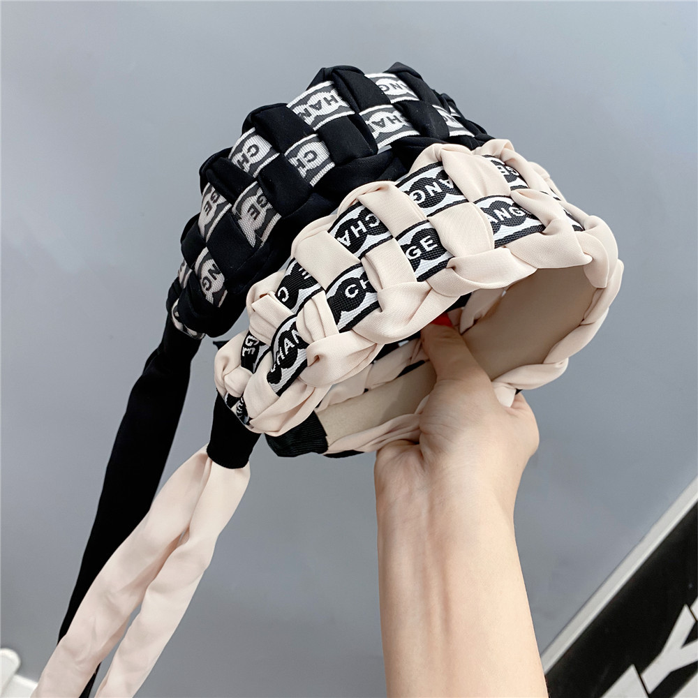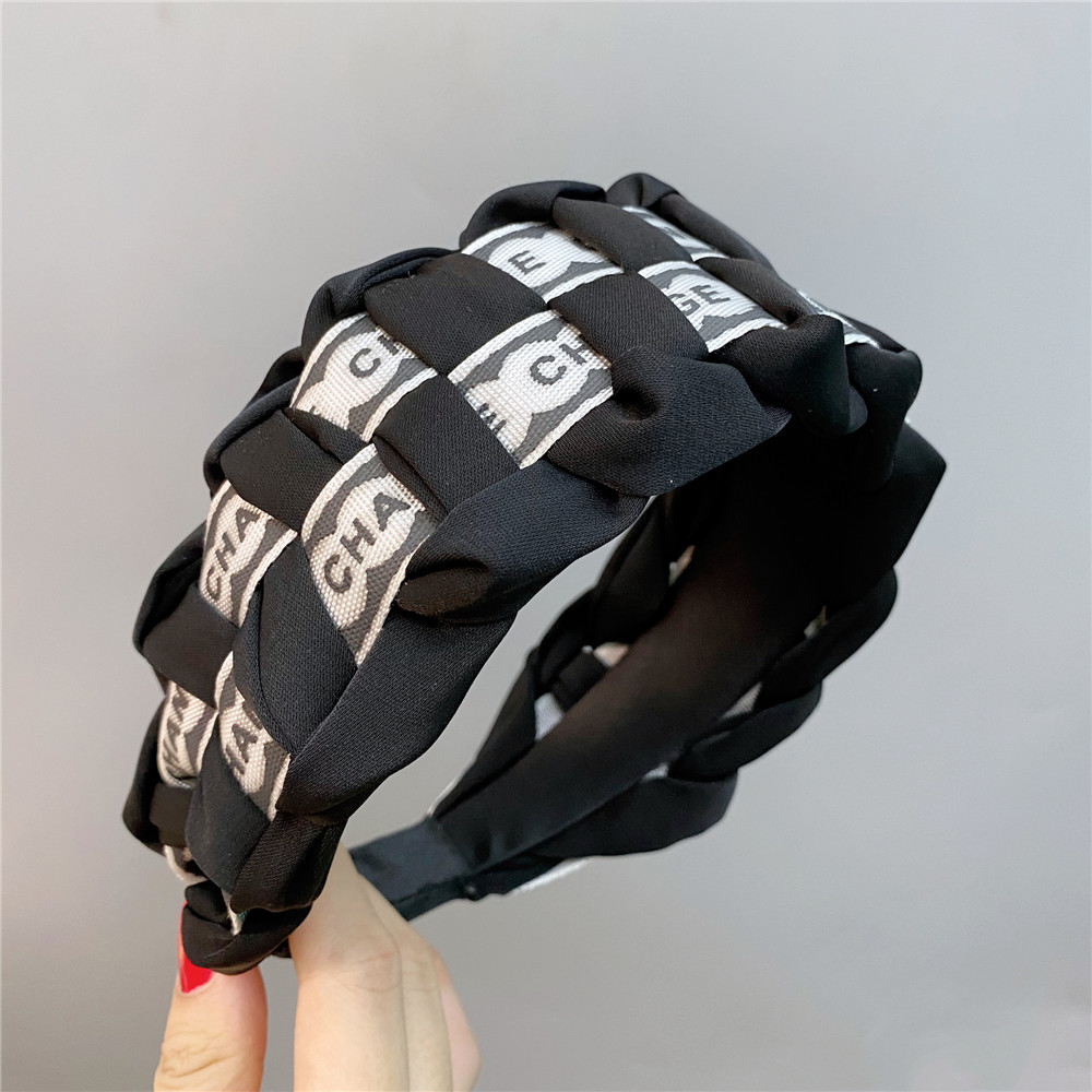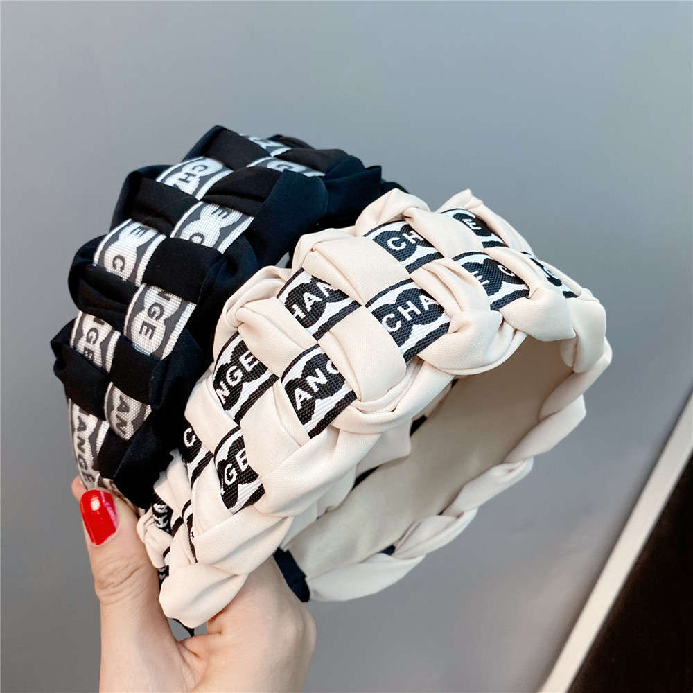 A Korean retro letter plaid headband, four-strand braided personalized hair accessories, wide-brimmed small fragrant headband