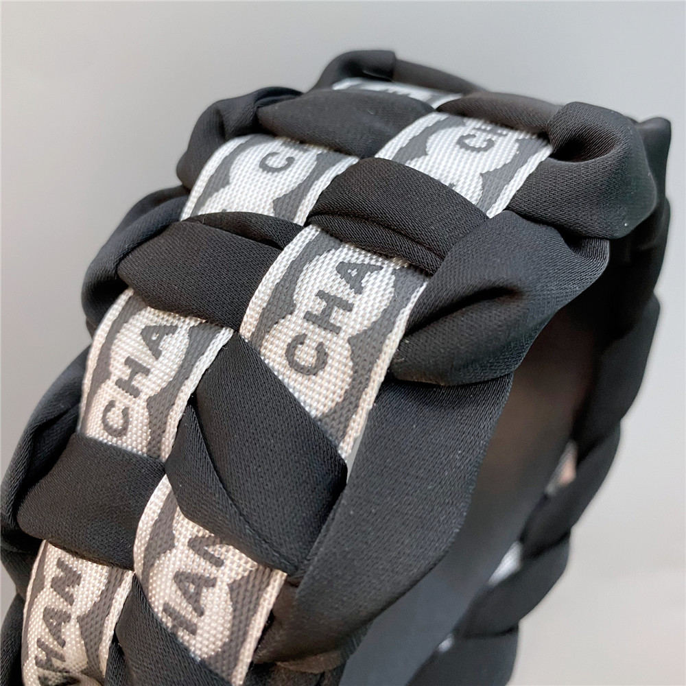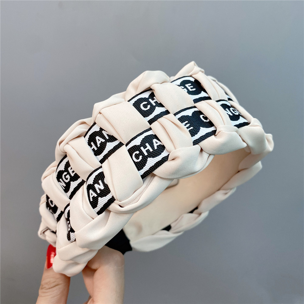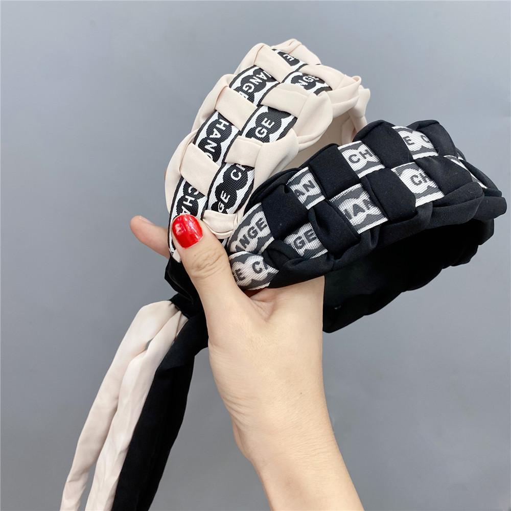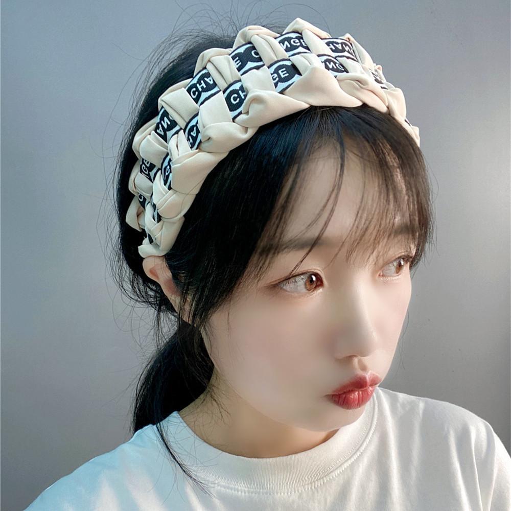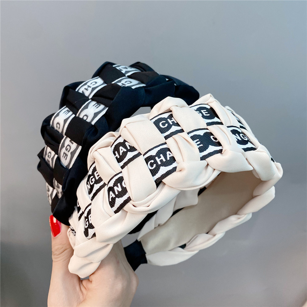 A Korean retro letter plaid headband, four-strand braided personalized hair accessories, wide-brimmed small fragrant headband