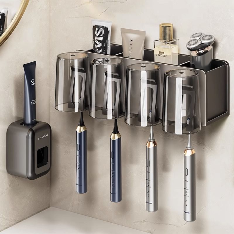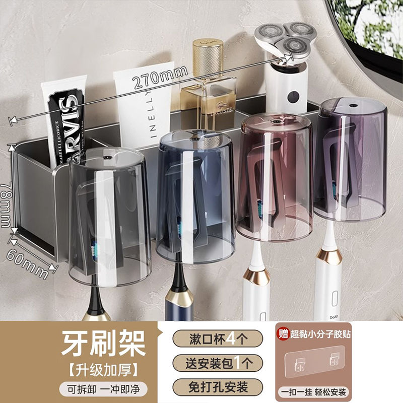 Bathroom toothbrush holder without punching holes, removable for cleaning, brushing teeth, mouthwash cups, bathroom household toothbrush holders, toothbrush holder