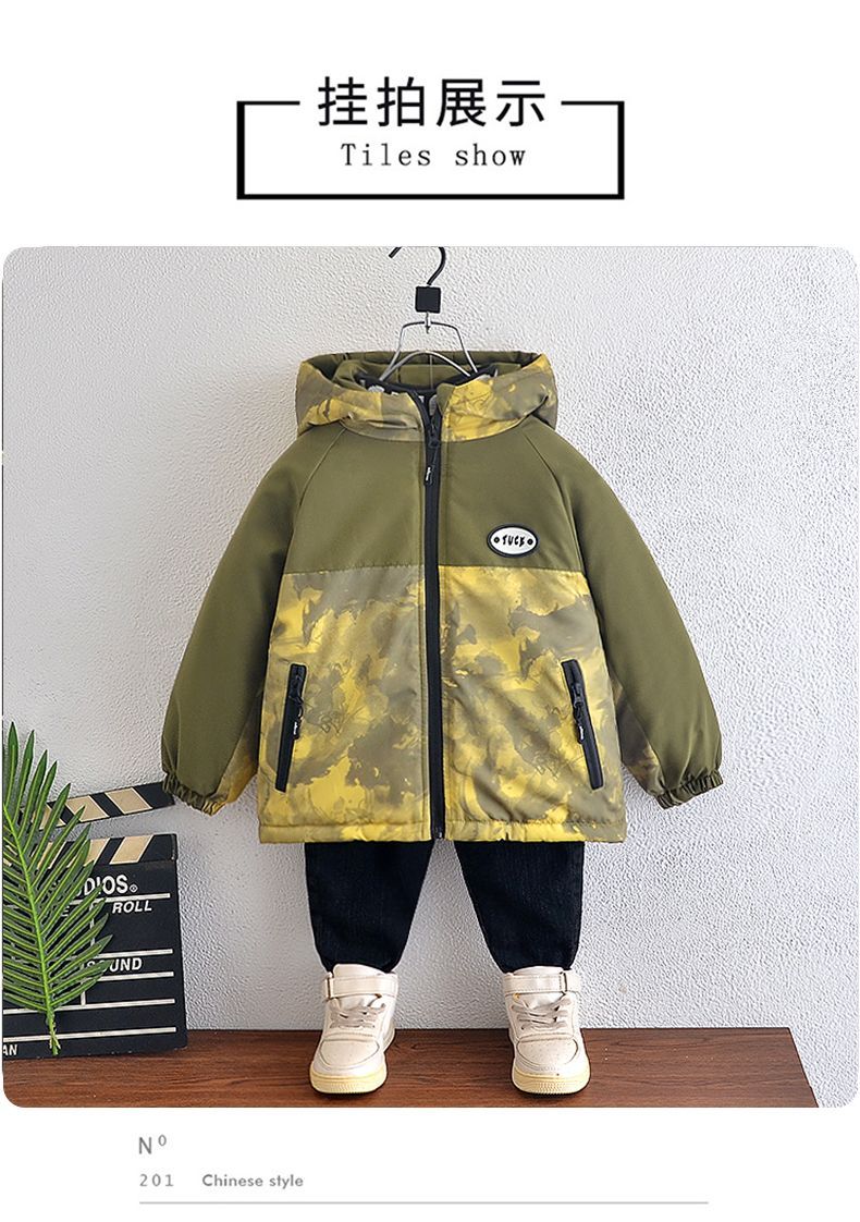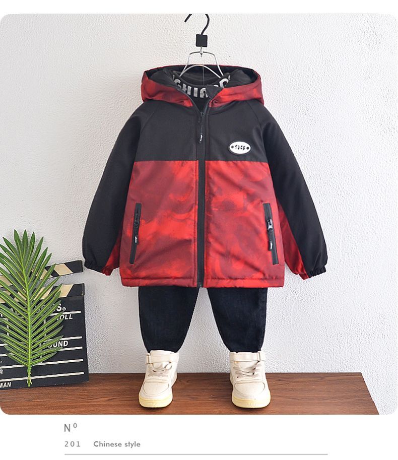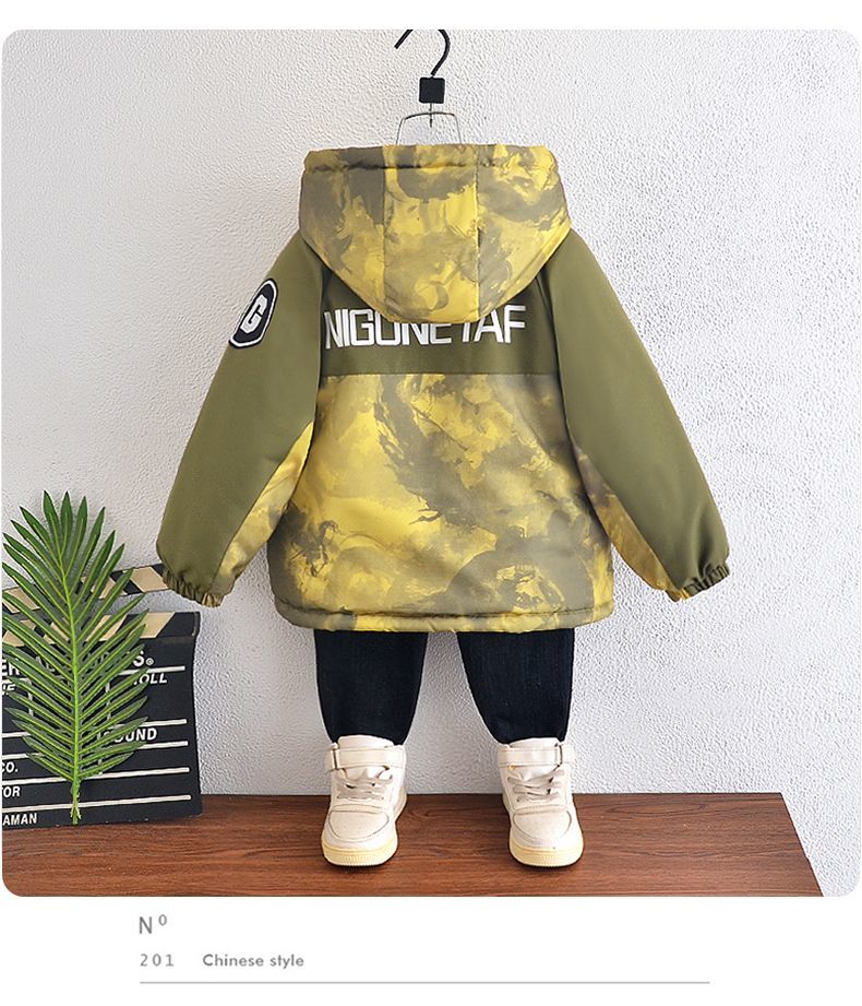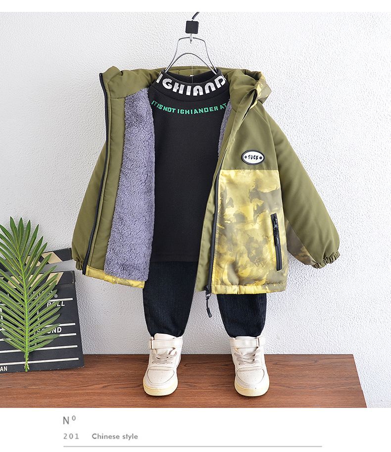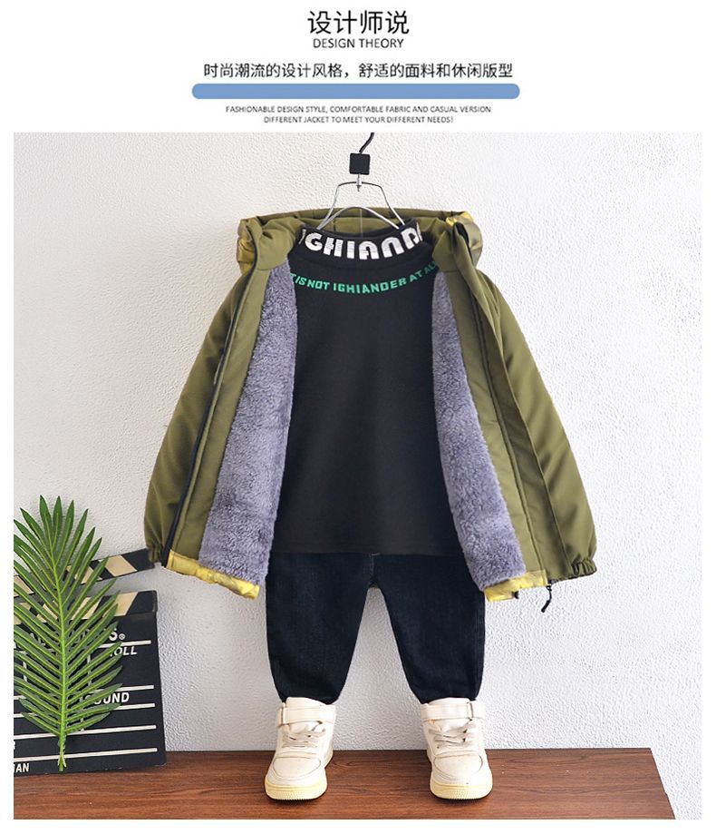 P 4 Fleece Thickened Jacket Medium and Older Boys Pie Overcome Winter