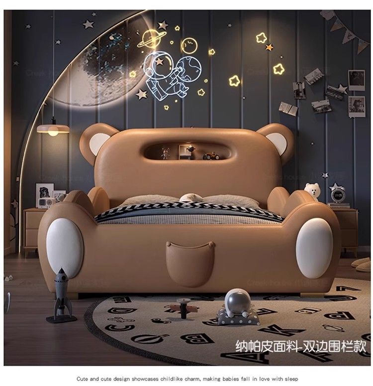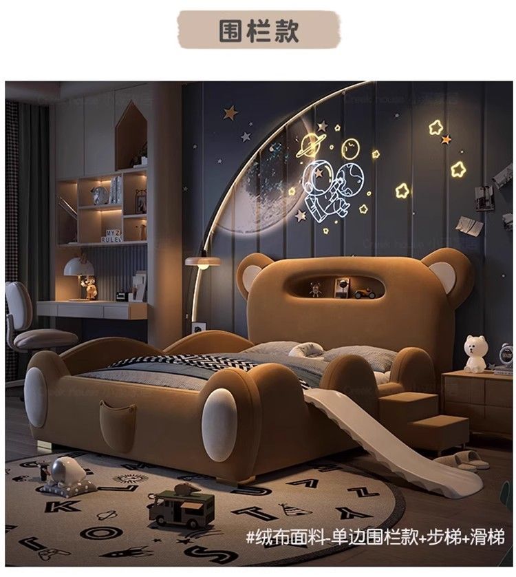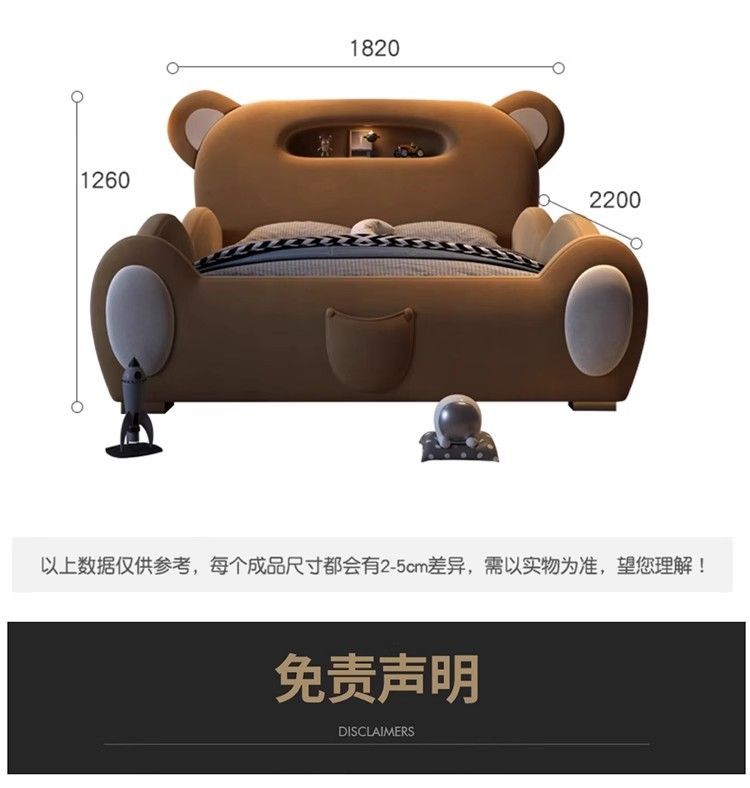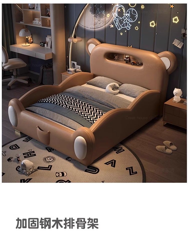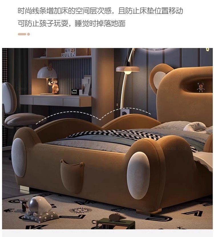 P children's bed girl boy princess bed light luxury modern simple bedroom fabric bed cartoon cute bear leather bed