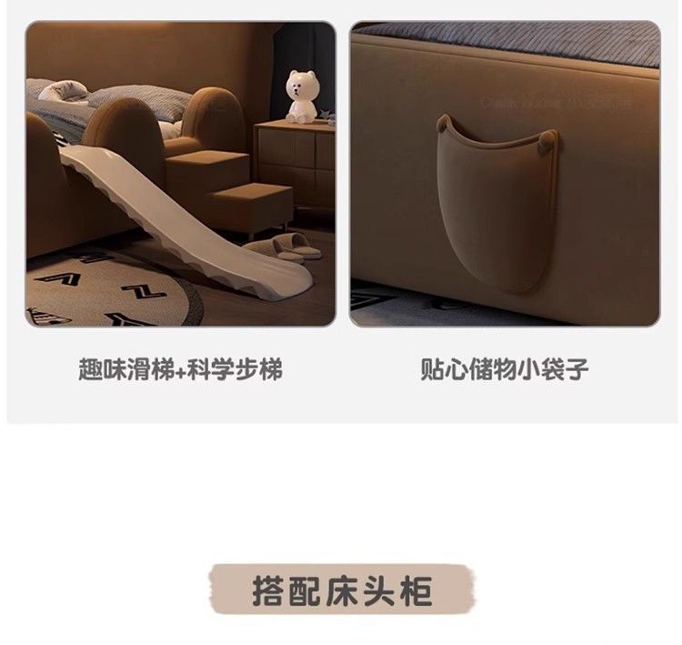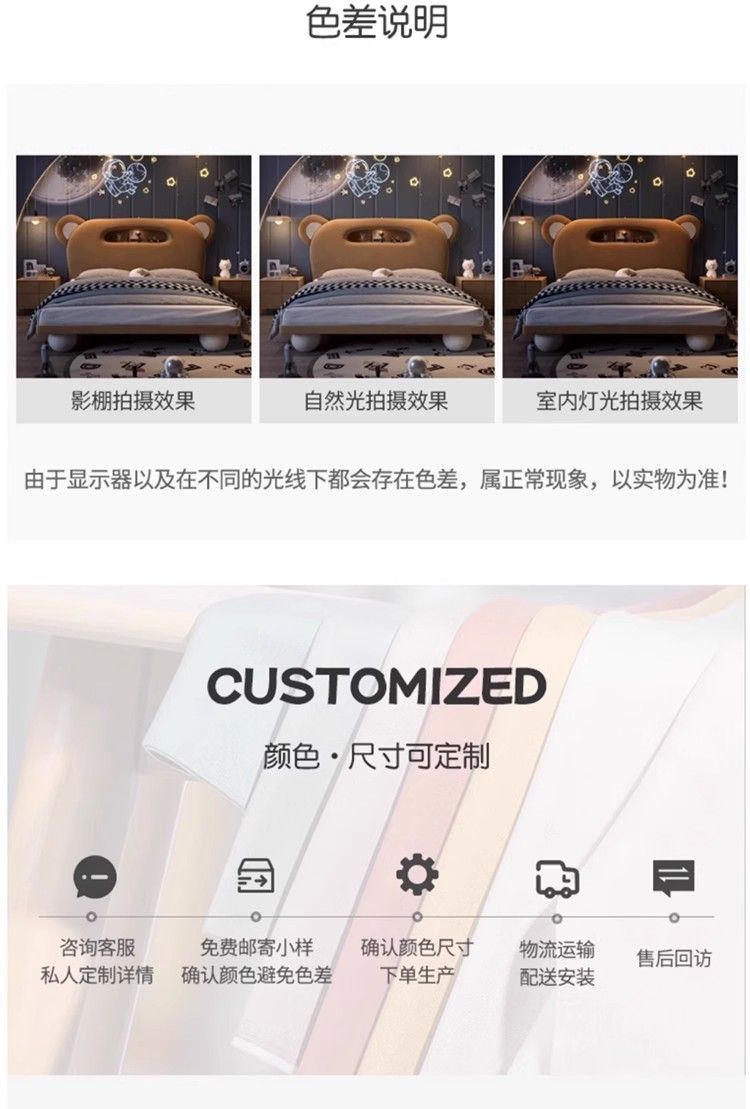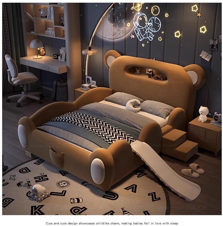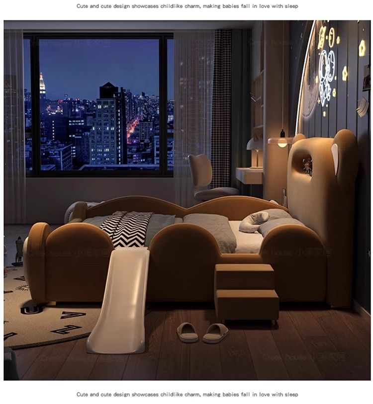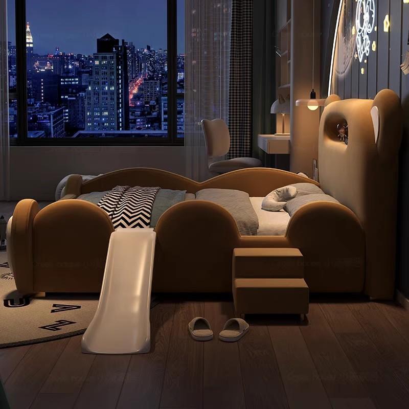 P children's bed girl boy princess bed light luxury modern simple bedroom fabric bed cartoon cute bear leather bed