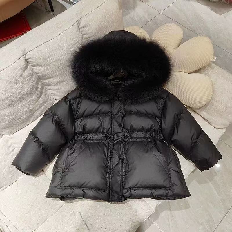 A new hooded medium and long boys and girls thickened jacket children's clothing