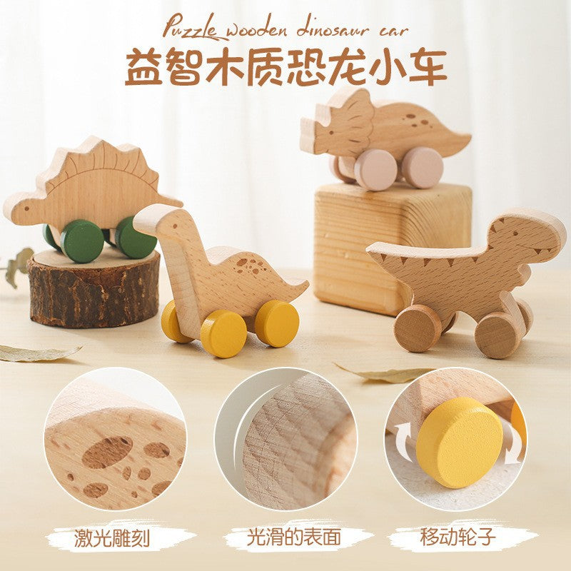 A children's dinosaur inertia pull-back car wooden drop-resistant hand push sliding car toy baby cartoon mini dinosaur car