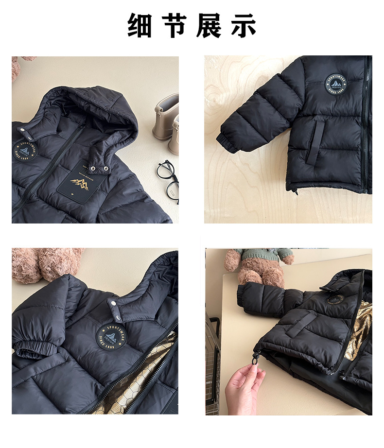 A children's down cotton clothes boys and girls thickened warm winter black gold neutral cotton clothes children's clothes jacket cold