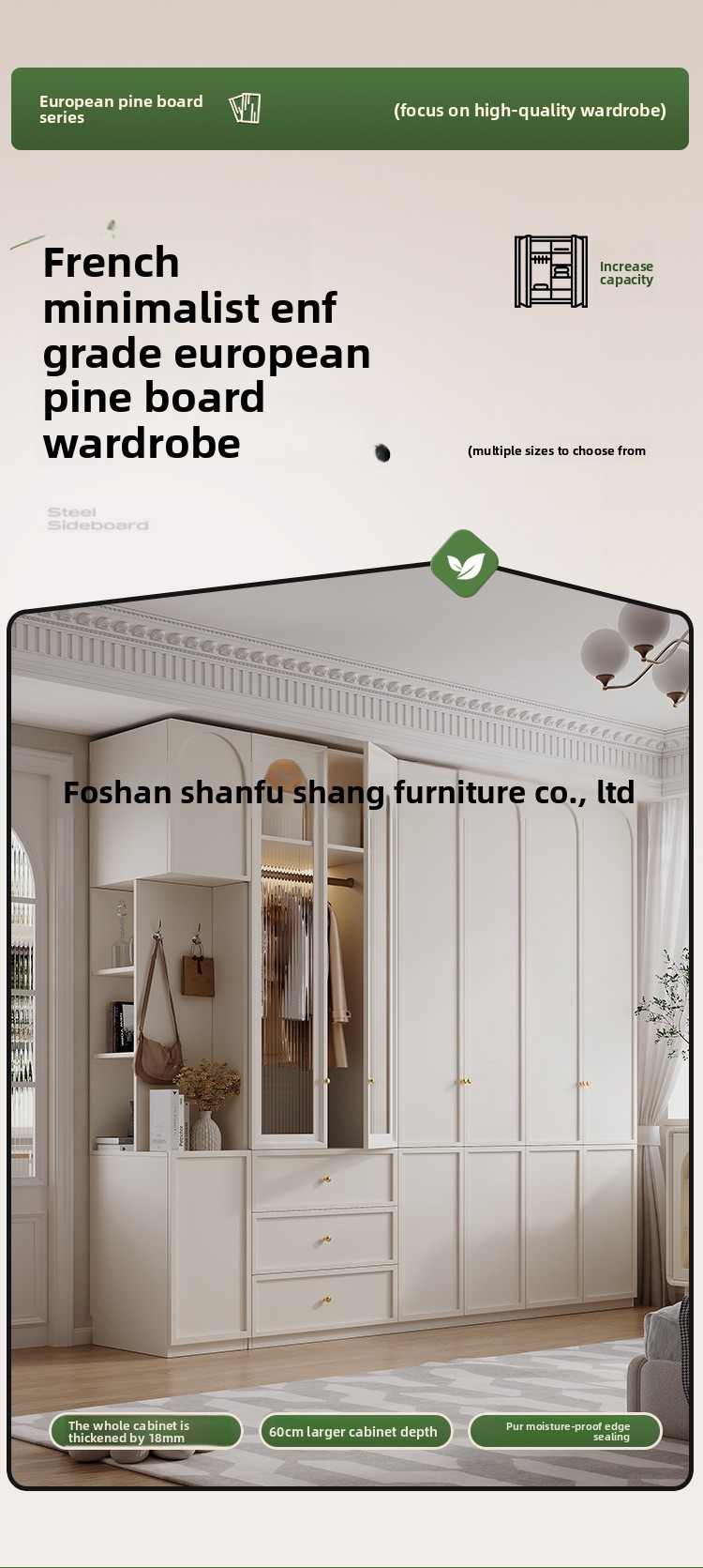 A European pine board wardrobe with melamine finish