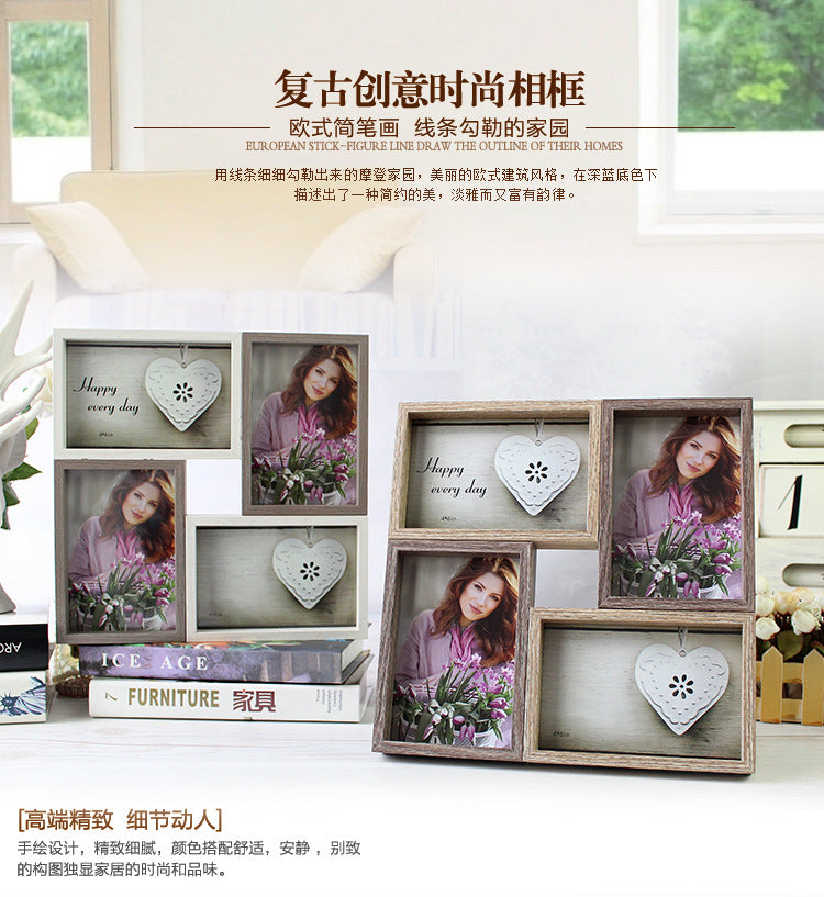 A creative four-grid combination 6-inch photo frame retro American photo frame table hanging wall double six-inch splicing frame
