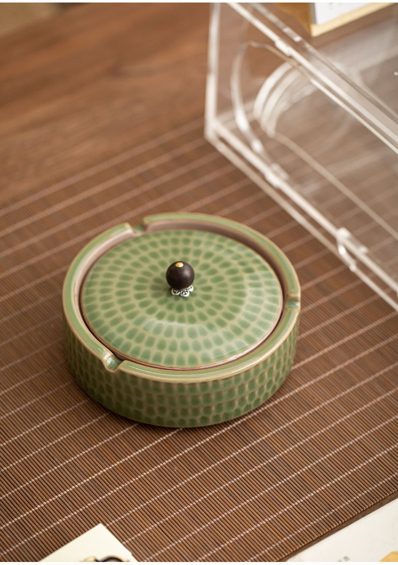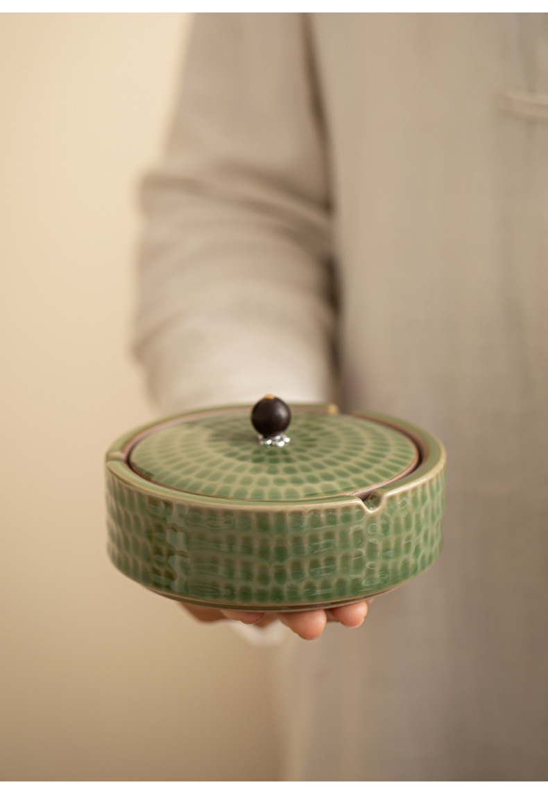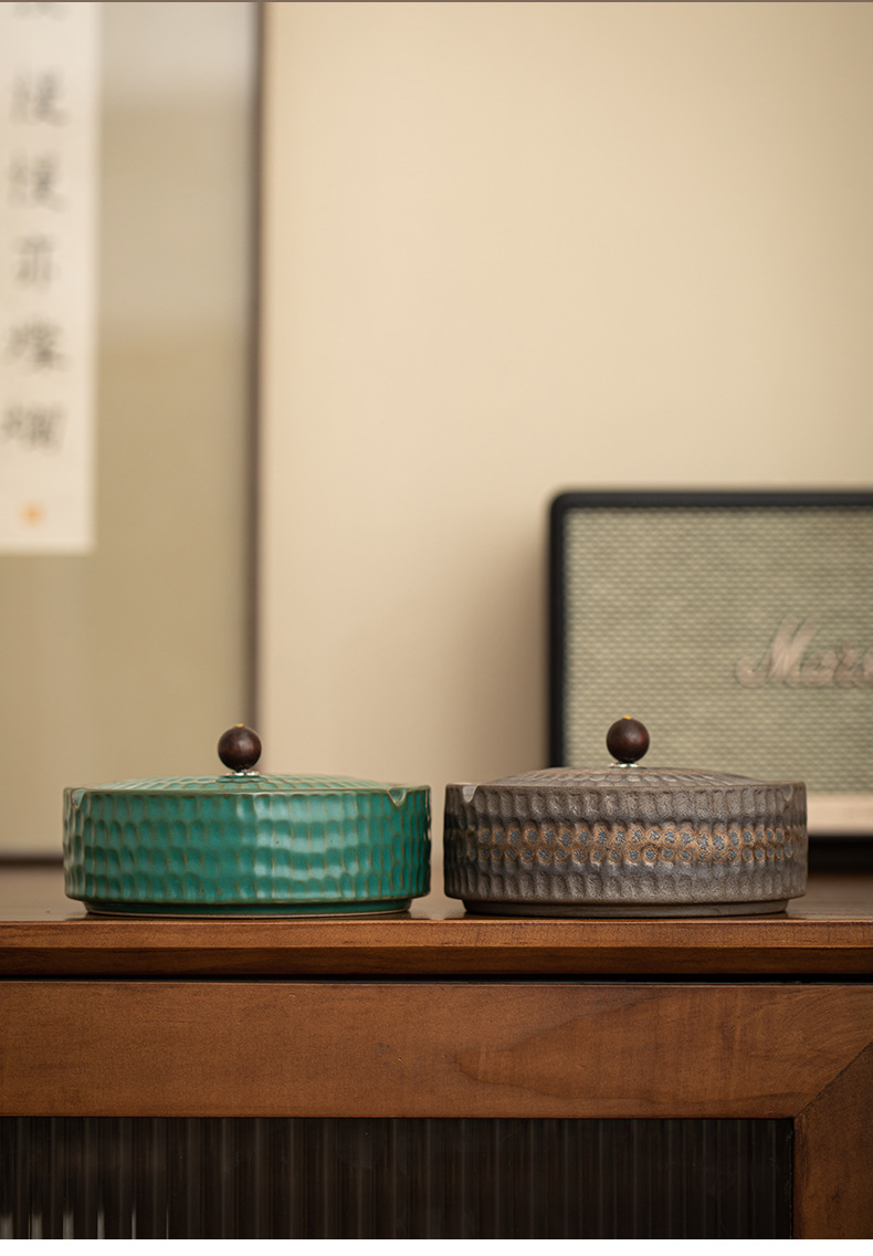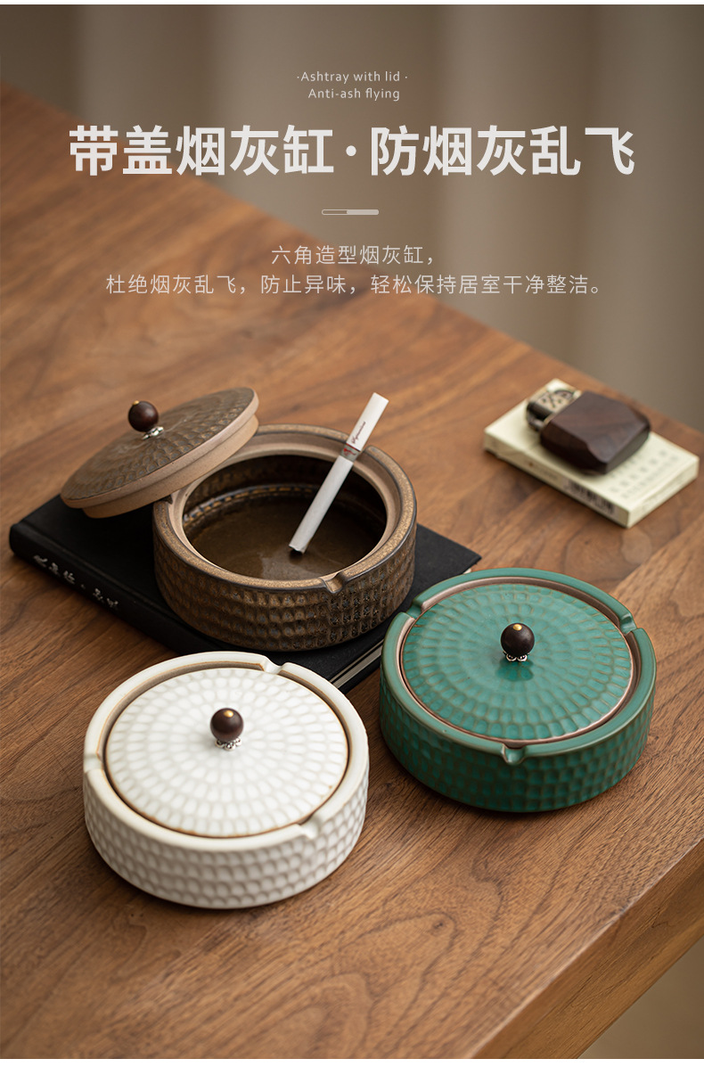A creative large ceramic ashtray with lid light luxury high sense