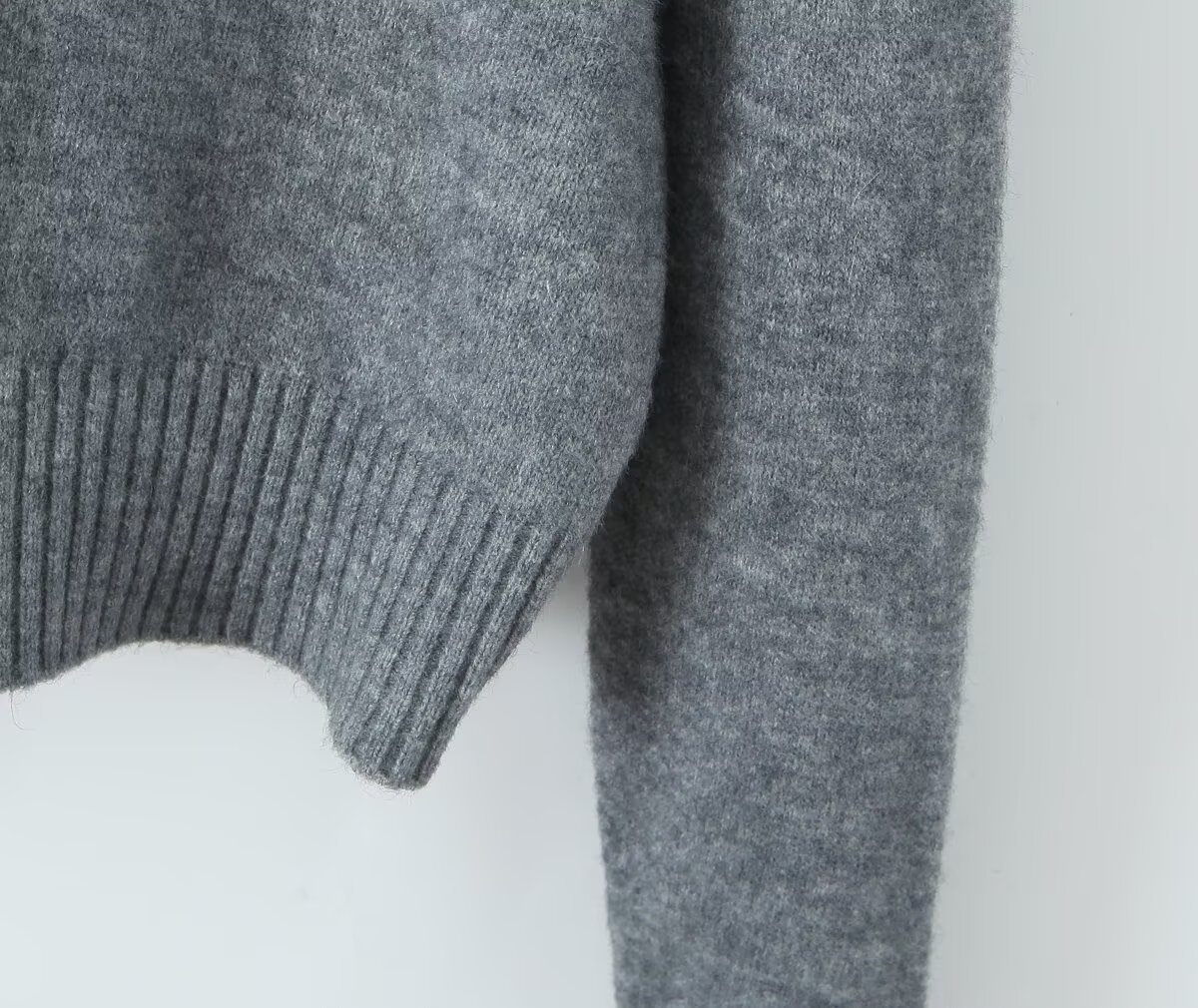 A Fake fur collar hooded long-sleeved zip-up cardigan knitted sweater jacket