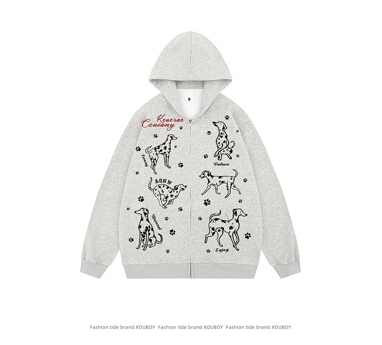 A printed zip hooded sweater