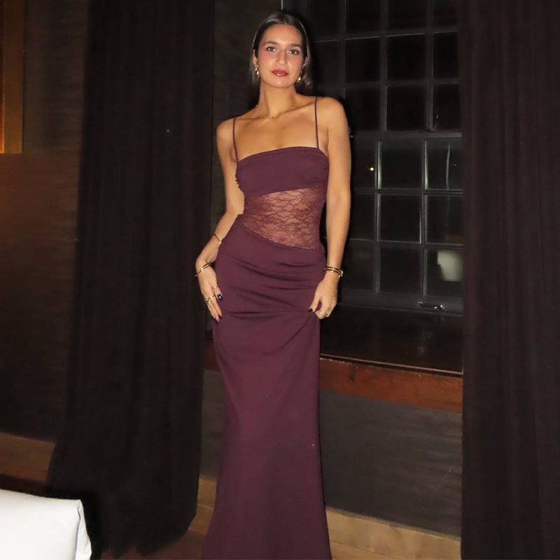 D078DS cross-border Europe, America and 2025 spring new dress long dress lace hollow splicing suspender backless sexy