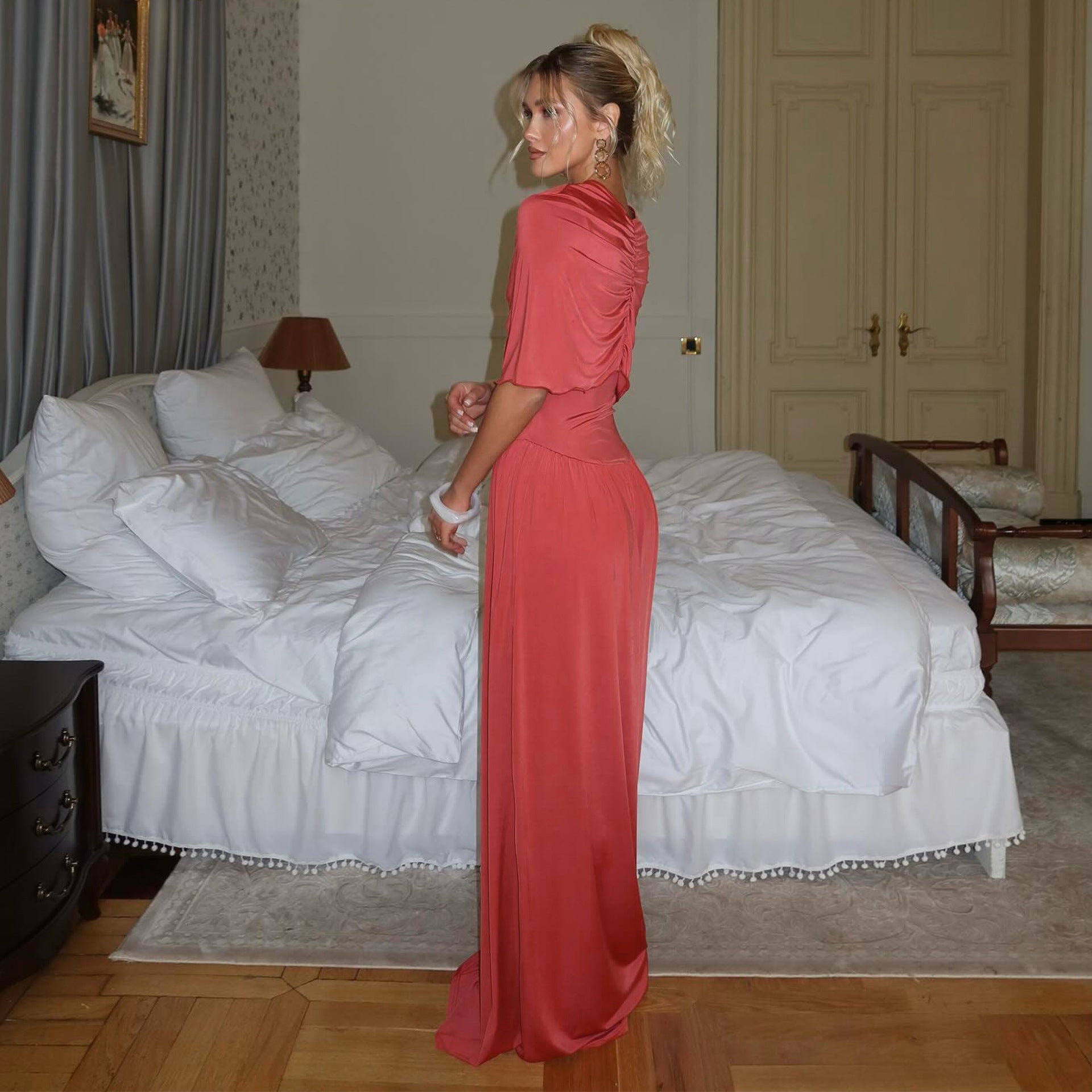 D112DS European and American cross-border 2025 spring explosion new women's dress two-piece set off-the-shoulder cape sexy slim fit