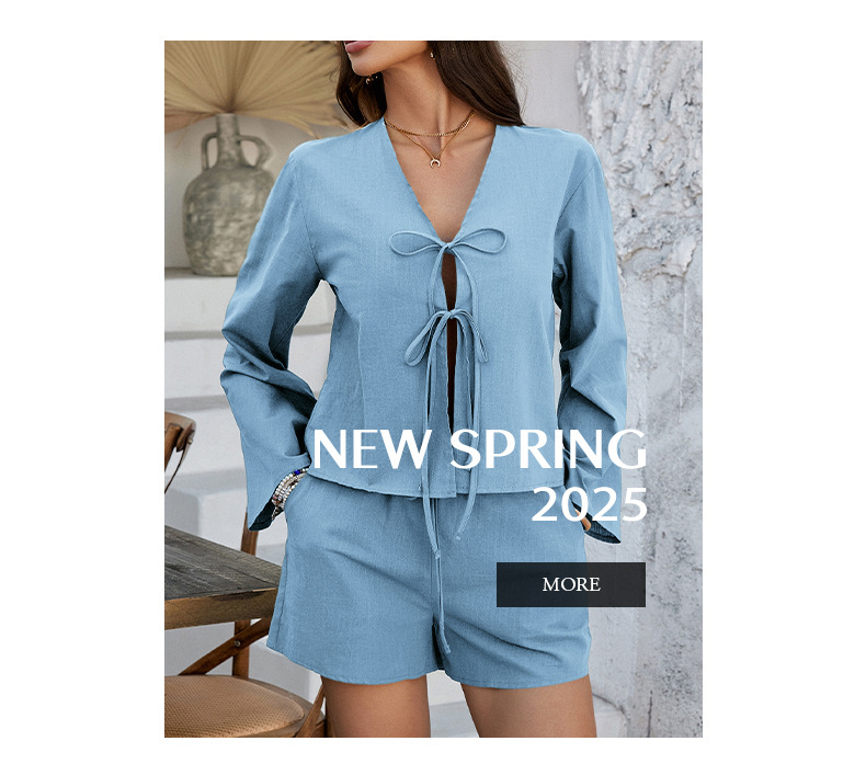 Europe, America 2025 spring and summer casual vacation style solid color cardigan long-sleeved top short pants suit women's clothing