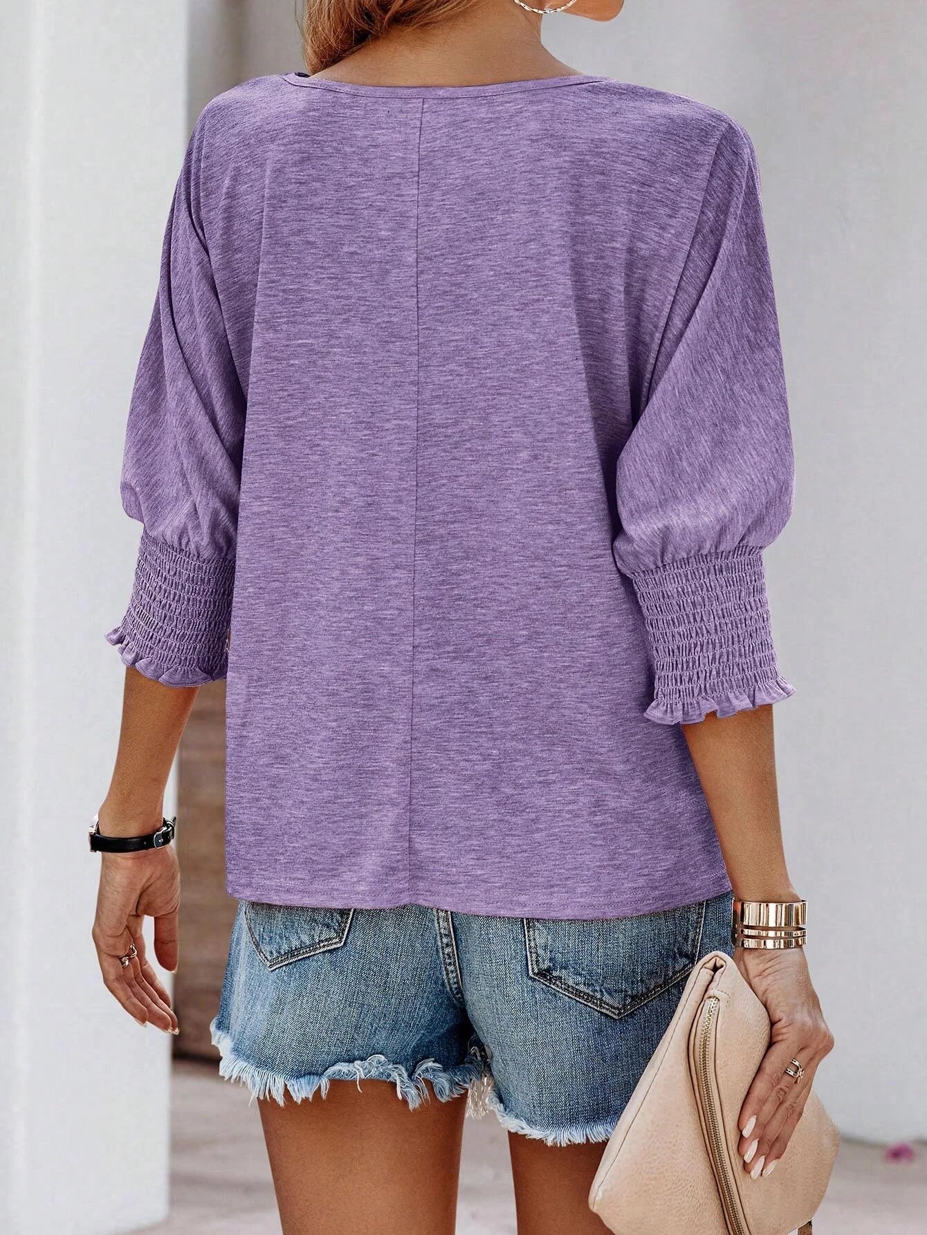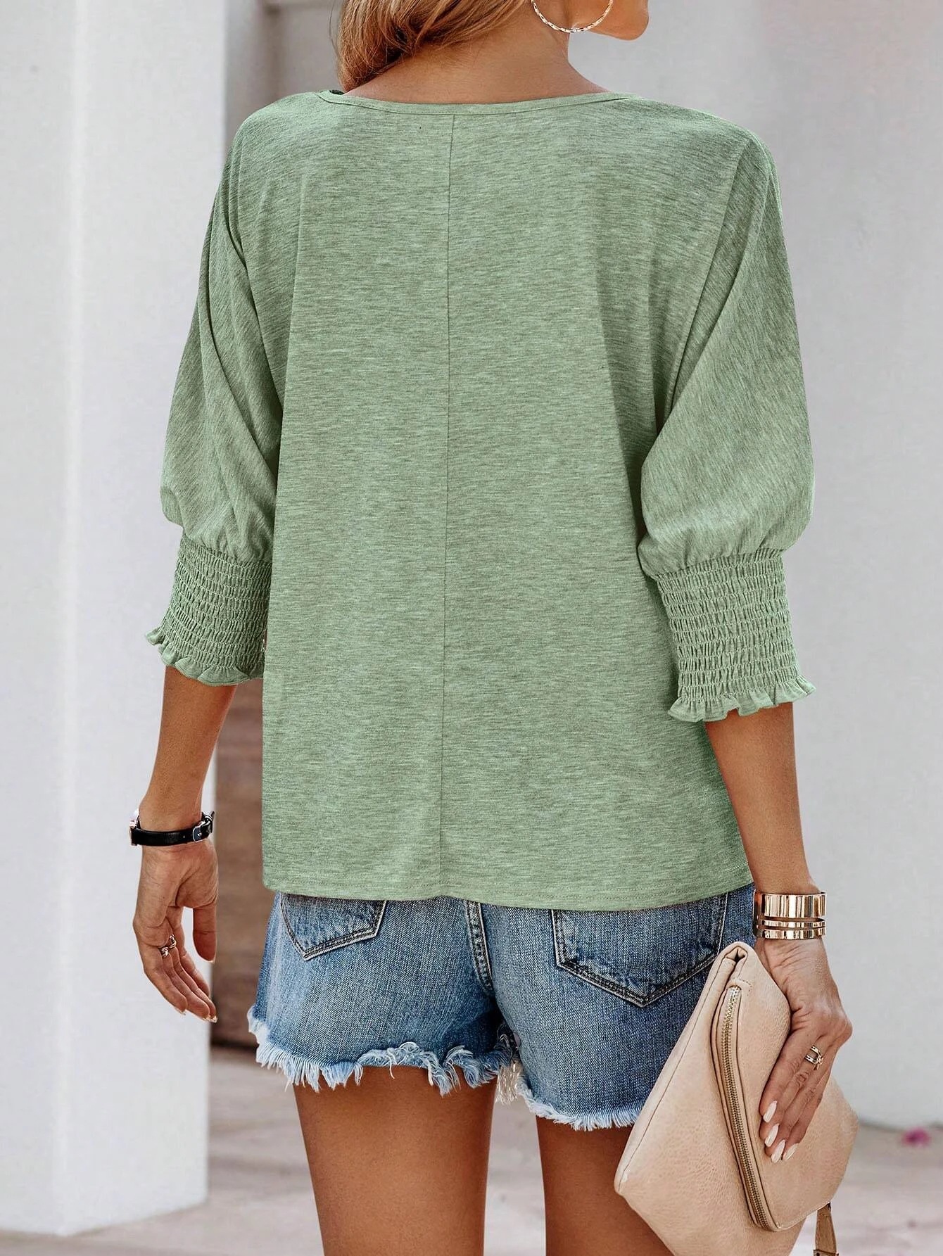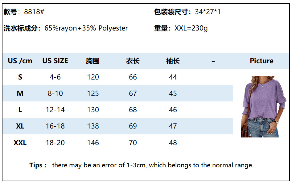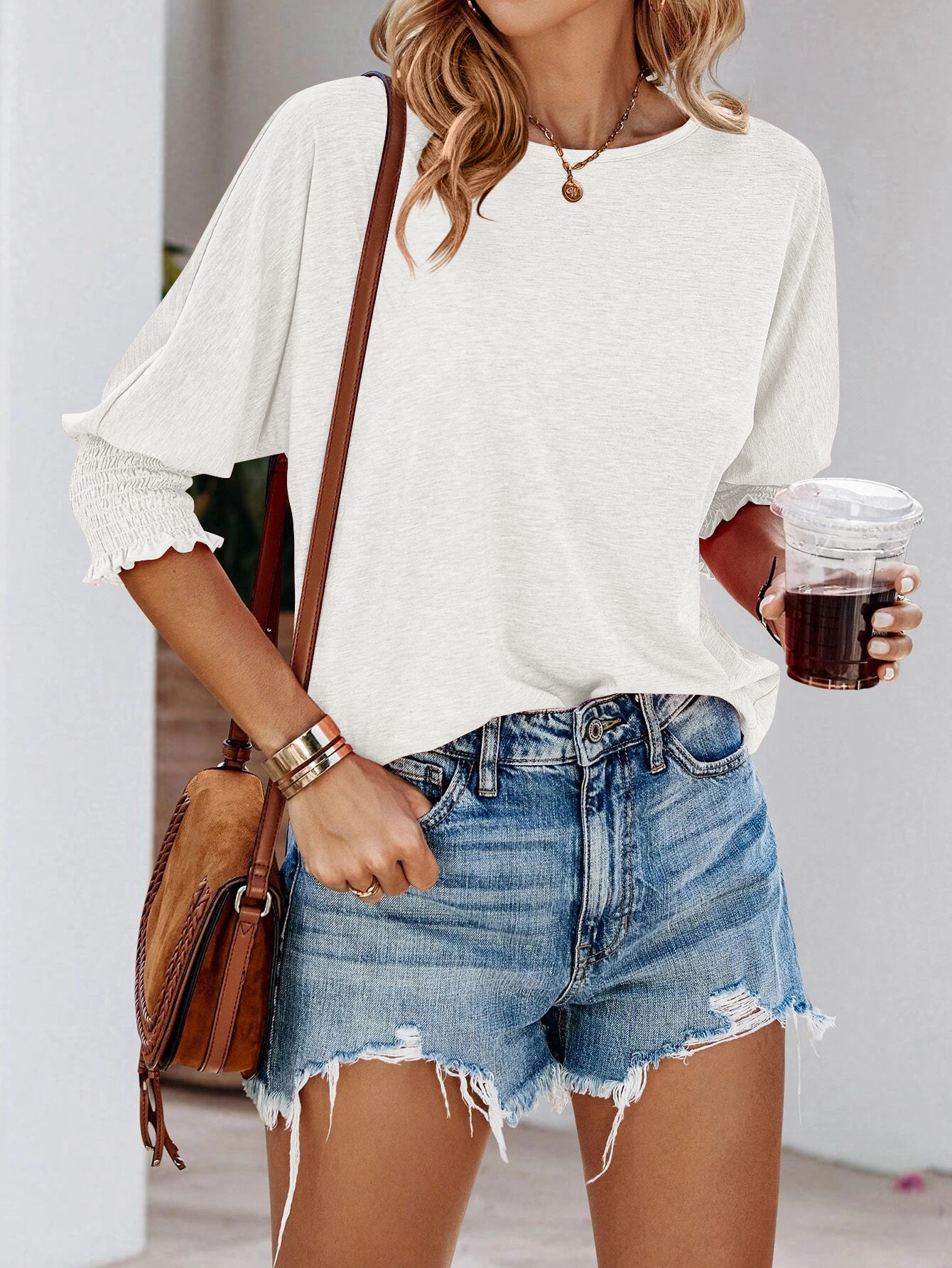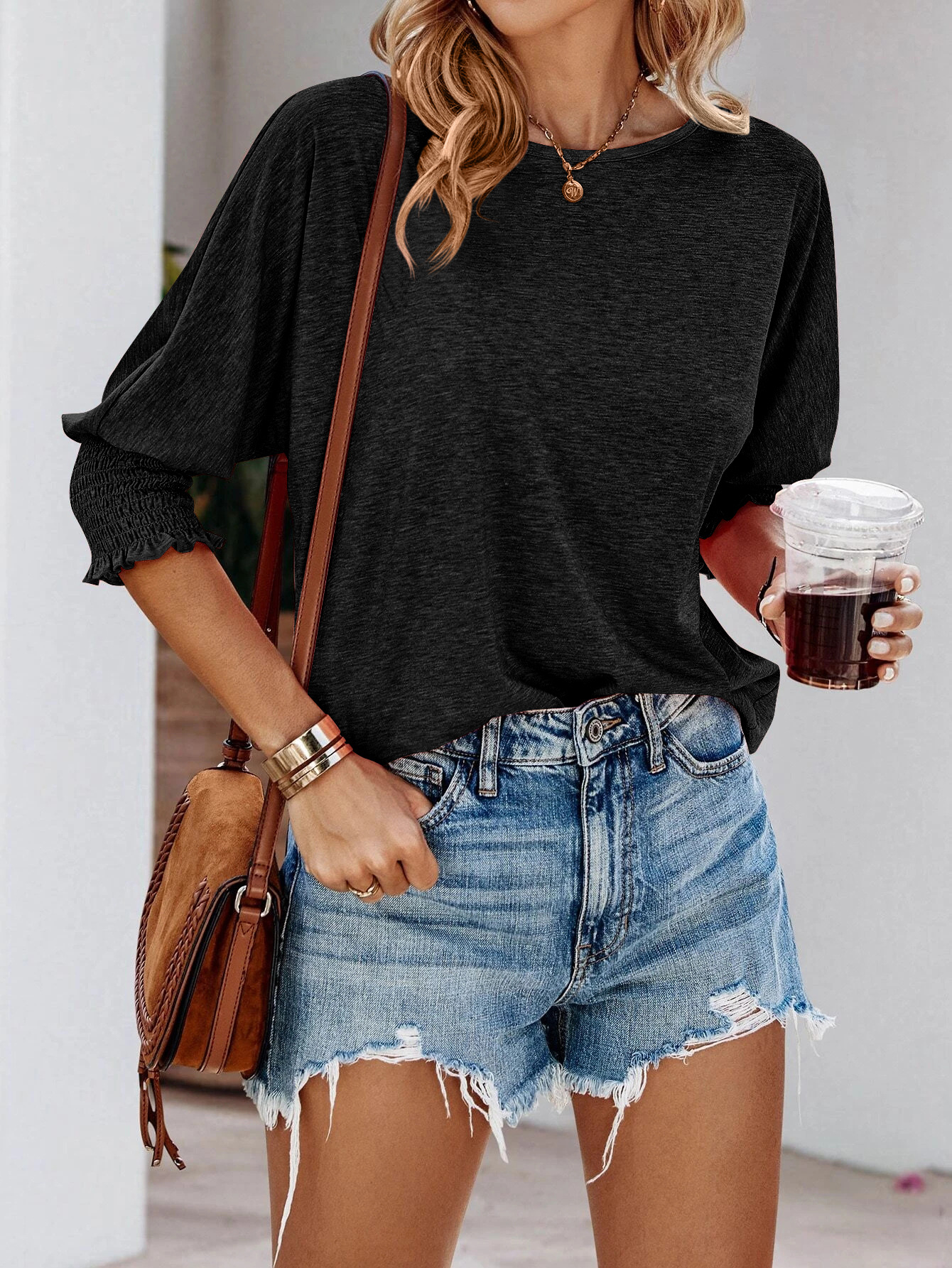 Europe, America, cross-border Amazon 2025 summer new products fashion loose round neck cuffs long version large size T-shirt women
