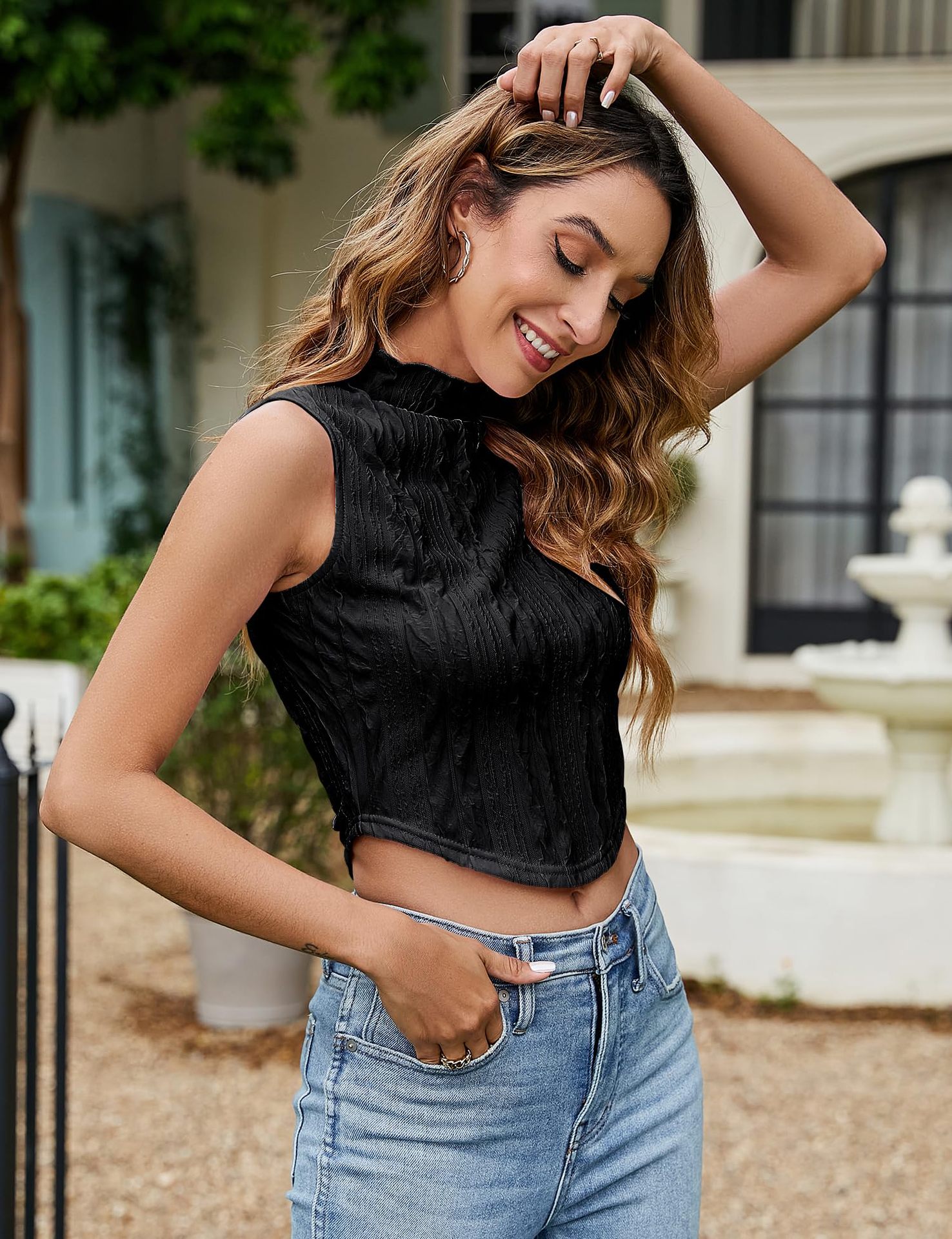 European and American cross-border Amazon TikTok independent station temu women sleeveless knitted crewneck slim-fit open-button vest summer