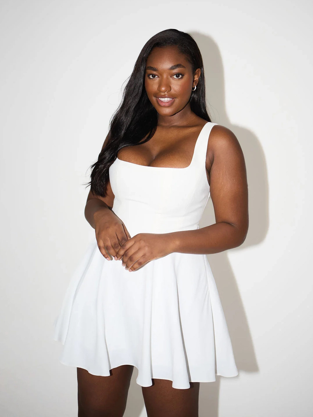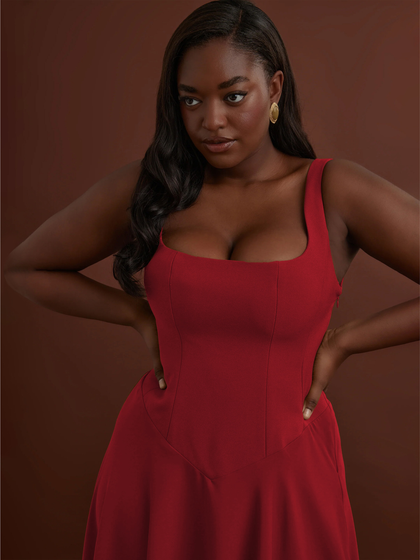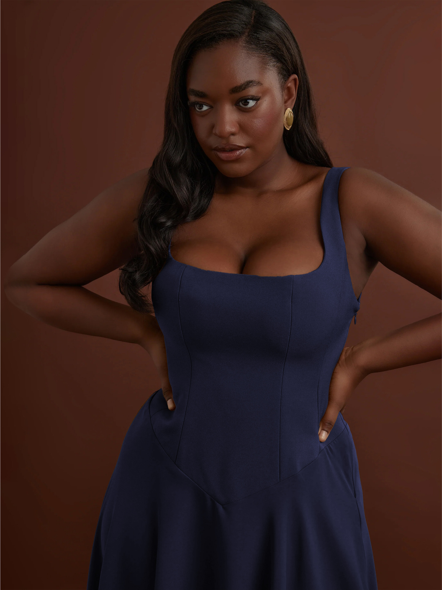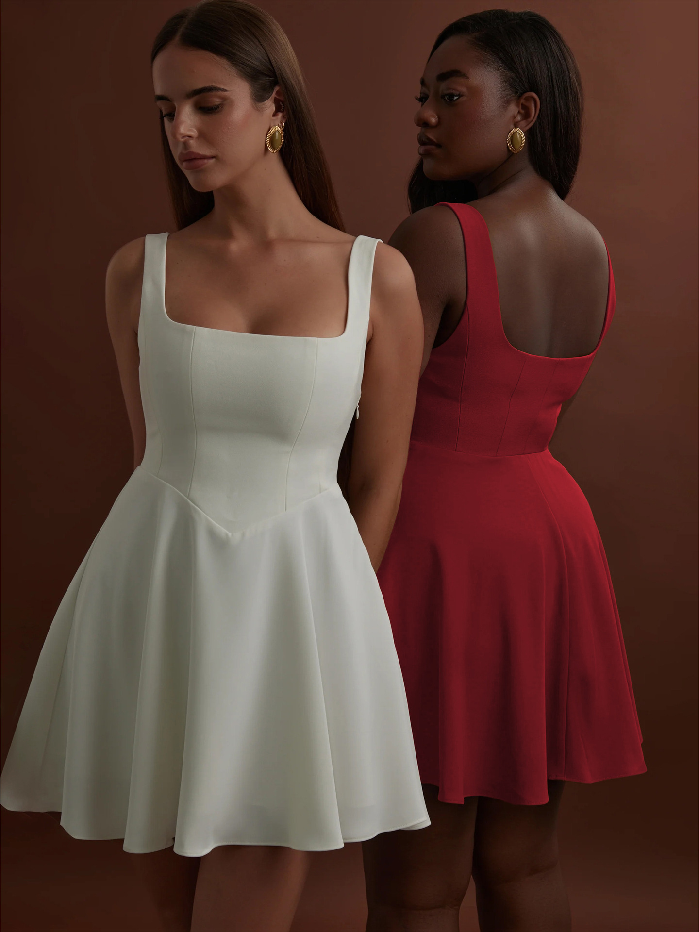 European and American cross-border women's clothing spring and summer new solid color slim temperament elegant square neck vest off-the-shoulder dress