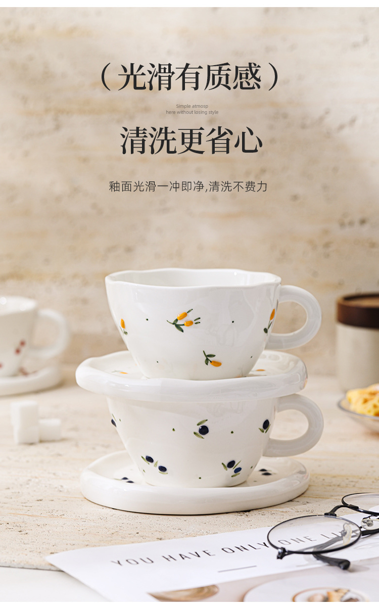 A Embossed Ceramic Coffee Cup and Saucer Set