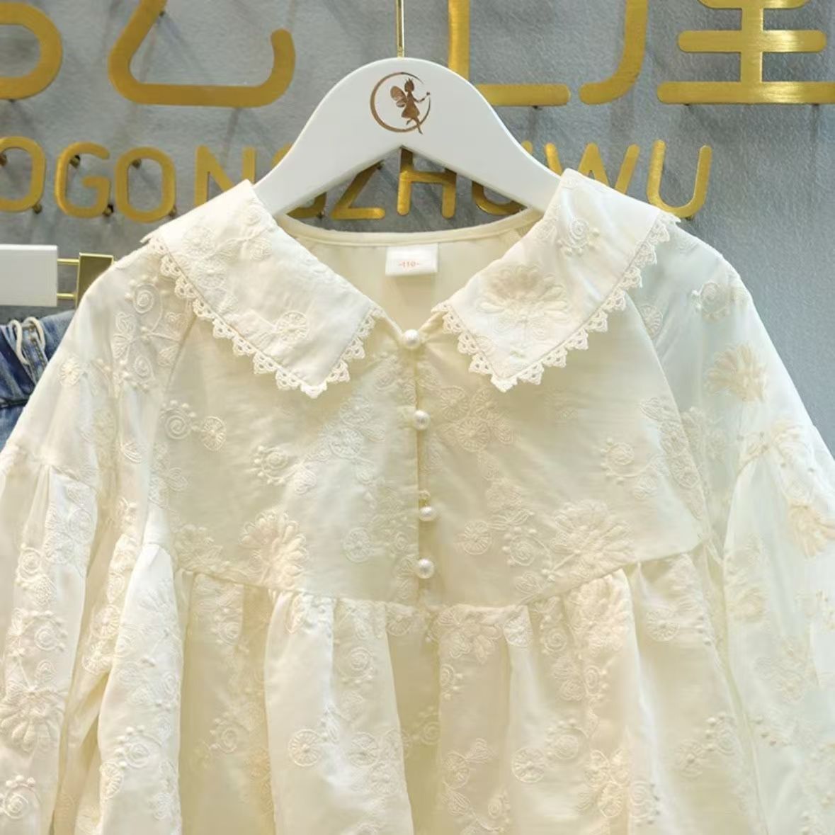 P Girls Spring New Doll Ocean Long Sleeve Fashion Shirt Children's Jeans Two-piece Set