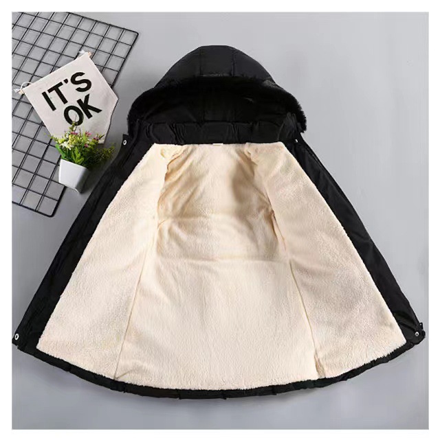 A Children's mid-length fleece-lined thick warm coat