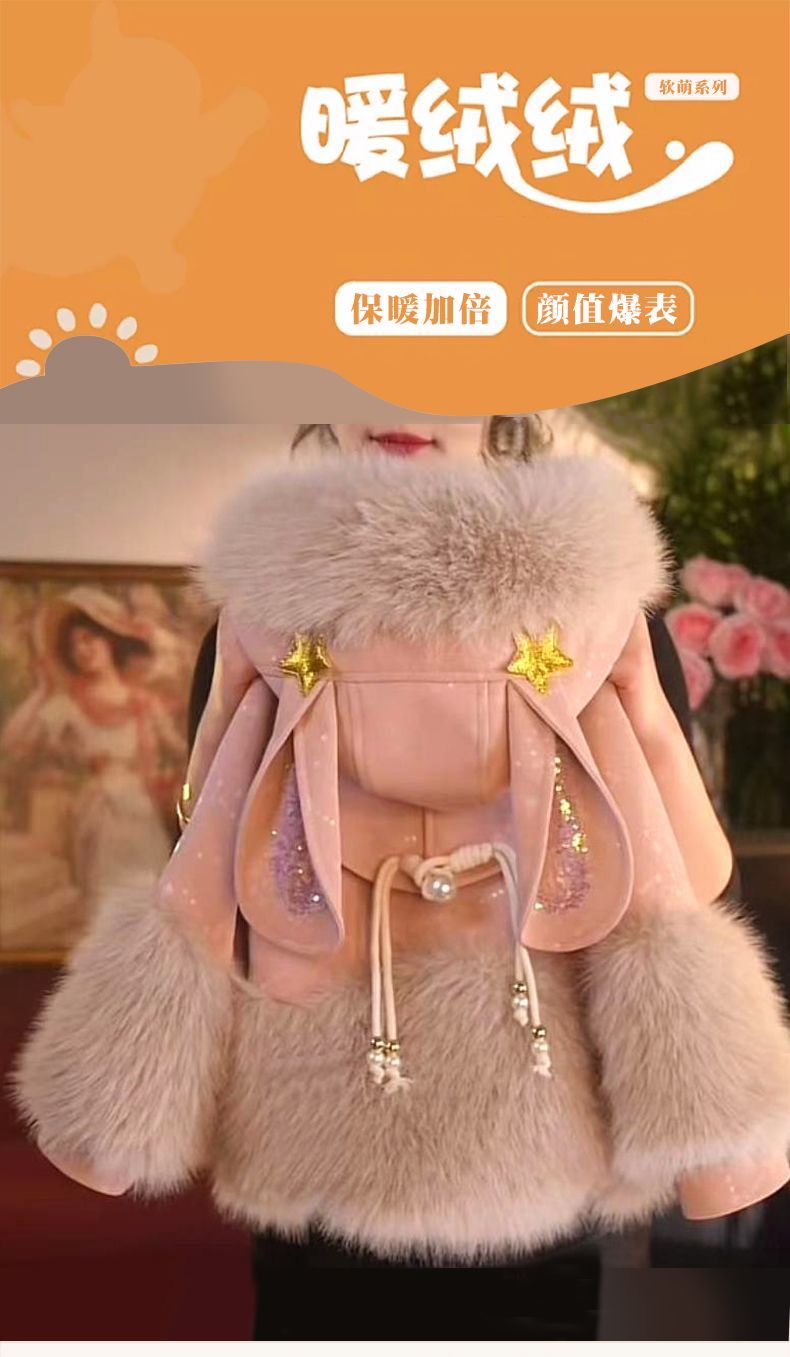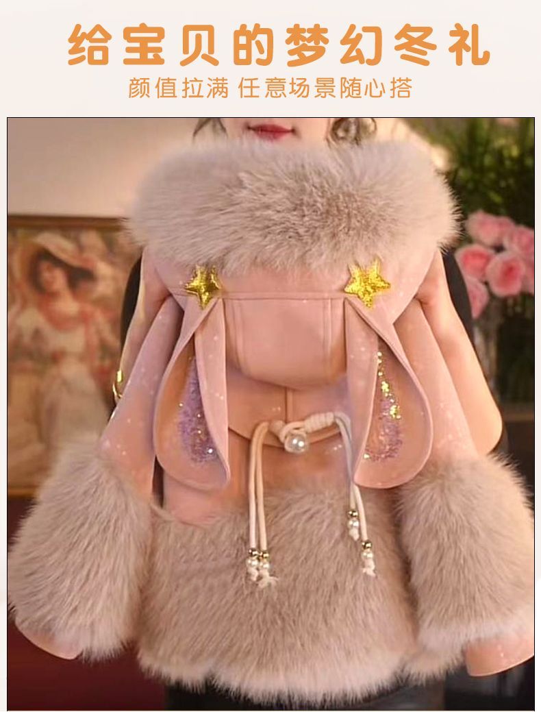 P girls' fur new autumn and winter thickened velvet winter foreign style top children's jacket trendy