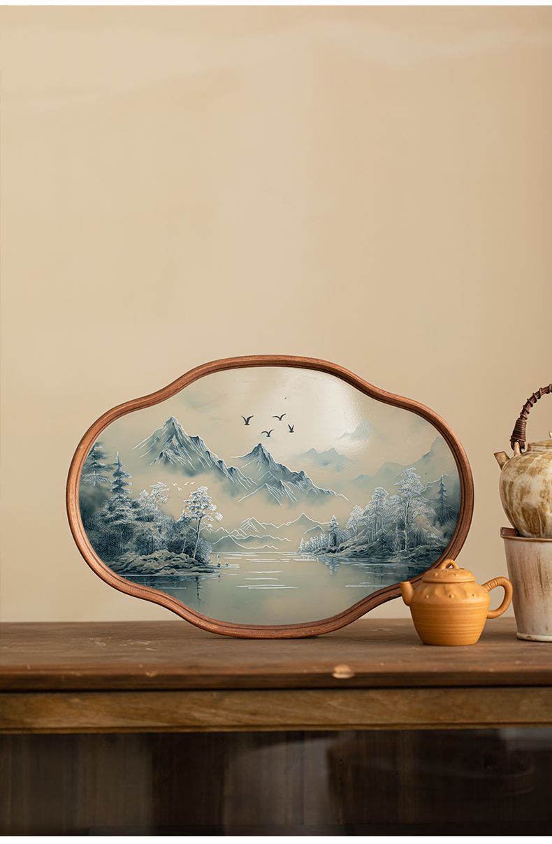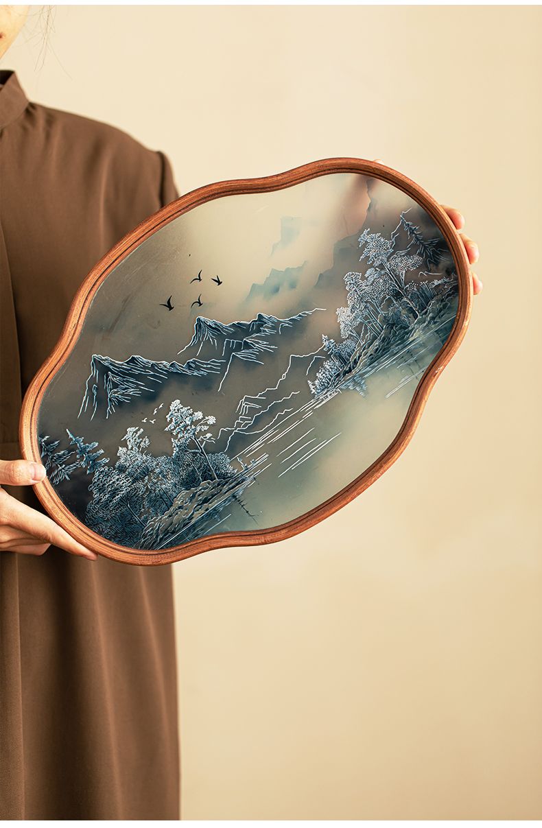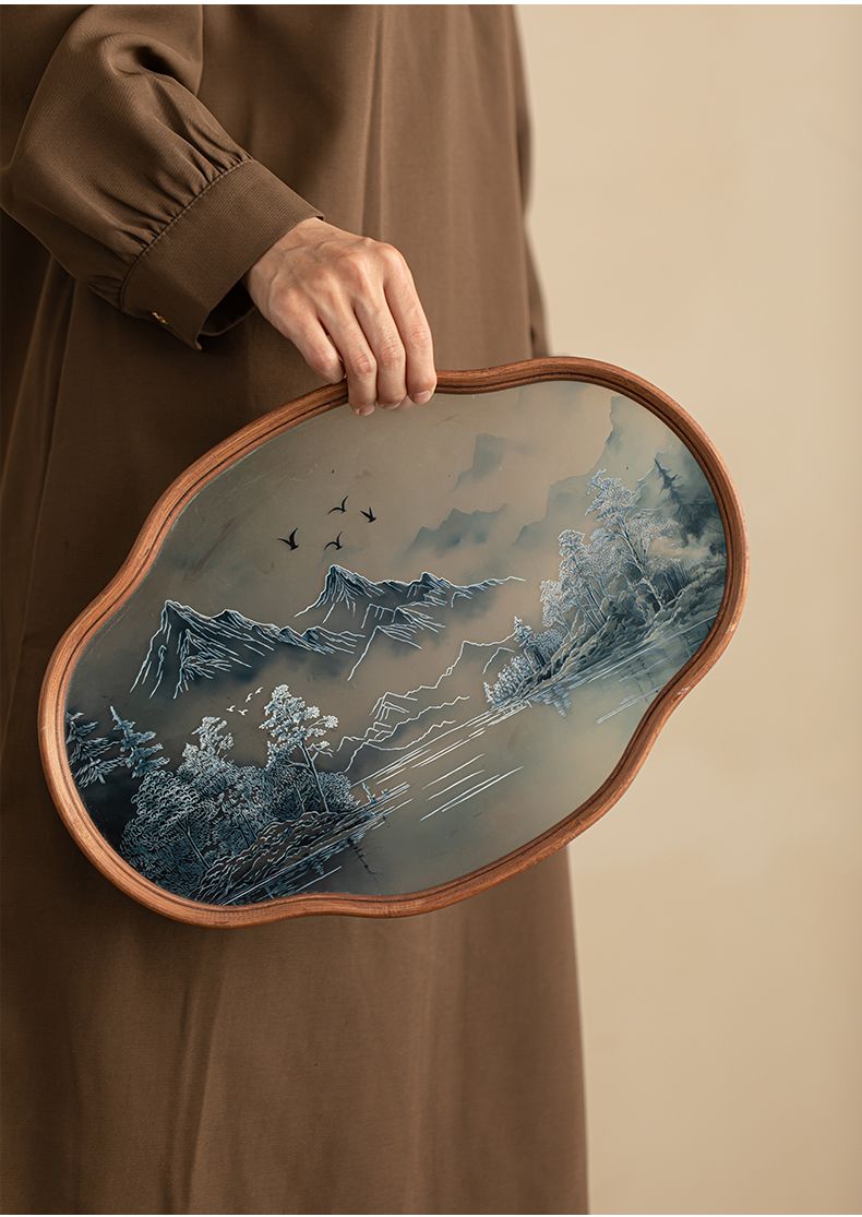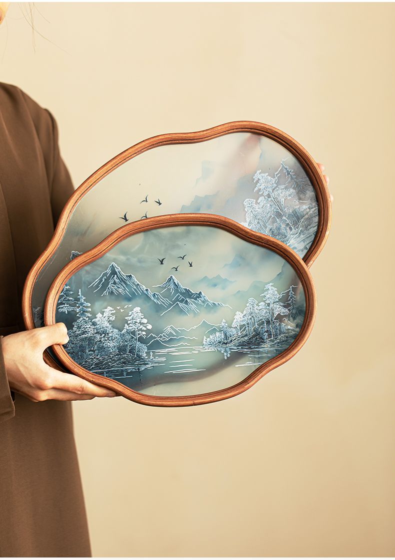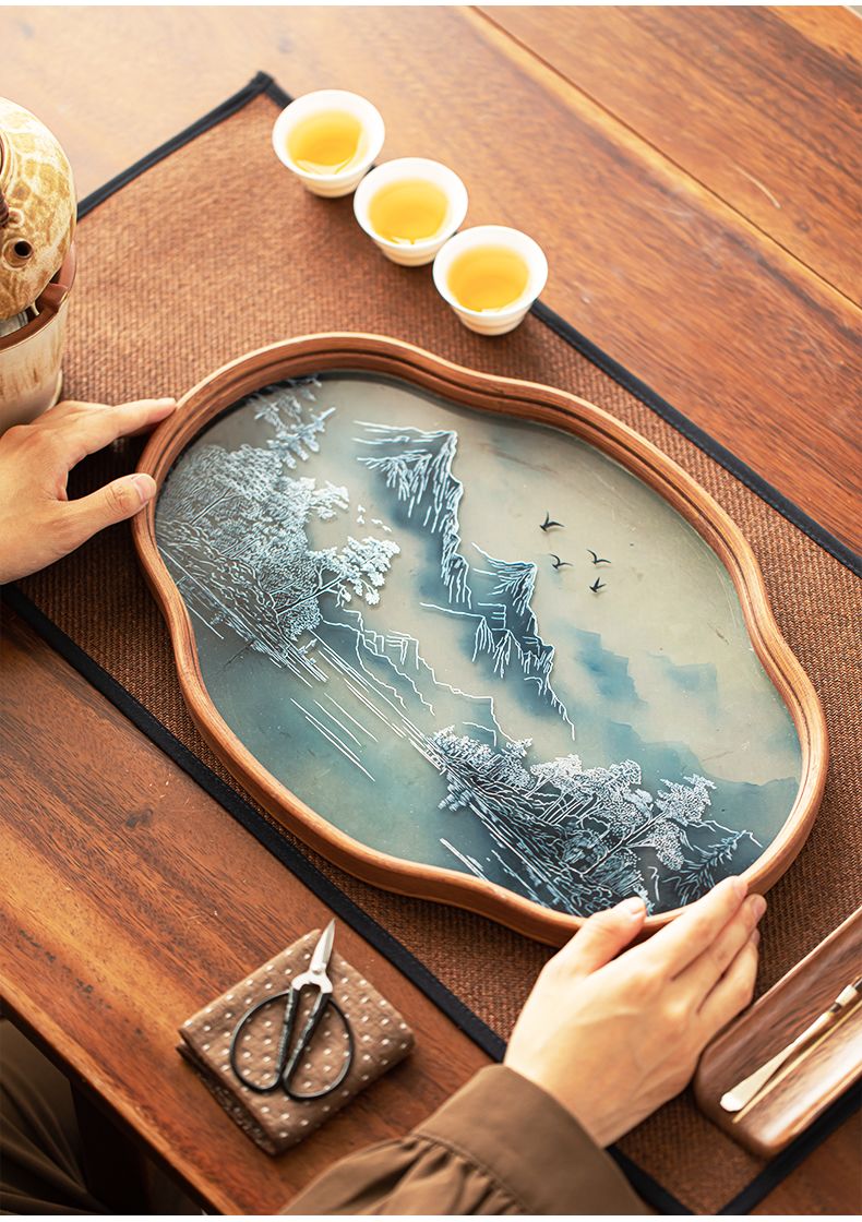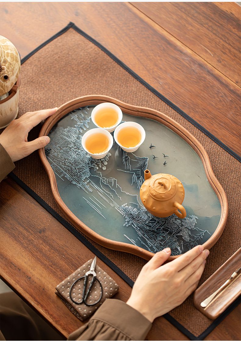 P landscape glass tray retro bamboo dry brewed tea tray fruit snack tray kung fu tea set tea cup storage tray