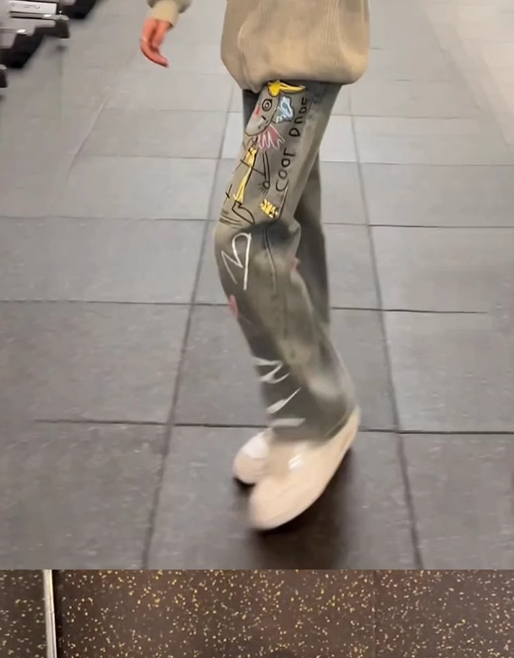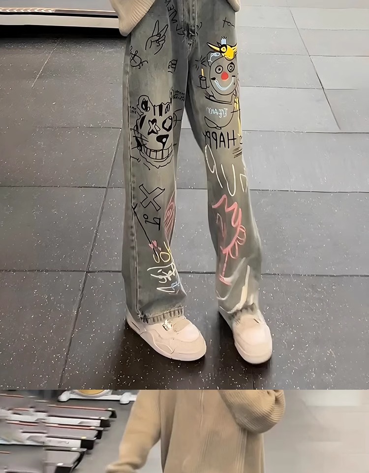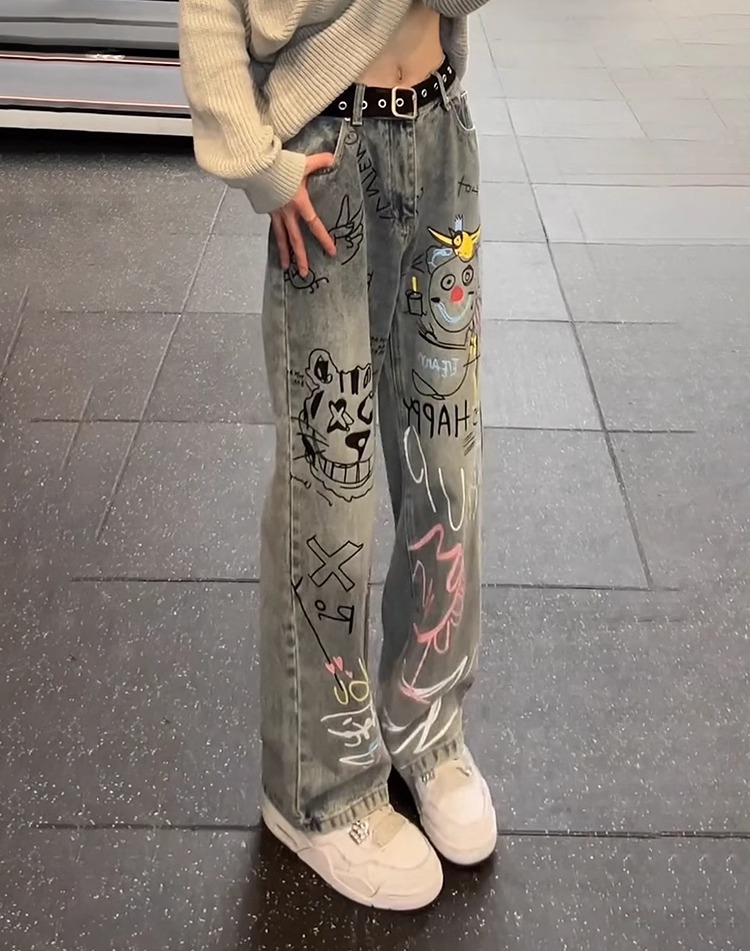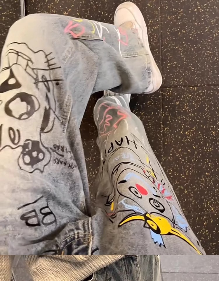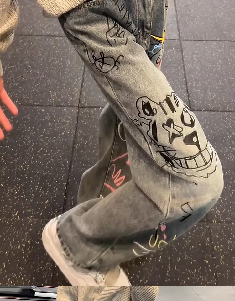 A graffiti print jeans