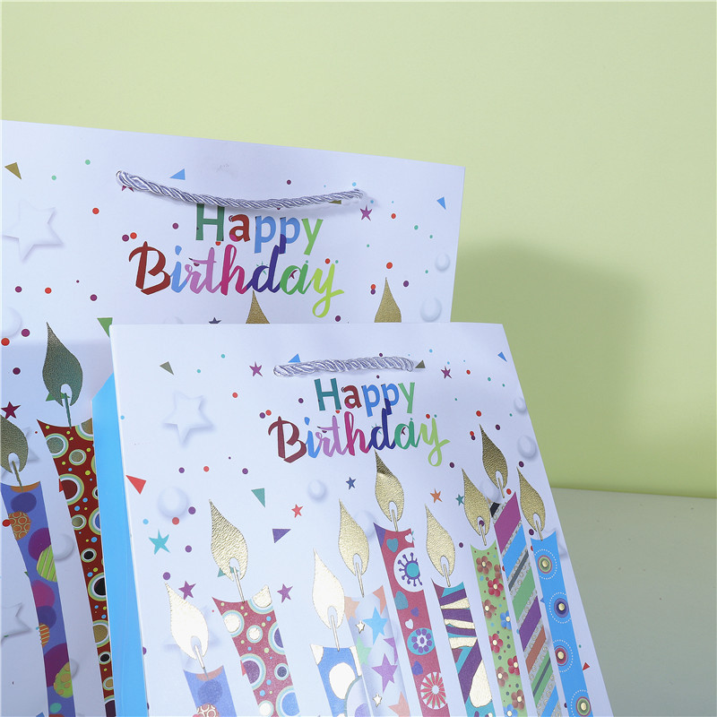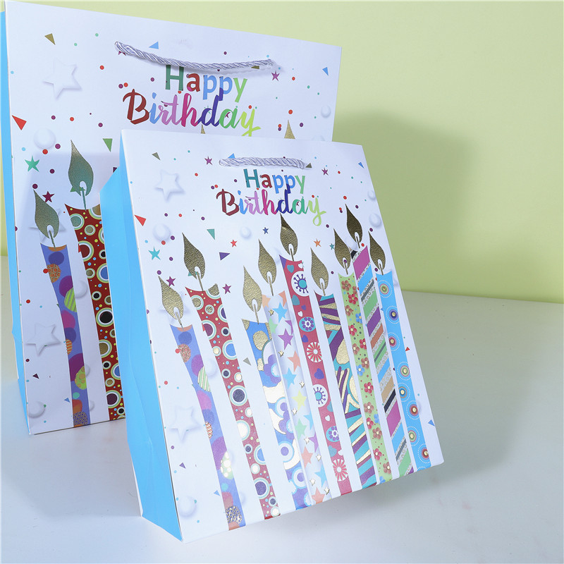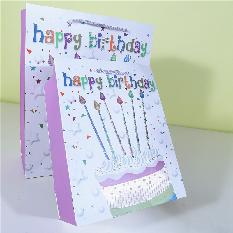 A happy birthday gift paper bag cake wrapping paper bag balloon candle shopping bag spot wholesale plush toy bag