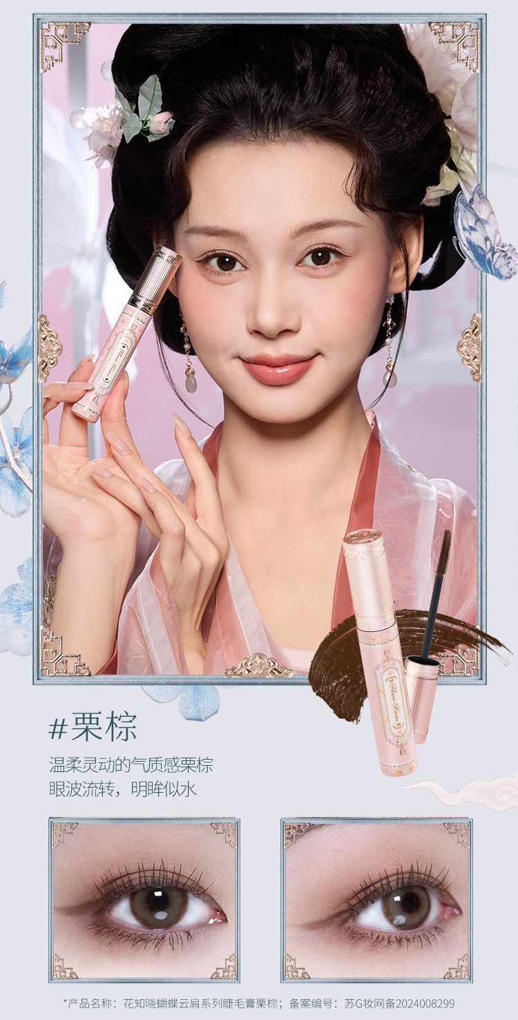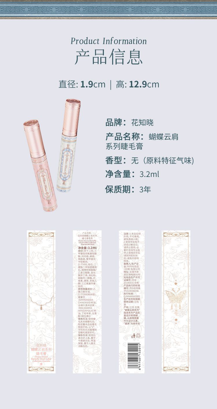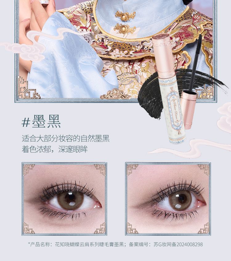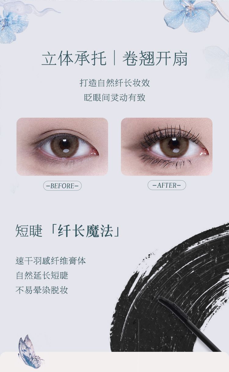 P Flower Knowledge Butterfly Cloud Shoulder Black Brown Mascara Slender and curled, not easy to smudge, daily commuting students 3.2ml