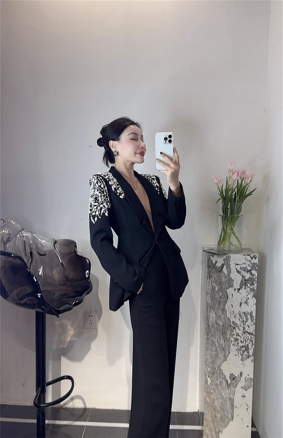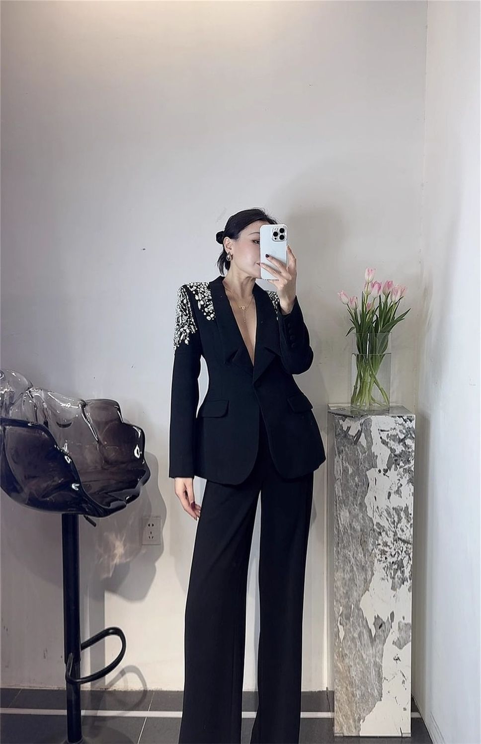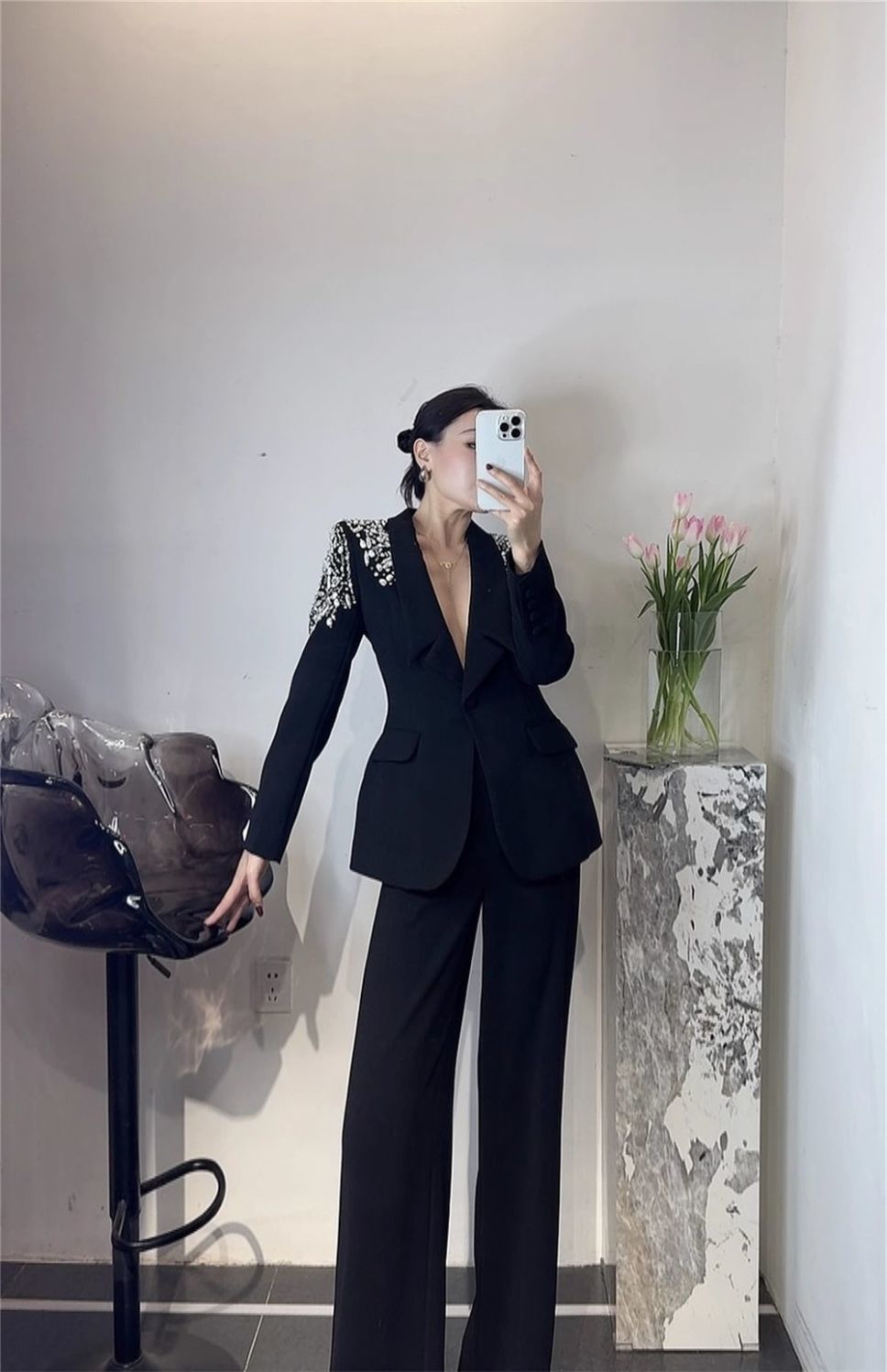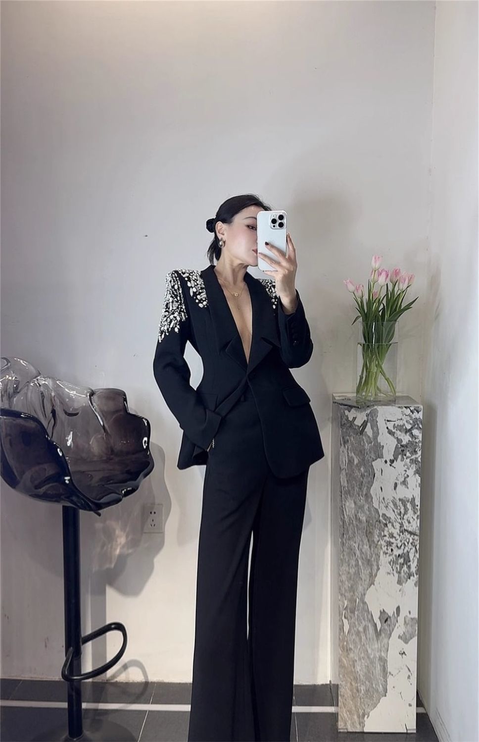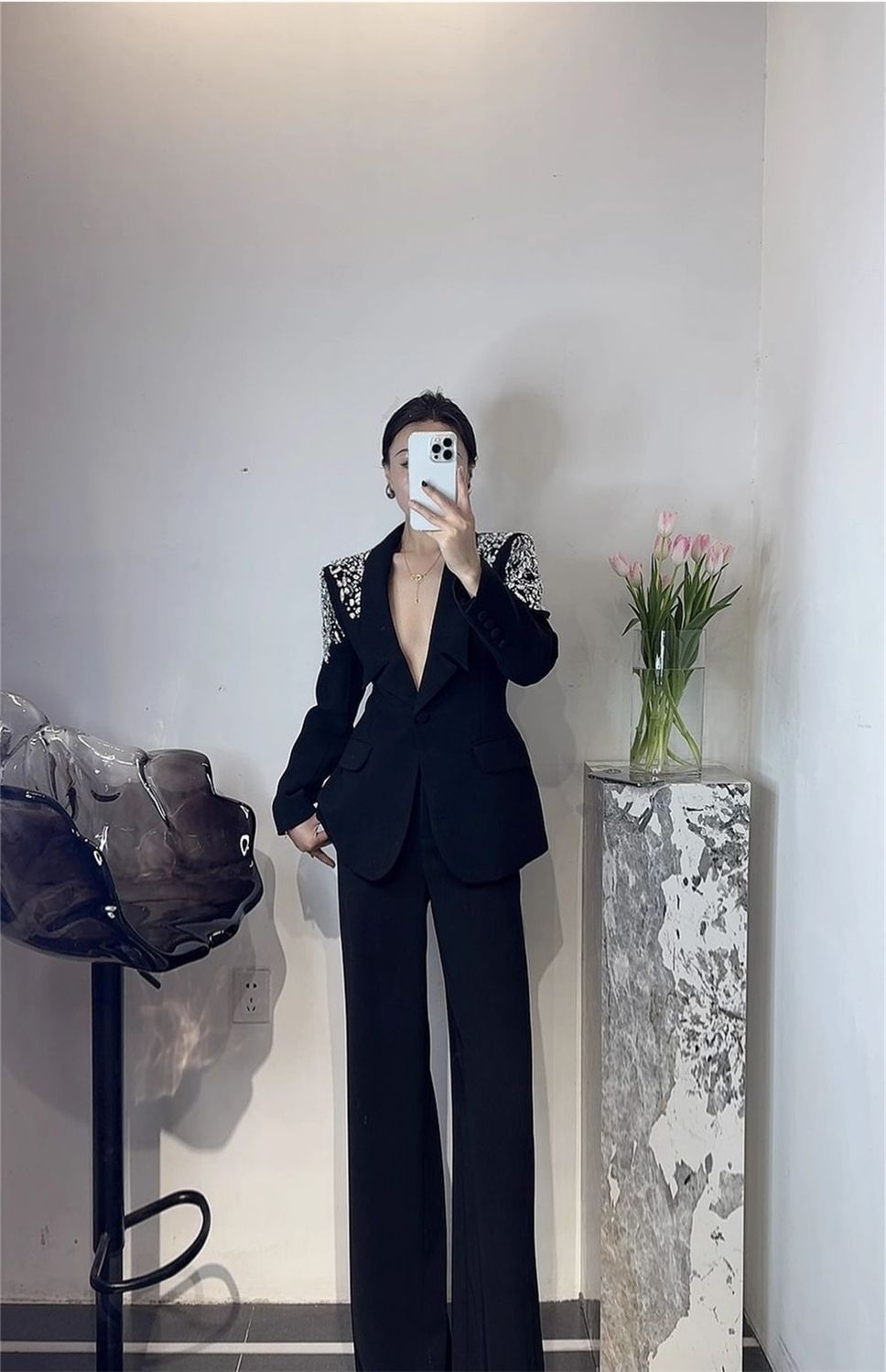 P Korean version of light luxury heavy industry hot diamond suit trousers suit fashion temperament high foreign style two-piece set tide