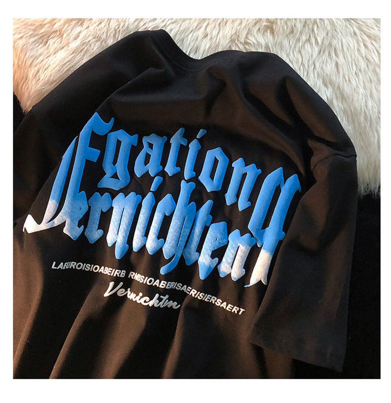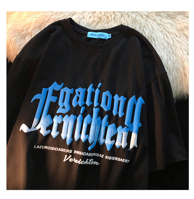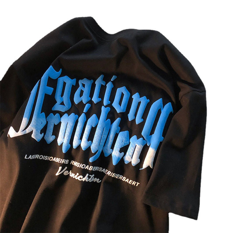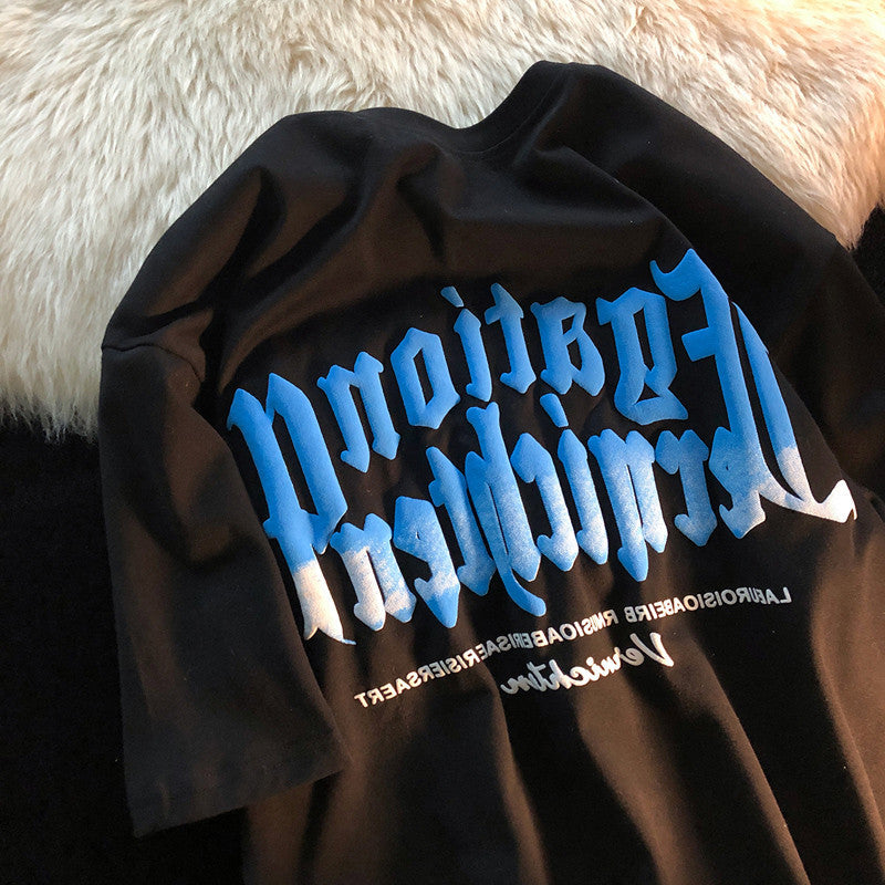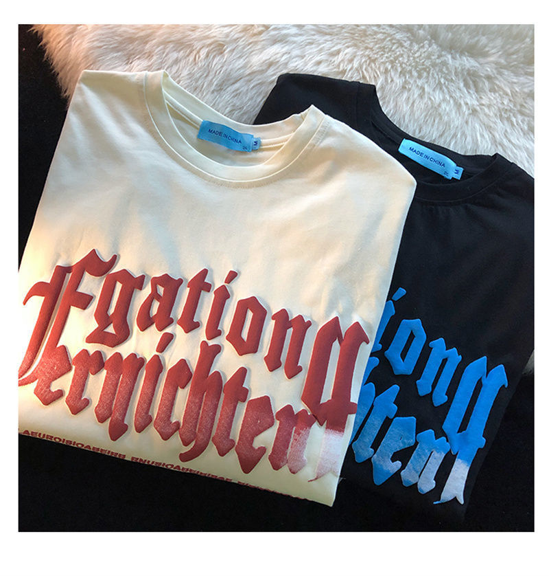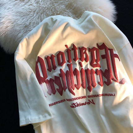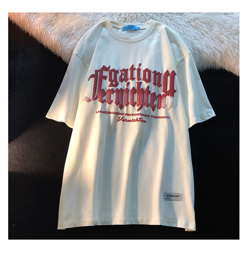 A Japanese design sense letter print crew neck short-sleeved T-shirt female student