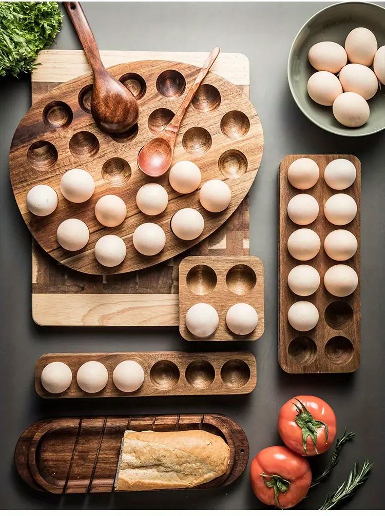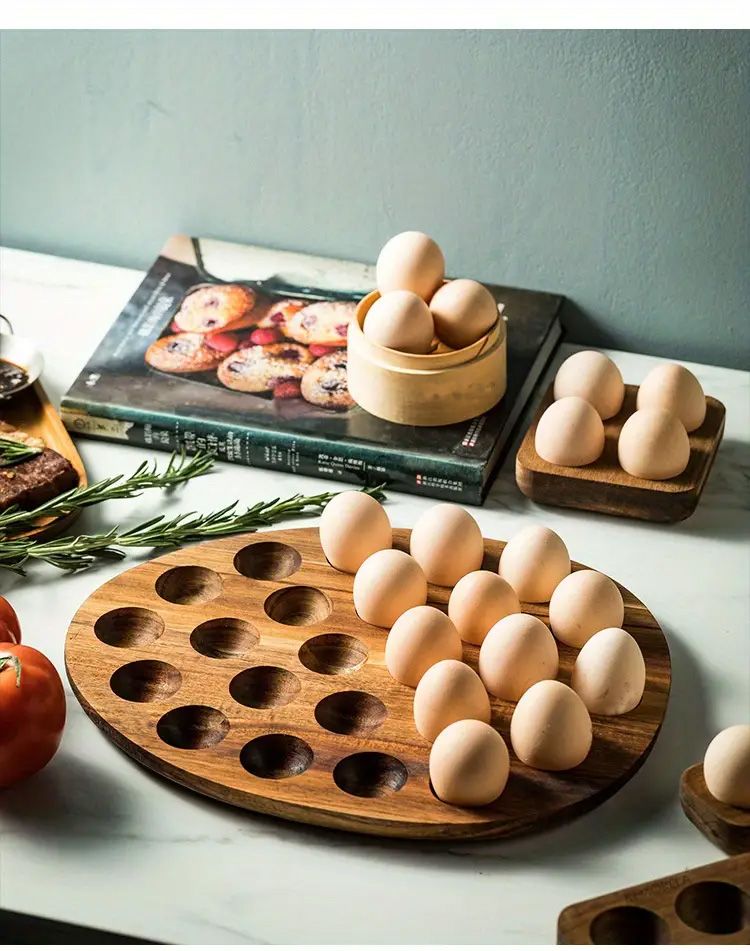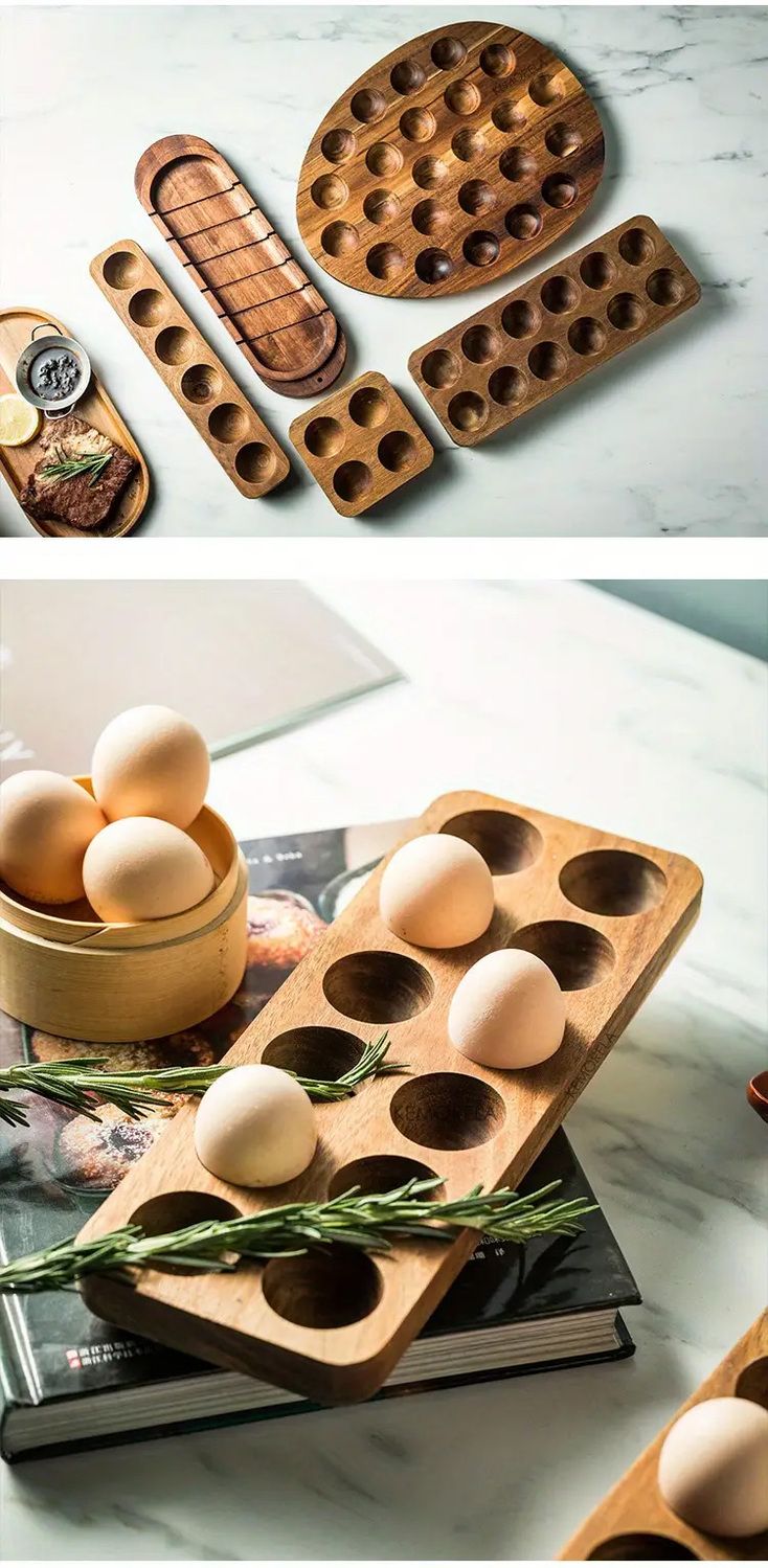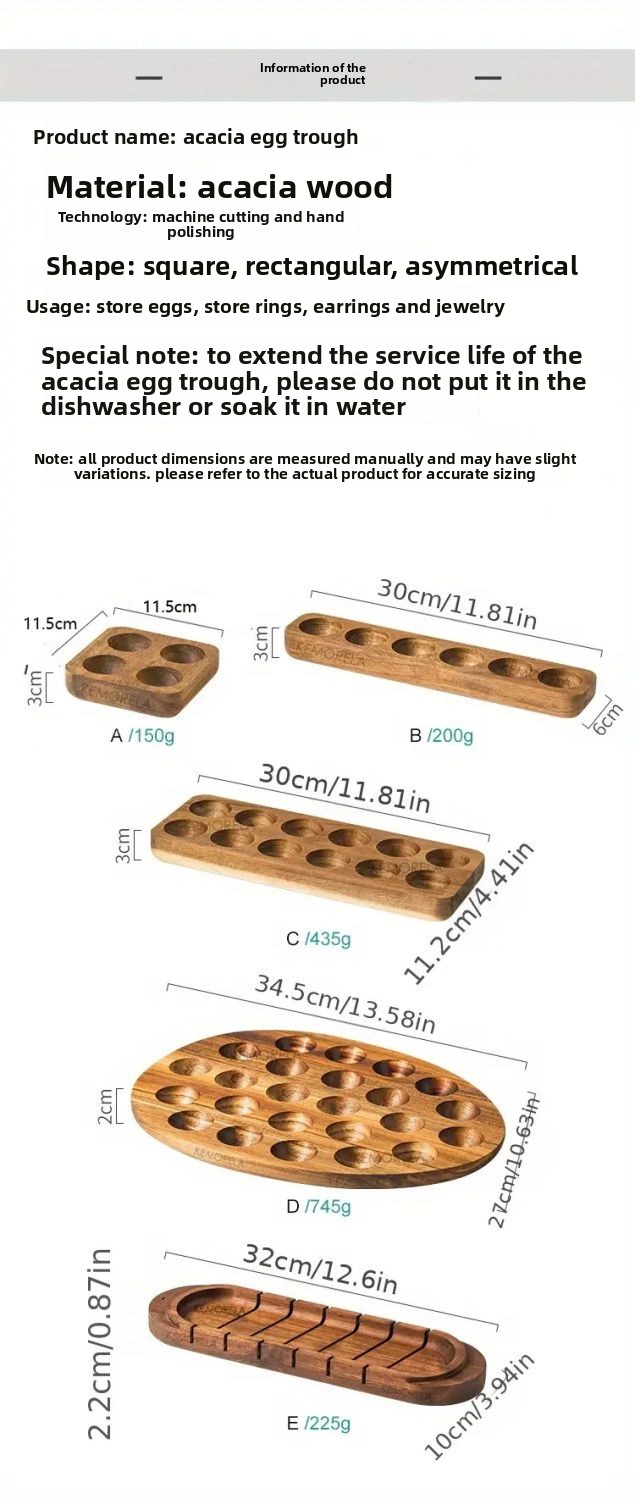 P Japanese-style solid wood egg storage box Acacia wood tray