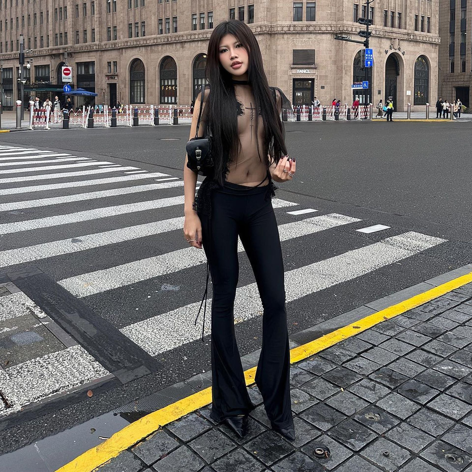 L275PT European and American women's clothing 2025 spring new fashion casual versatile slim slim low waist hip lift horn trousers