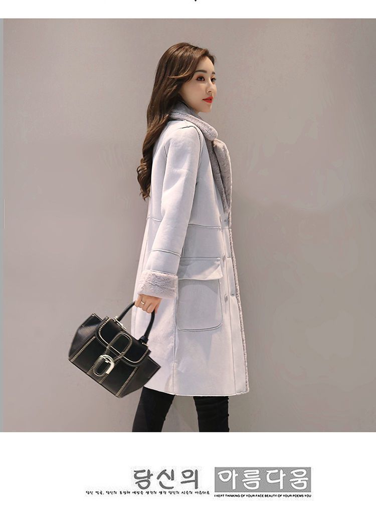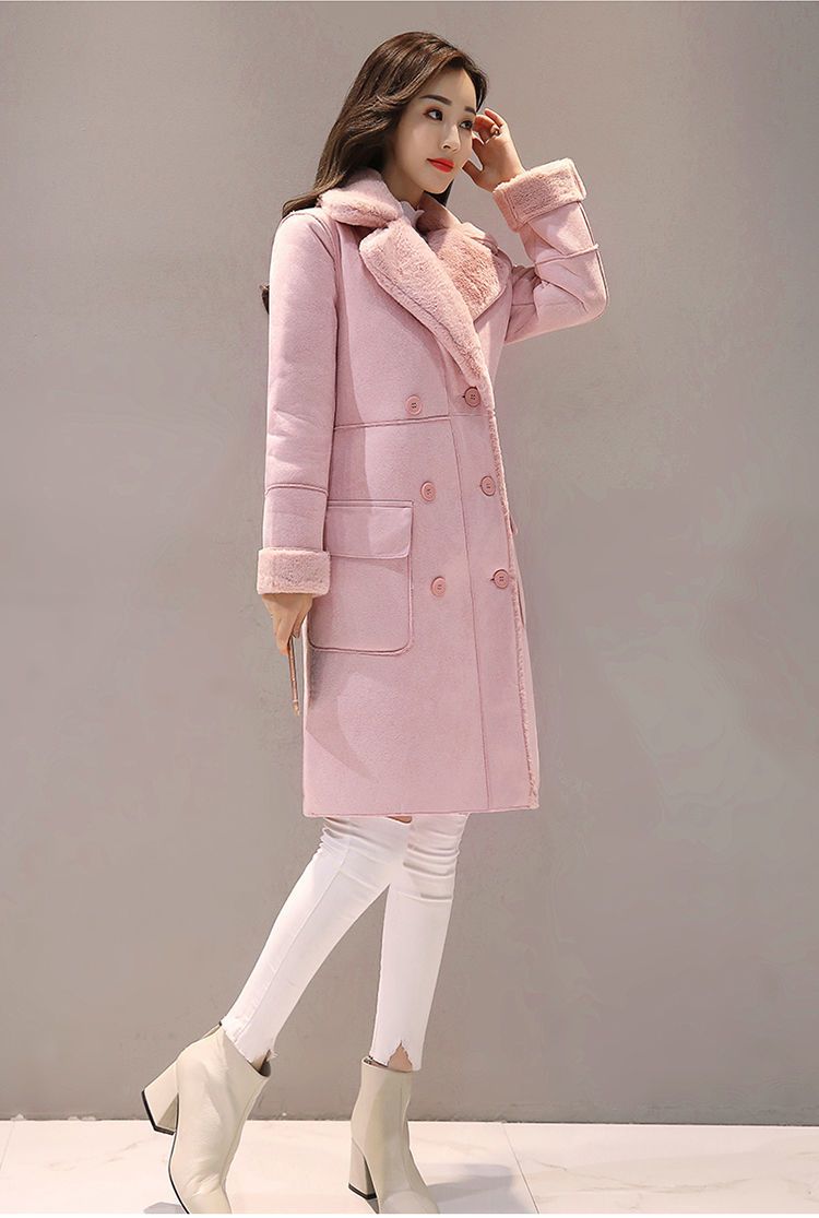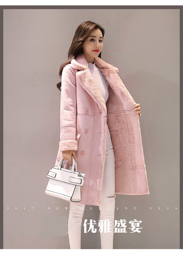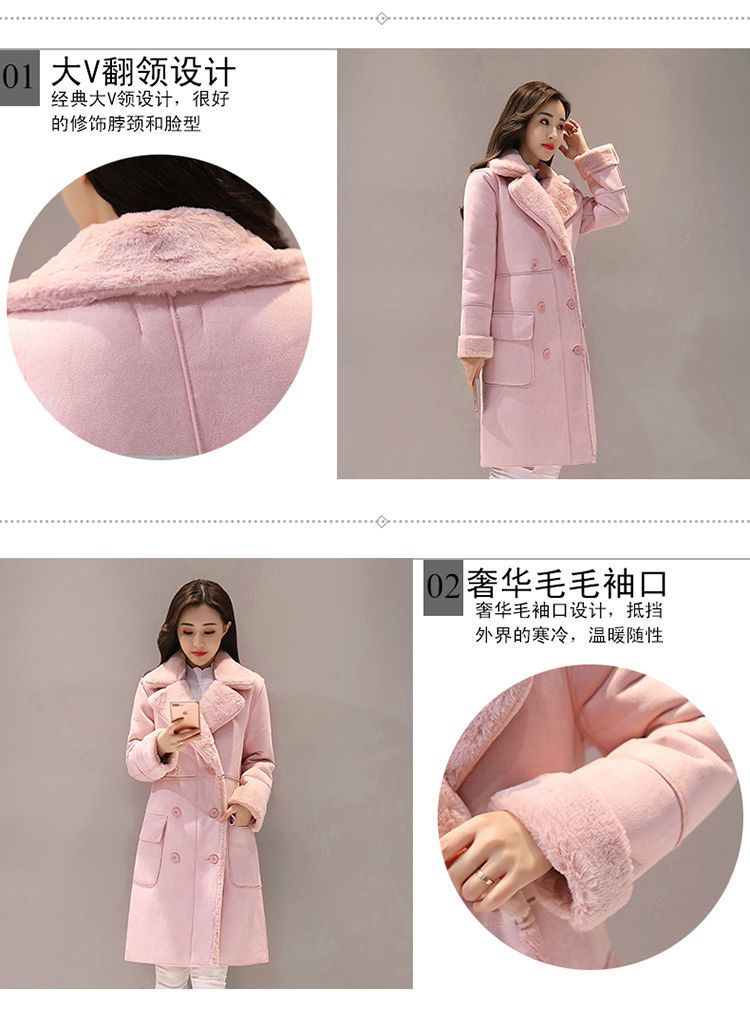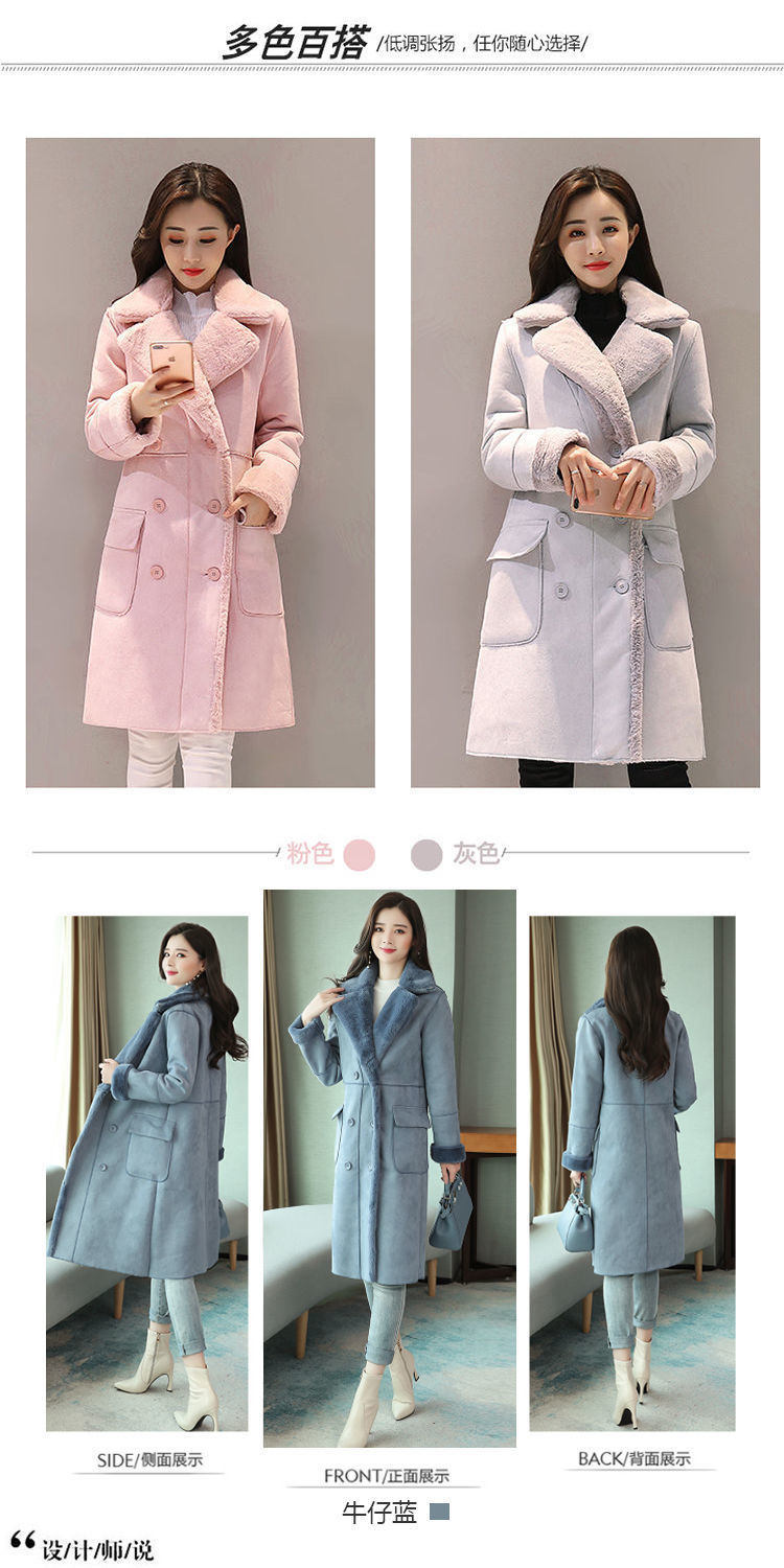 P lamb wool coat women's Korean version winter velvet thickened suede coat medium and long fur integrated lapel cotton-padded coat