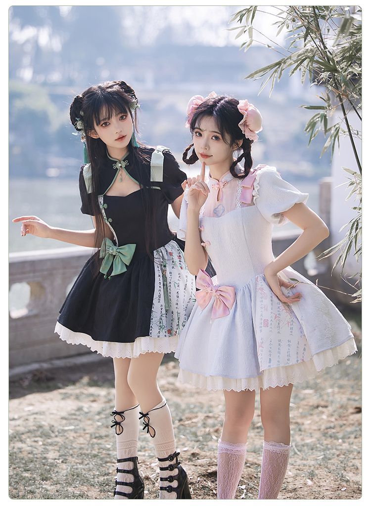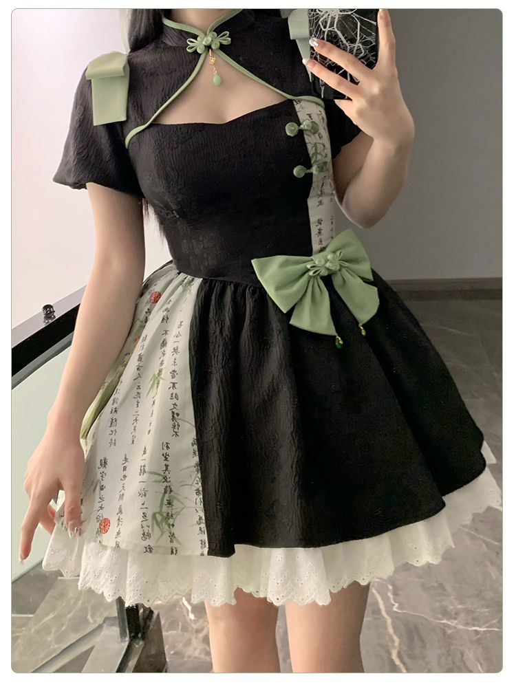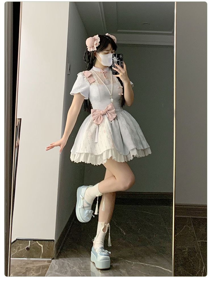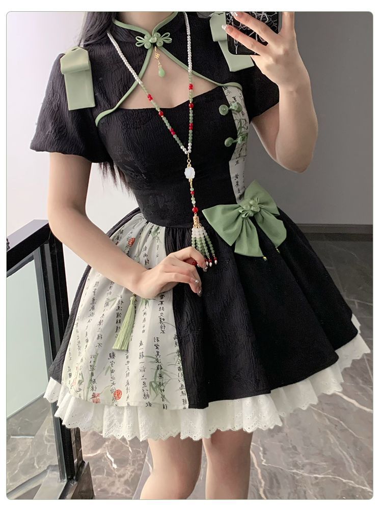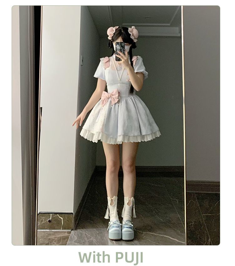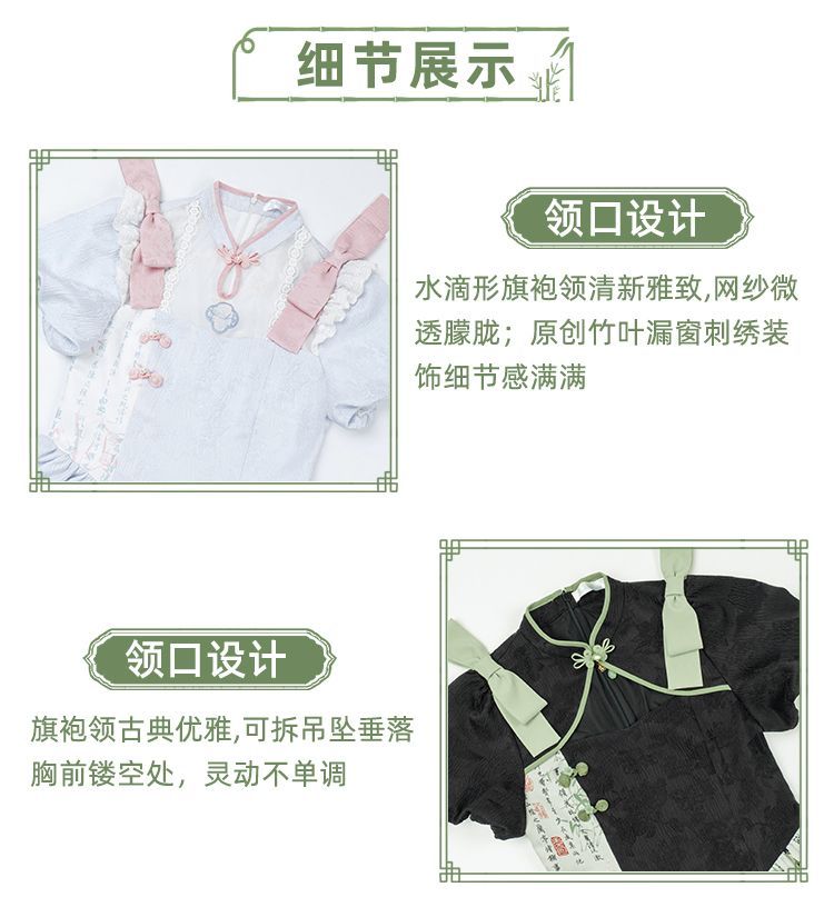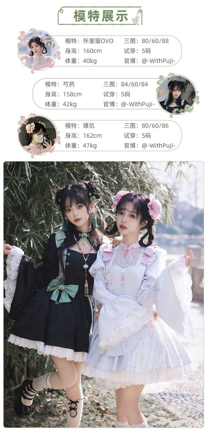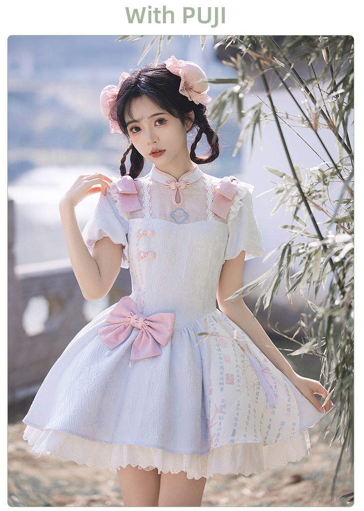 P withpuji original design Chinese style embroidered print sleeve cheongsam lolita summer