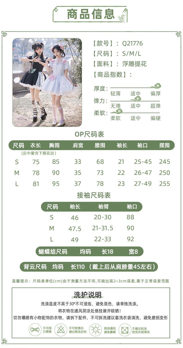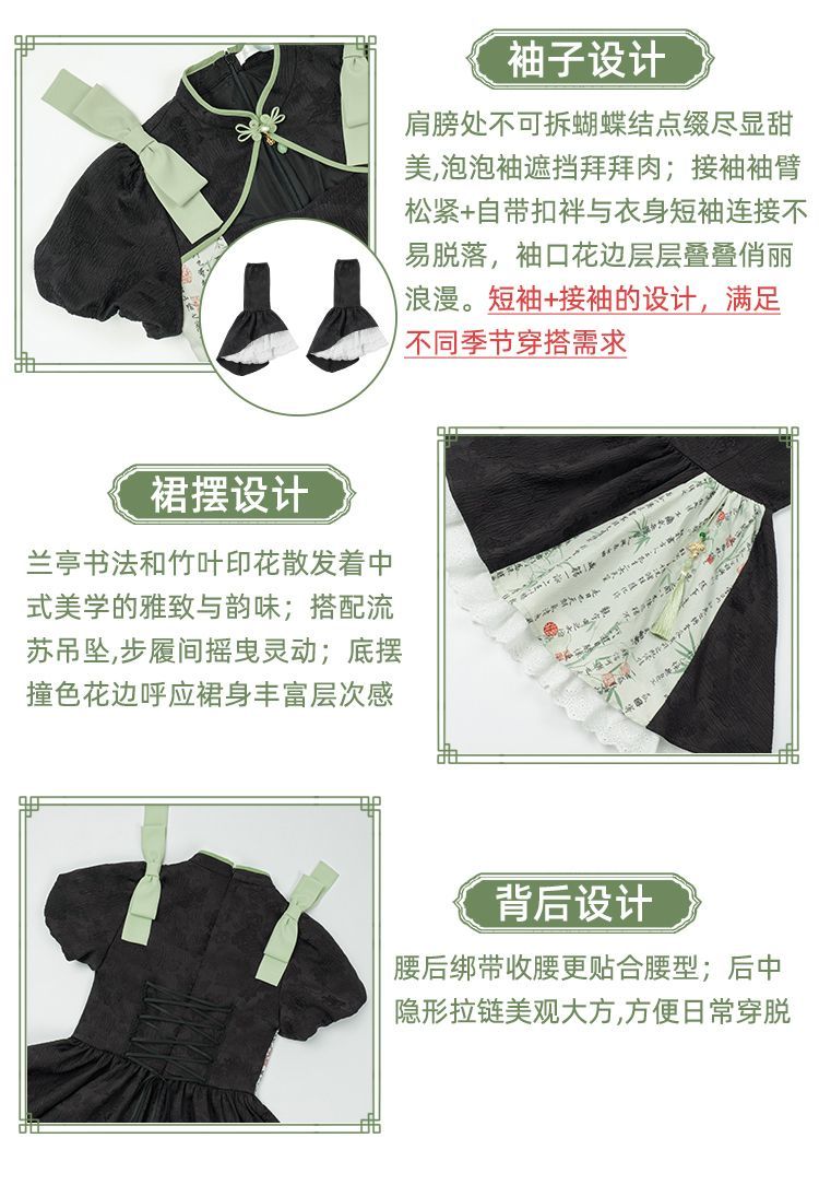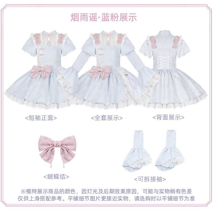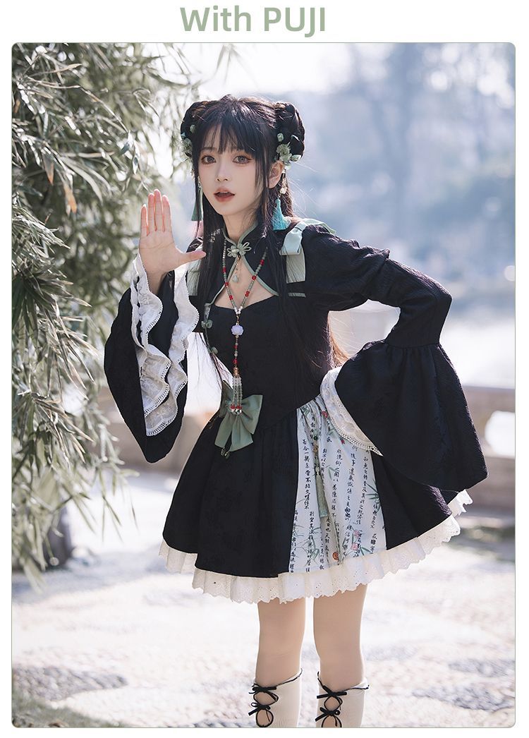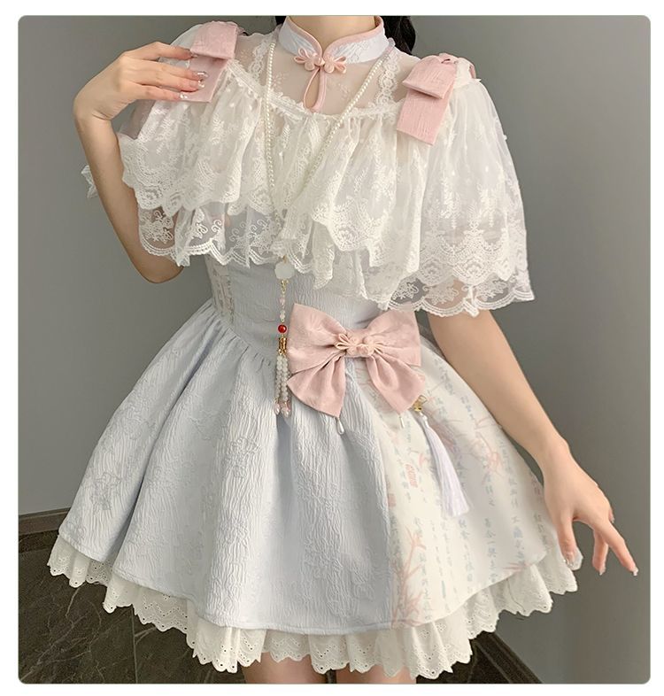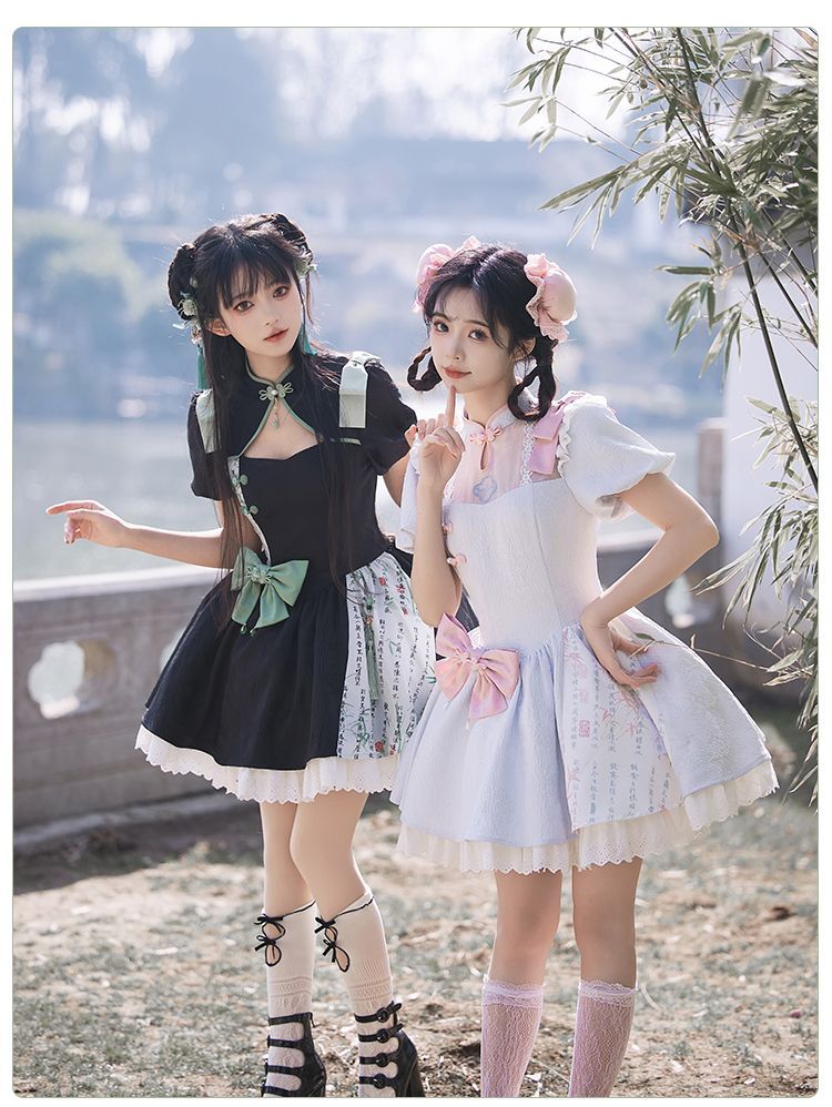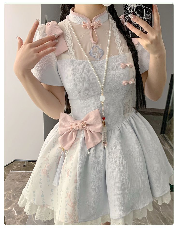 P withpuji original design Chinese style embroidered print sleeve cheongsam lolita summer
