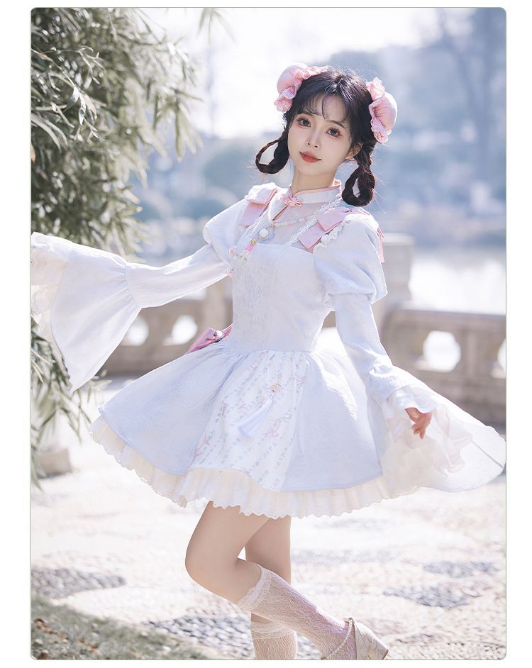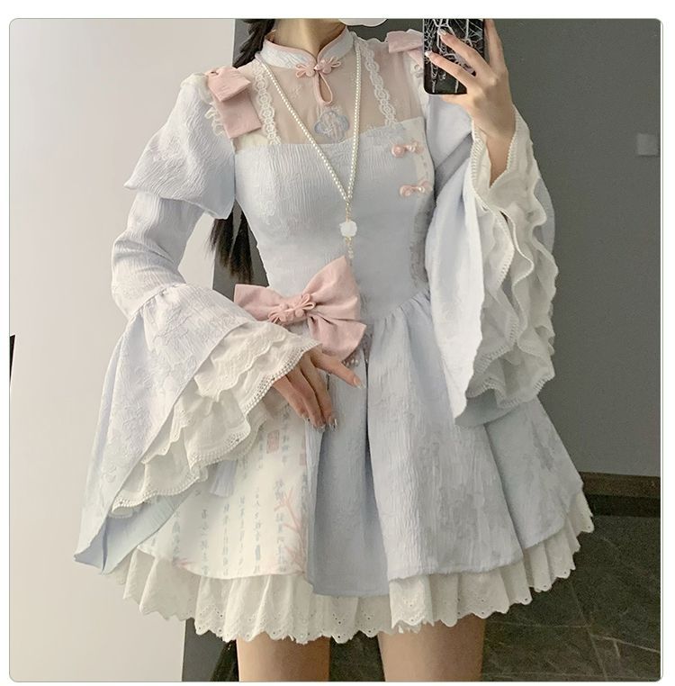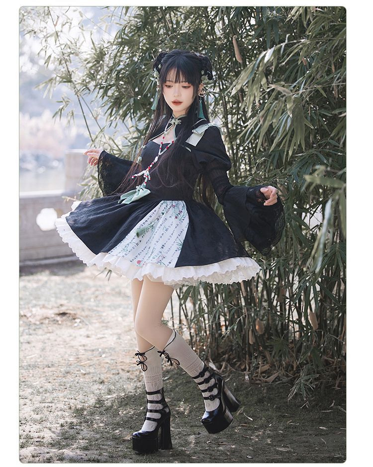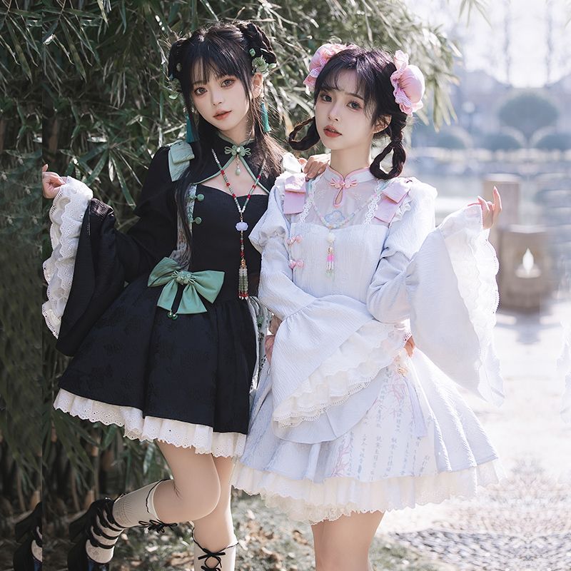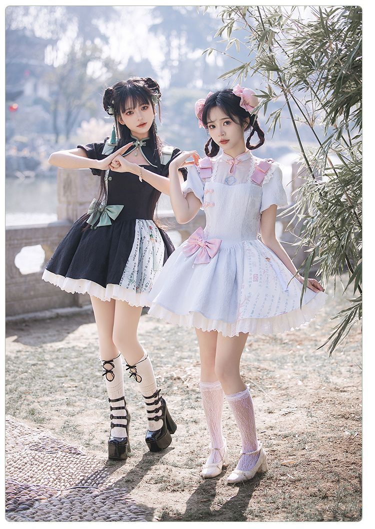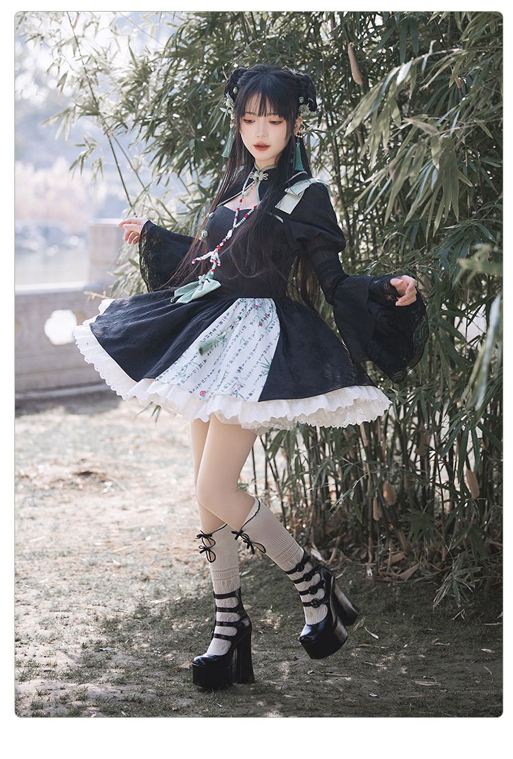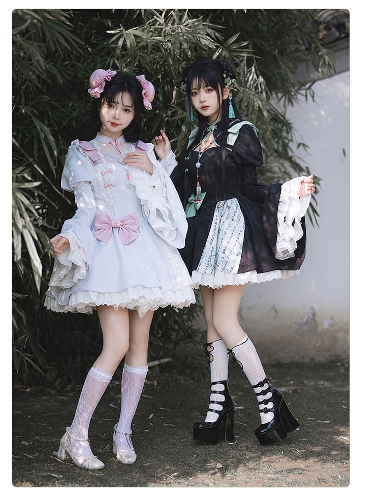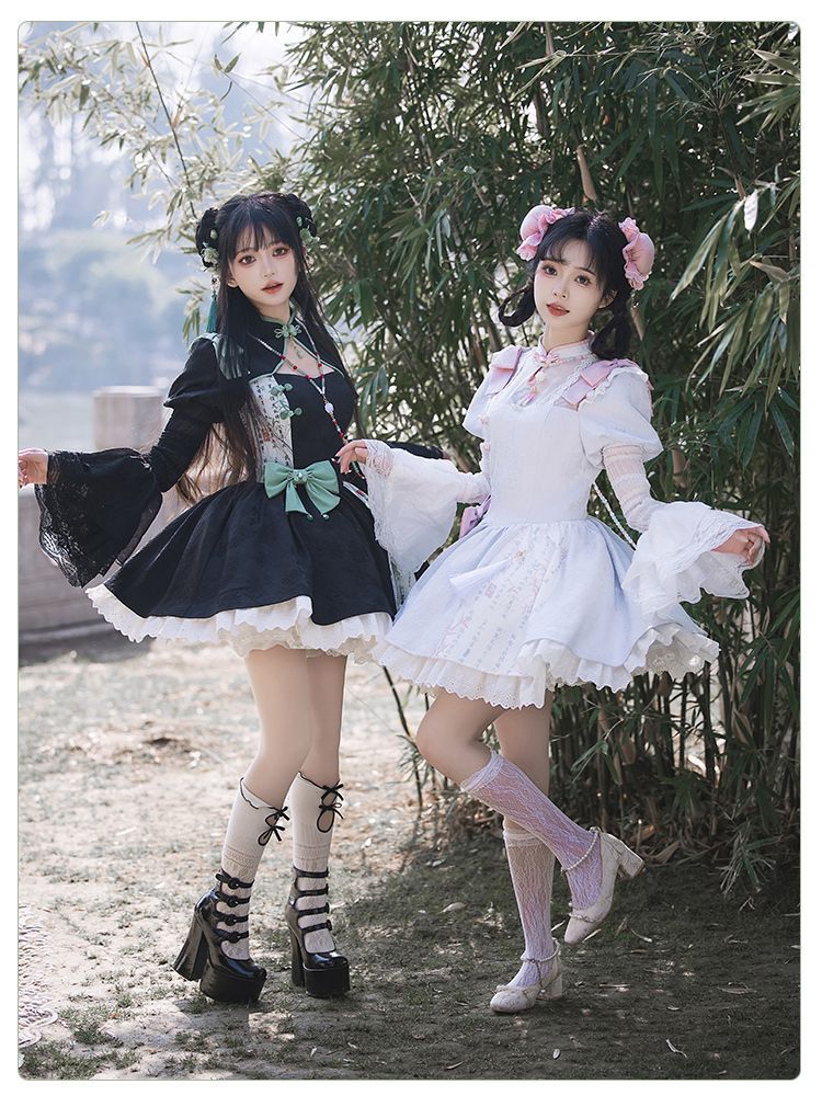 P withpuji original design Chinese style embroidered print sleeve cheongsam lolita summer