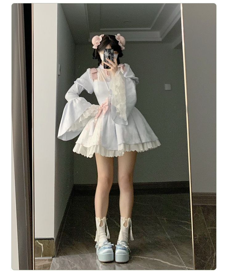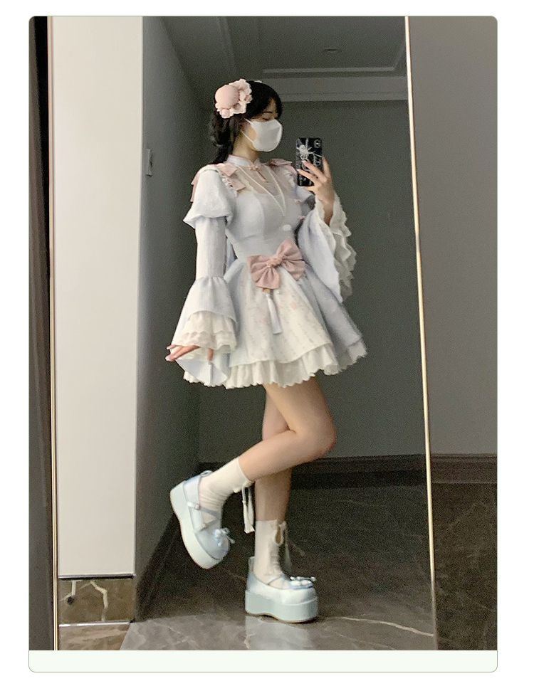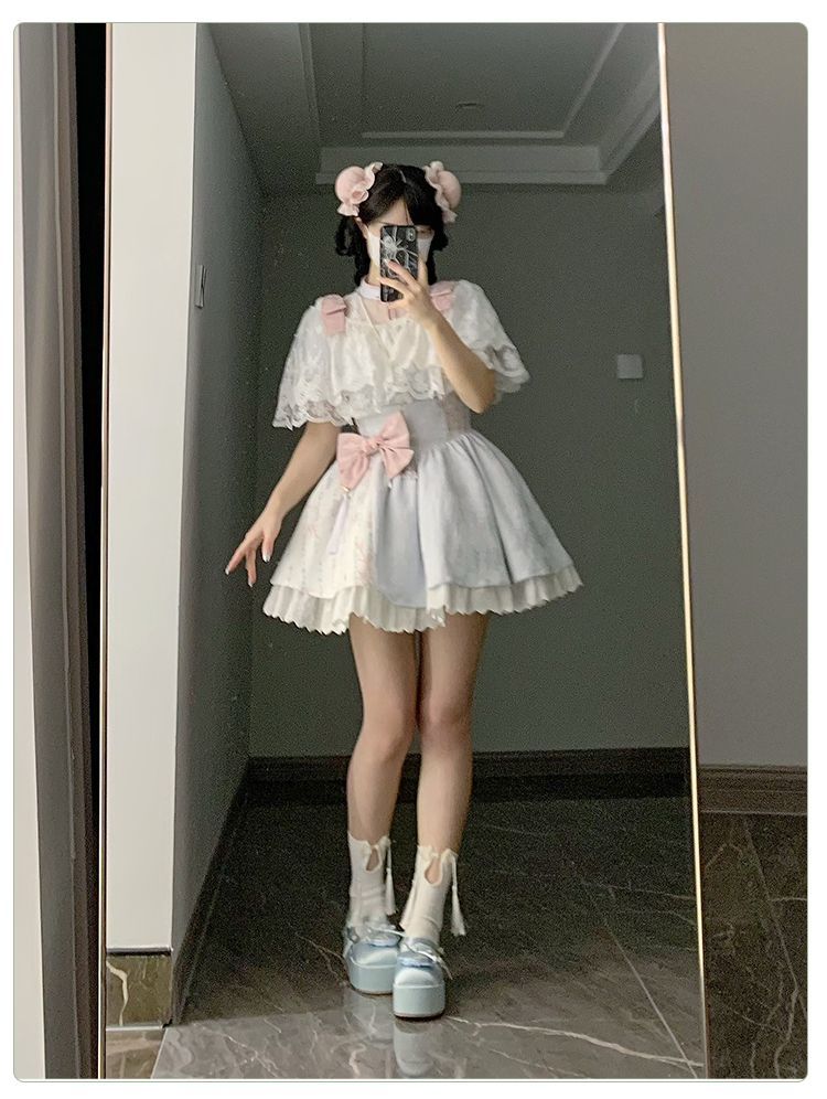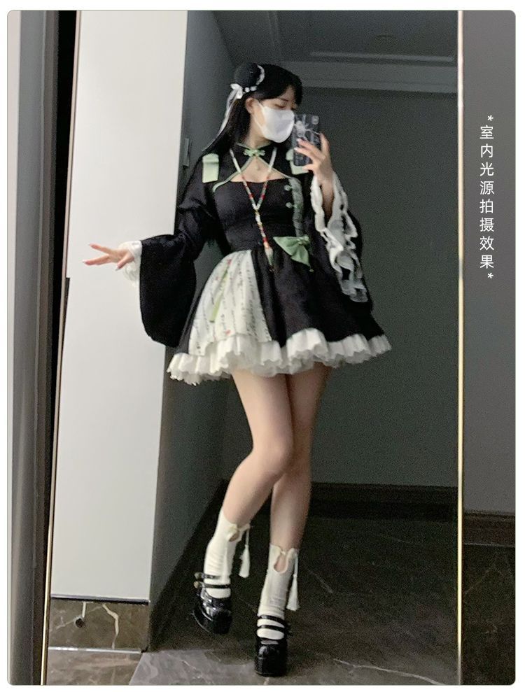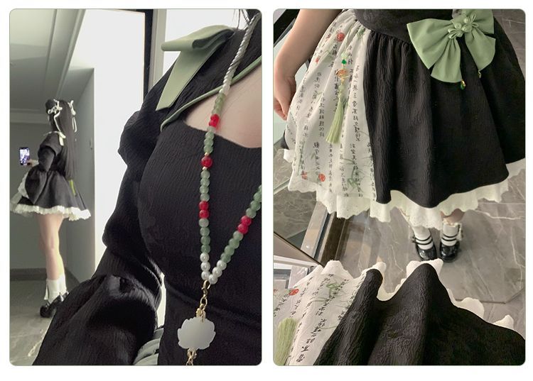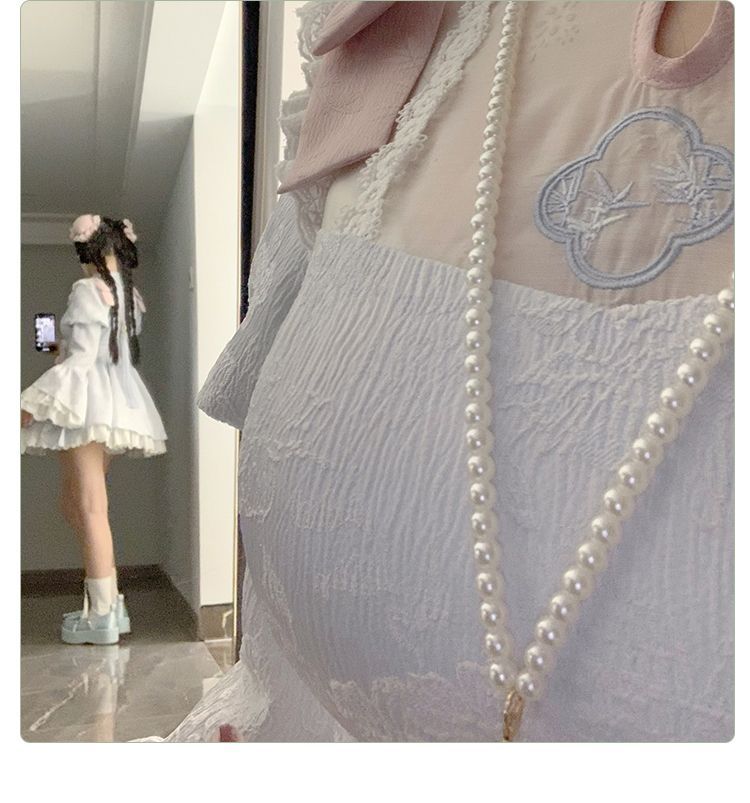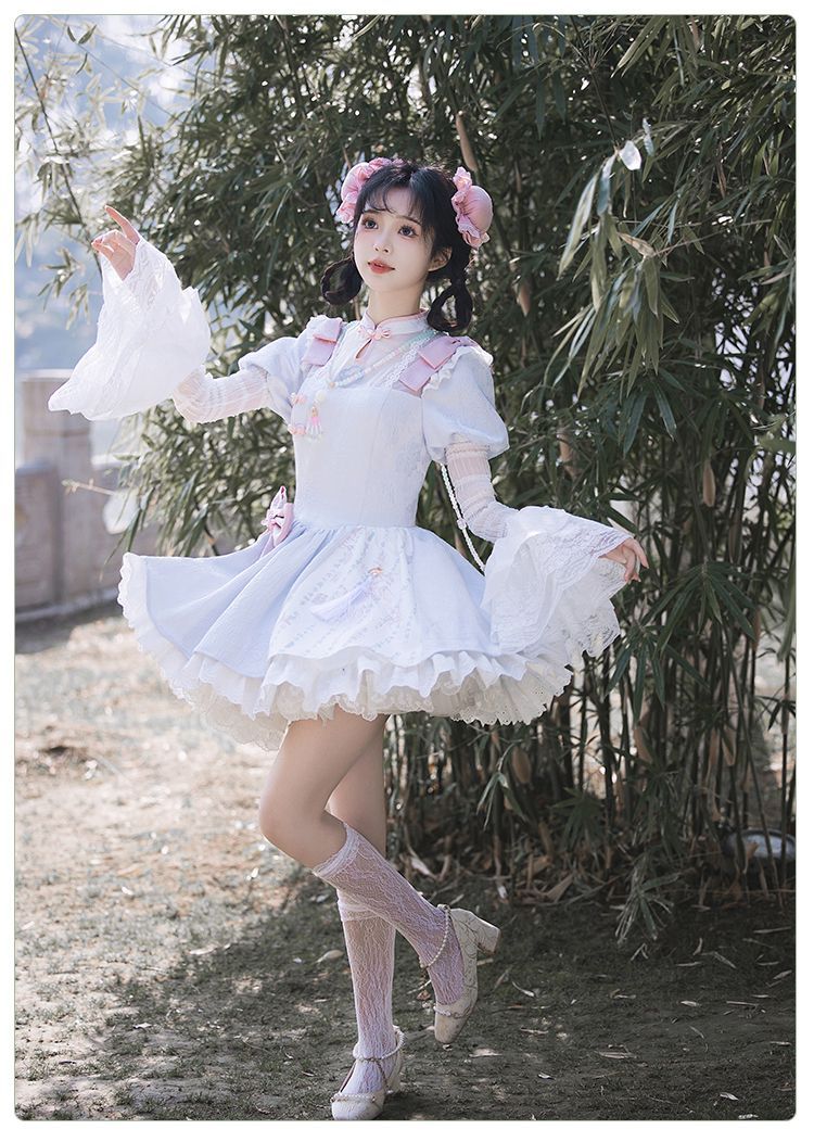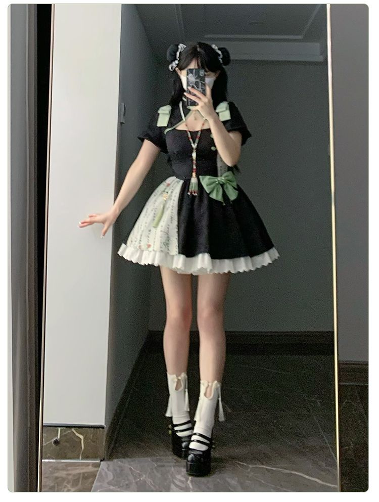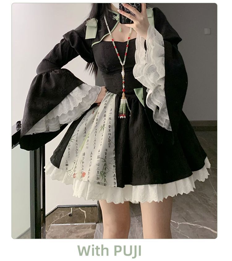 P withpuji original design Chinese style embroidered print sleeve cheongsam lolita summer