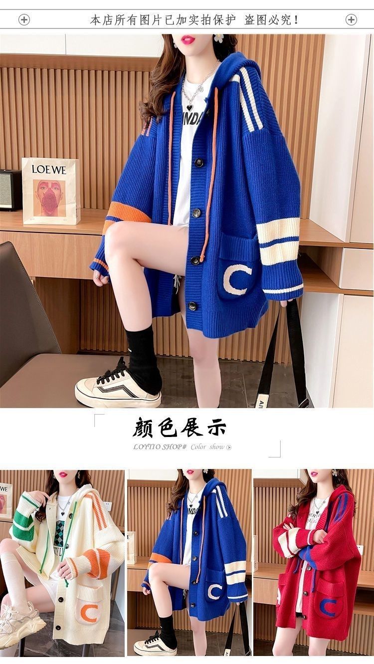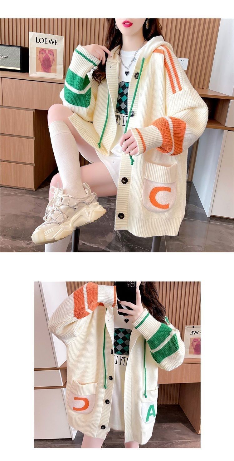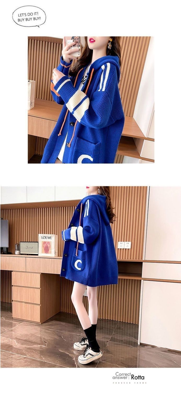 P Lazy Wind Hooded Sweater Cardigan Women's Medium and Long Korean Version