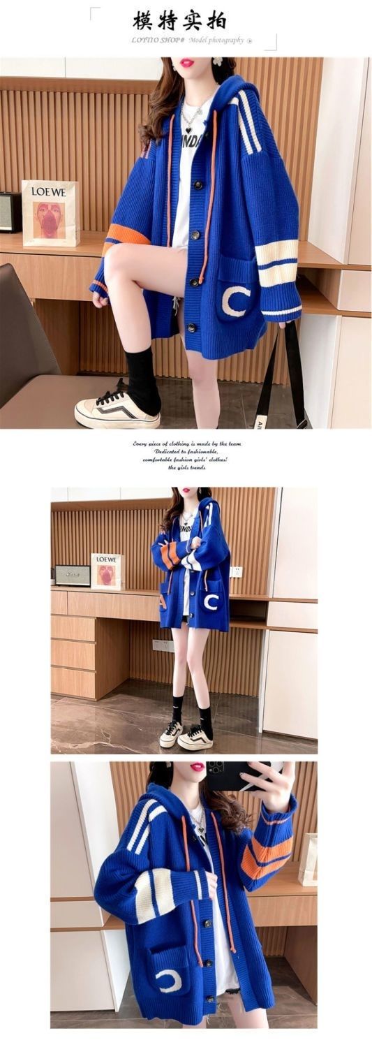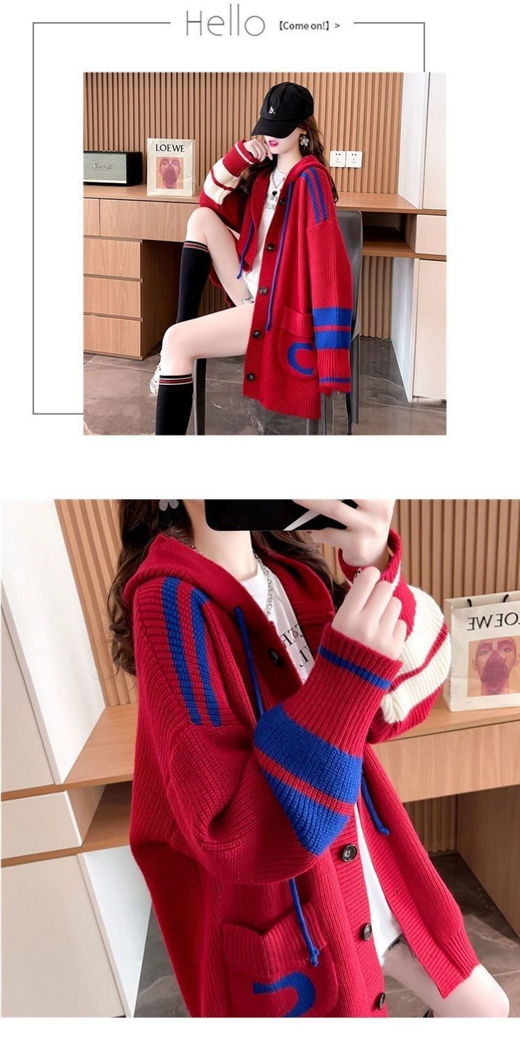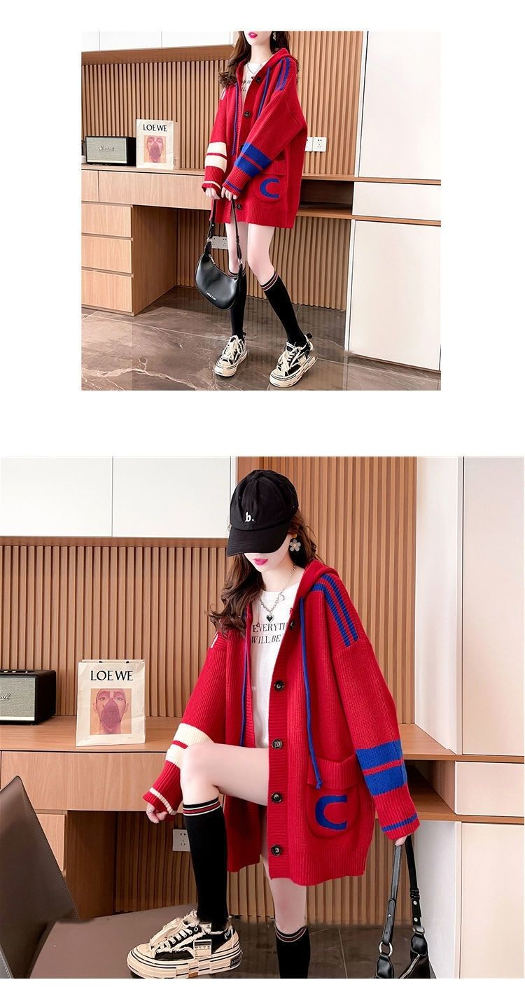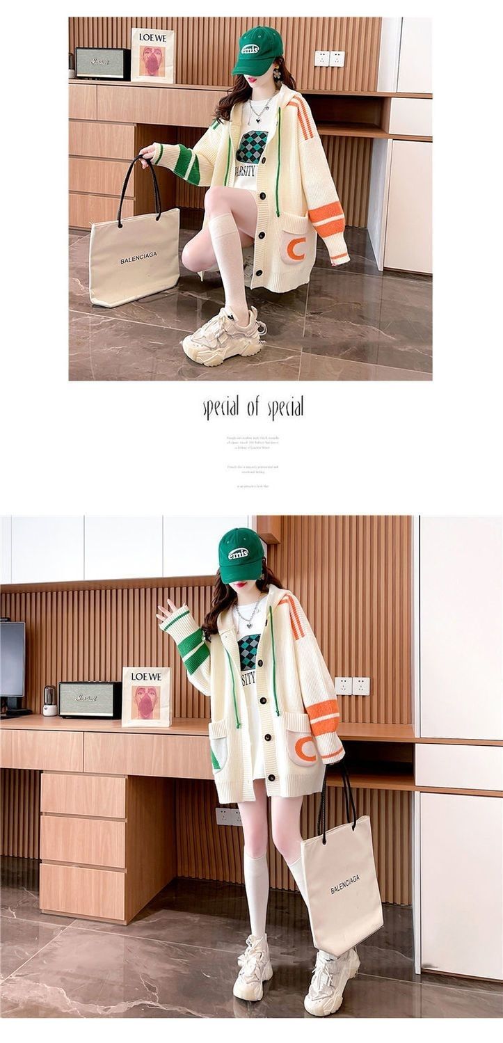 P Lazy Wind Hooded Sweater Cardigan Women's Medium and Long Korean Version