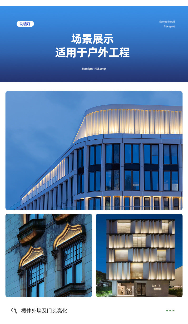 A led outdoor wall washer lighting project colorful wedding spotlights building exterior wall 24V contour light line light