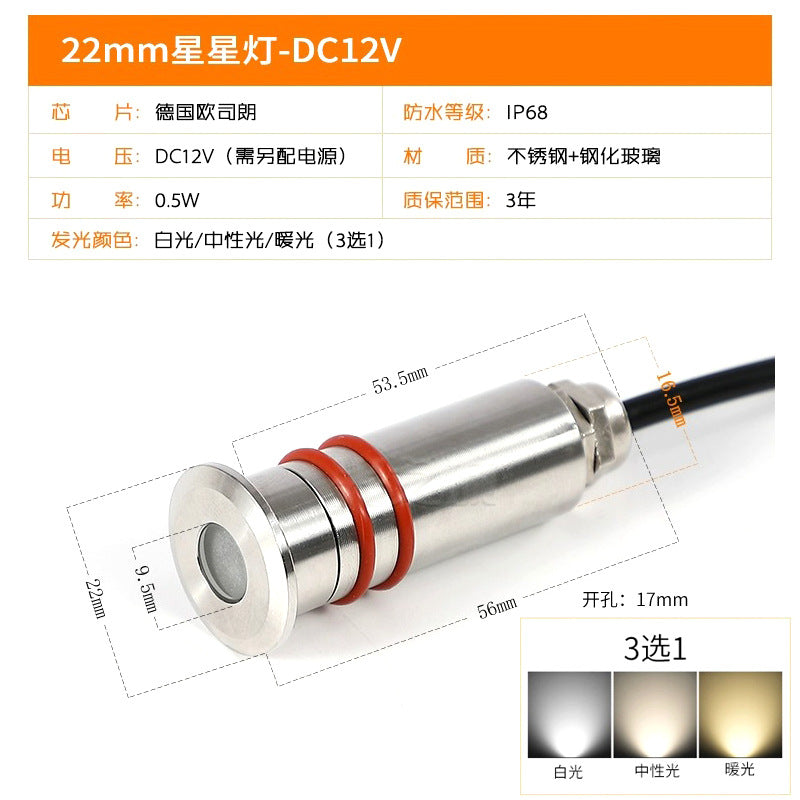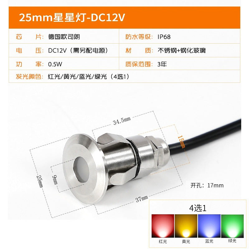LED small buried light embedded steps swimming pool lighting landscape mini star light 12V outdoor waterproof spotlight